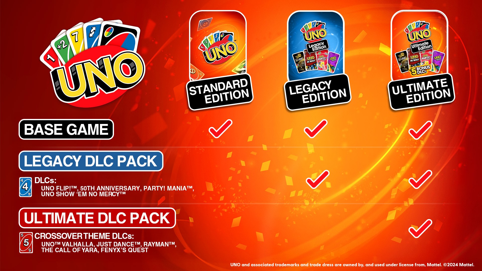 Erlebe das komplette UNO™-Erlebnis mit der Ultimate Edition, die das Basisspiel mit allen 9 spannenden DLCs vereint.