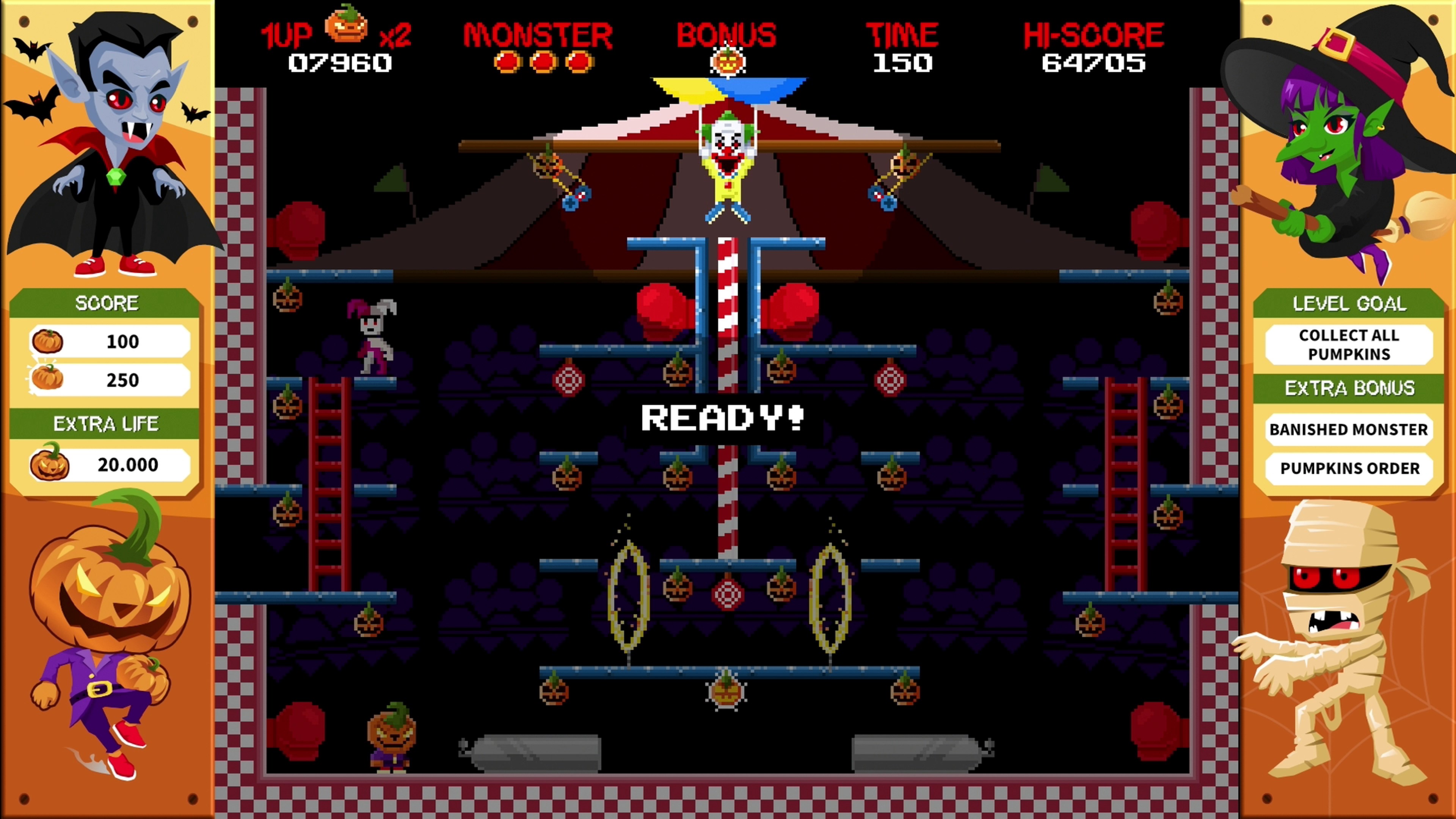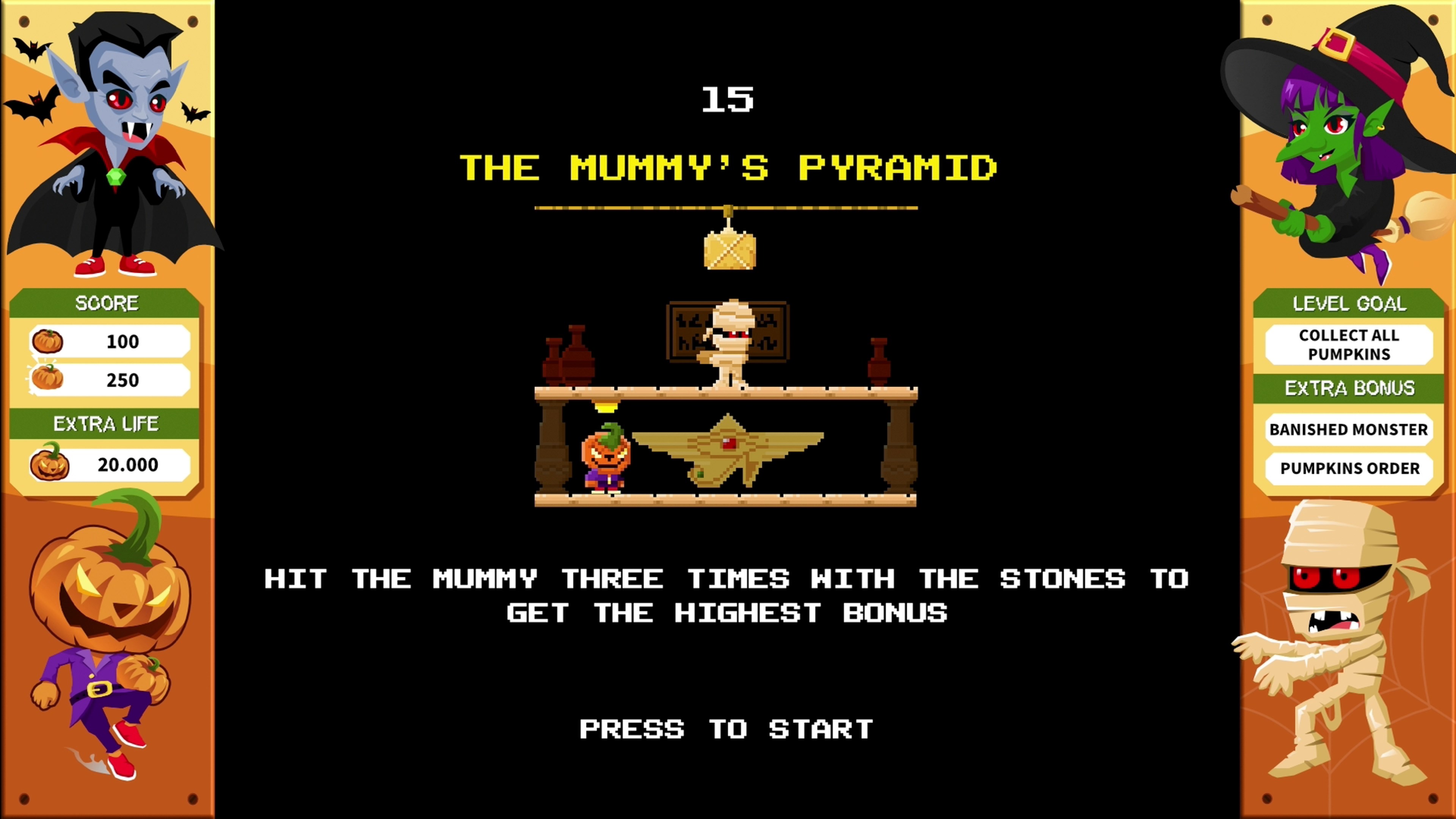 Als Monster in der Halloween-Nacht die Kürbisse von Pumpkman stehlen, musst du sie zurückholen! Rase durch fünf Level und überliste Feinde wie Dracula, die Mumie und die Hexe. Spring, weich aus und kämpf dich zu ihren Verstecken vor, um dann im finalen Showdown gegen den Endgegner anzutreten!