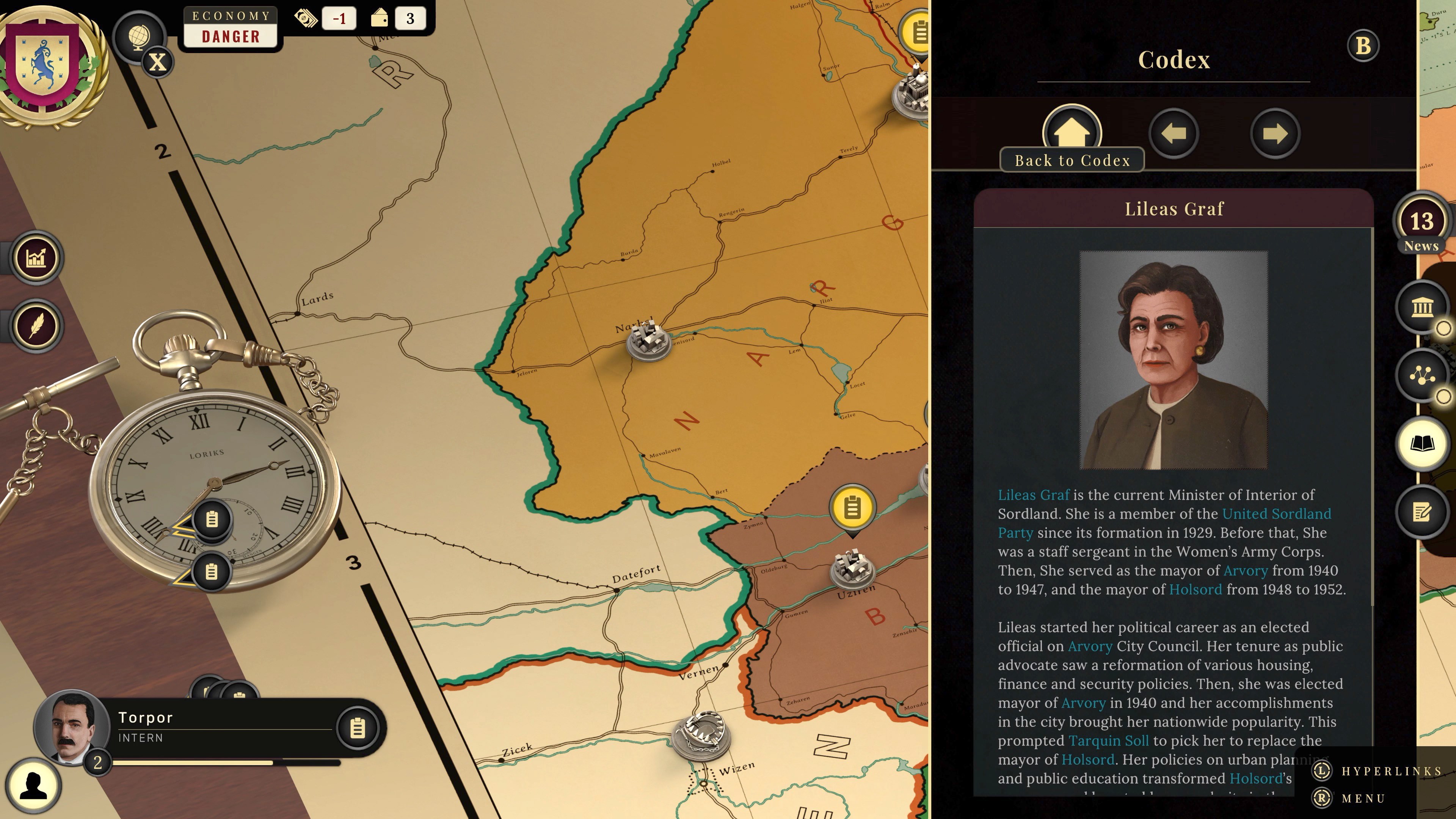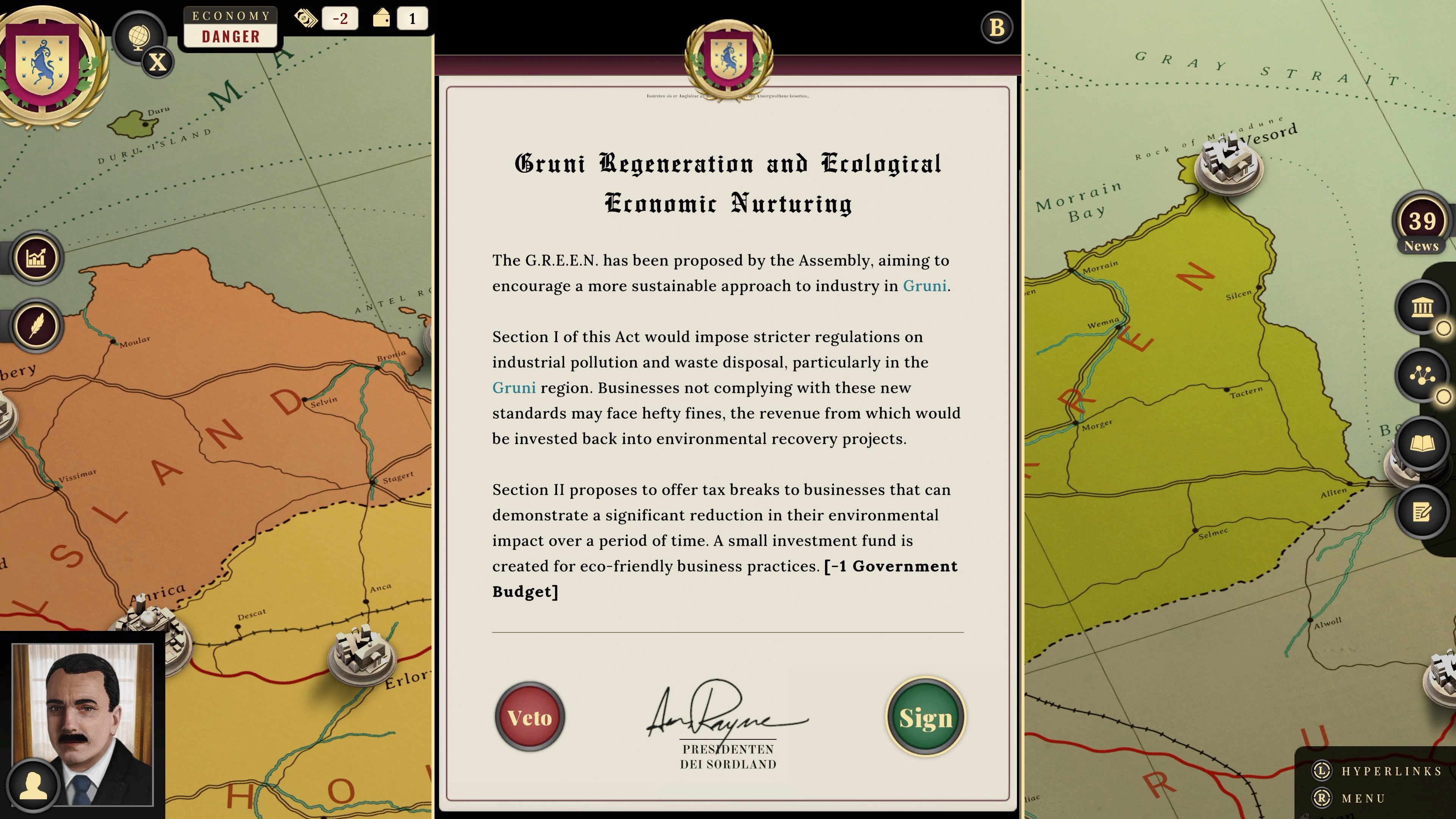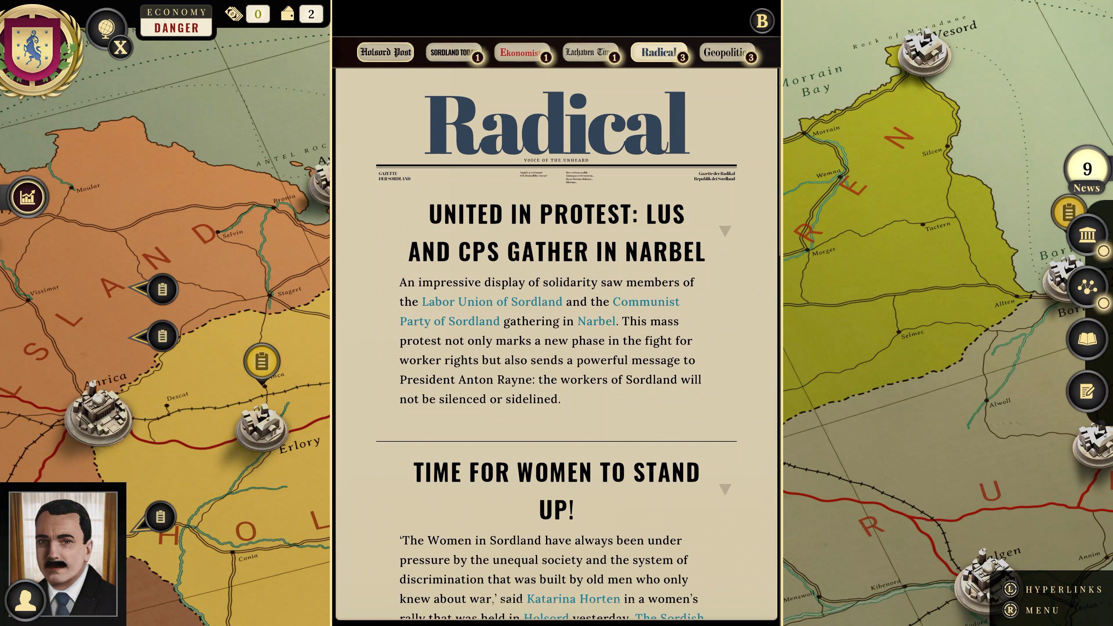 Begib dich als Präsident Anton Rayne auf eine spannende Reise und führe Sordland durch eine entscheidende Zeit. Stelle dich potenziellen Grenzkonflikten, tief verwurzelter Korruption und wirtschaftlichen Turbulenzen, während du dich in Antons erster Amtszeit durch die komplexen politischen Dynamiken manövrierst. Als Anführer werden deine Entscheidungen Sordlands Schicksal bestimmen. Wie wirst du führen?