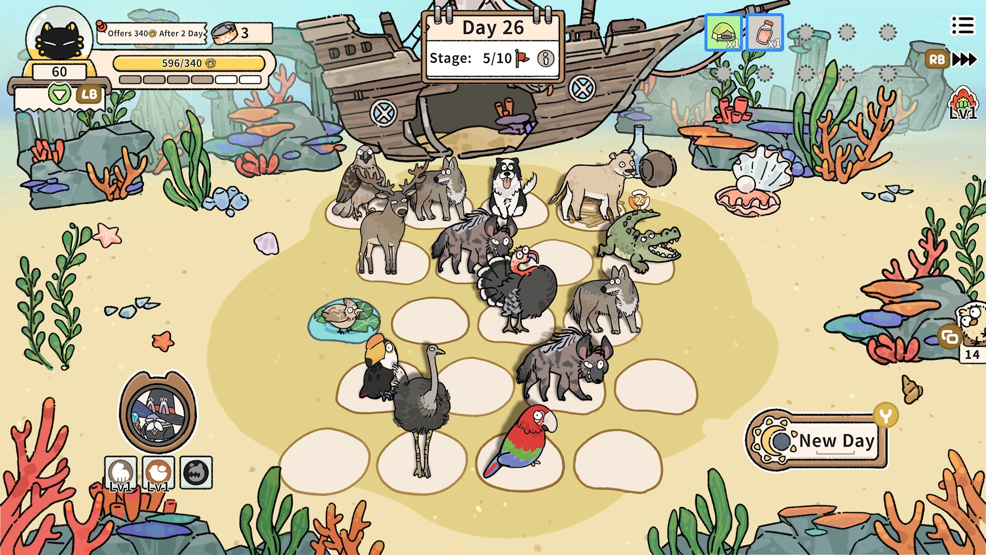 Ob Alpakas, Krokodile, Hyänen oder Lerchen – oder alles gemischt – du entscheidest, welchen Ranch-Stil du erschaffen willst. Füttere deine Raubtiere oder beobachte, wie eine Armee aus Pinguinen und Pandas dein Land bevölkert.