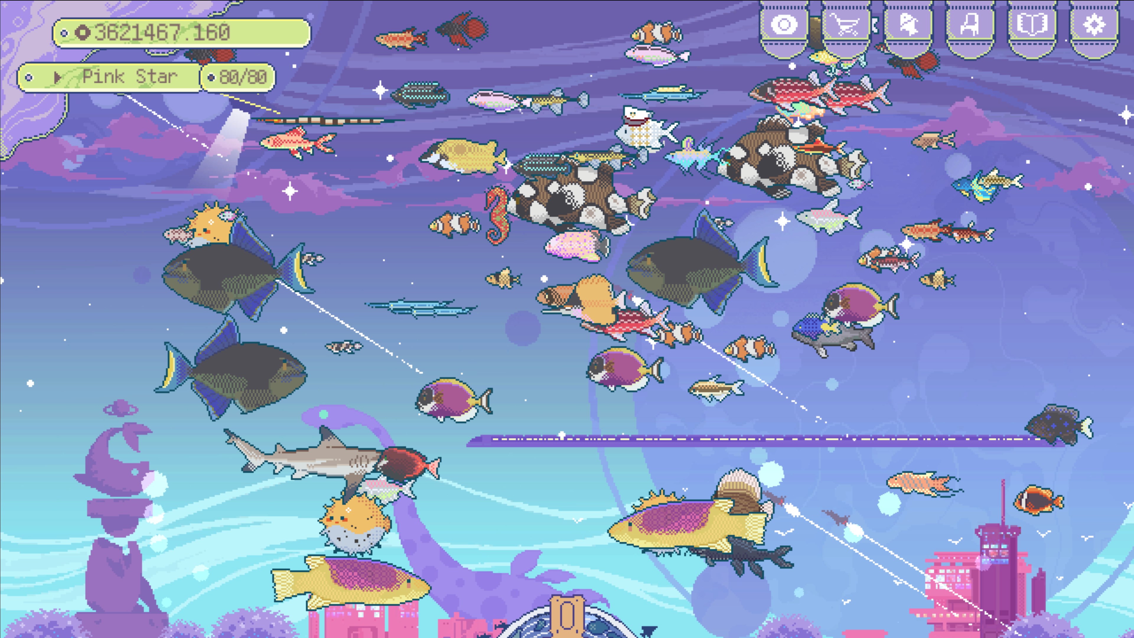 Ein entspannendes Leerlauf-Erlebnis. Deine Fische wachsen weiter, auch wenn du nicht da bist. Komm zurück und sieh, wie sich deine kleine Welt verändert hat – und lass dich angenehm überraschen.