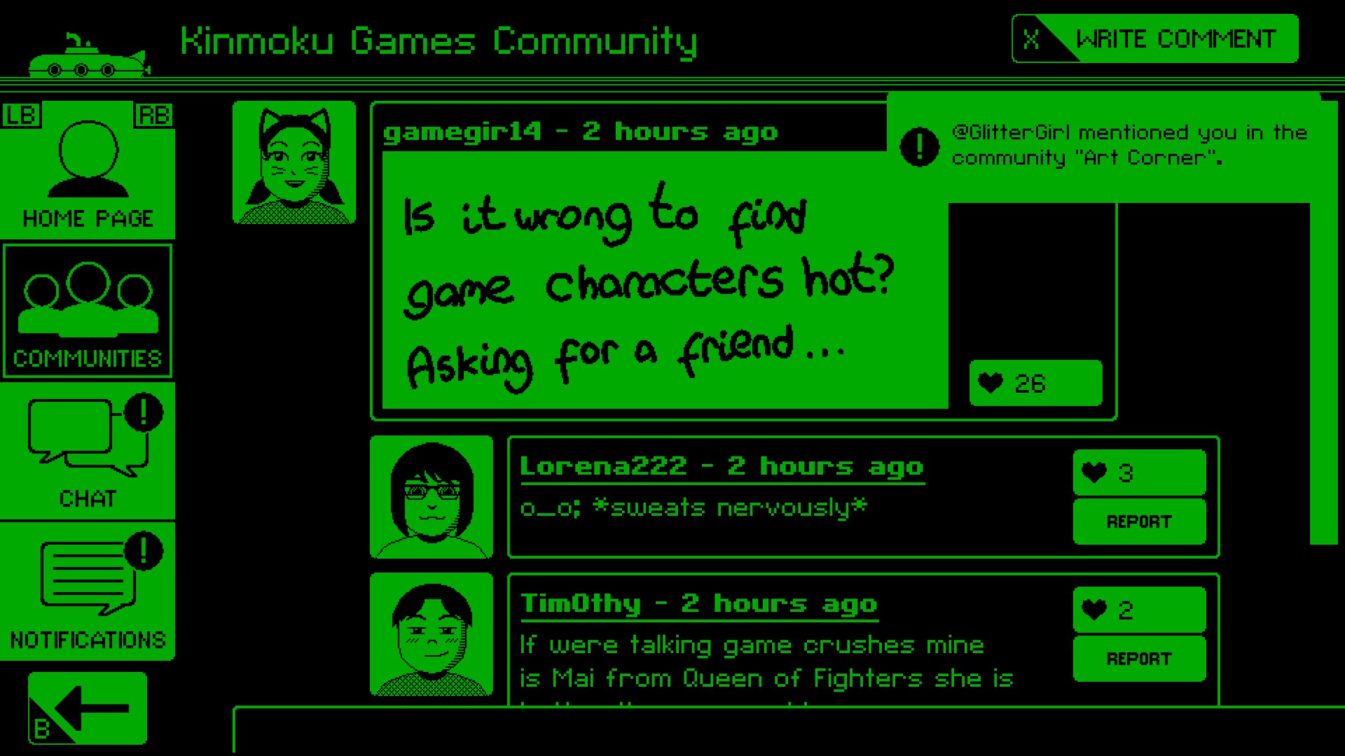 Erlebe die Tage vergangener sozialer Gaming-Netzwerke in VIDEOVERSE, einem entscheidungsbasierten narrativen Abenteuer mit Fokus auf Charakterentwicklung, Freundschaft und Liebe.