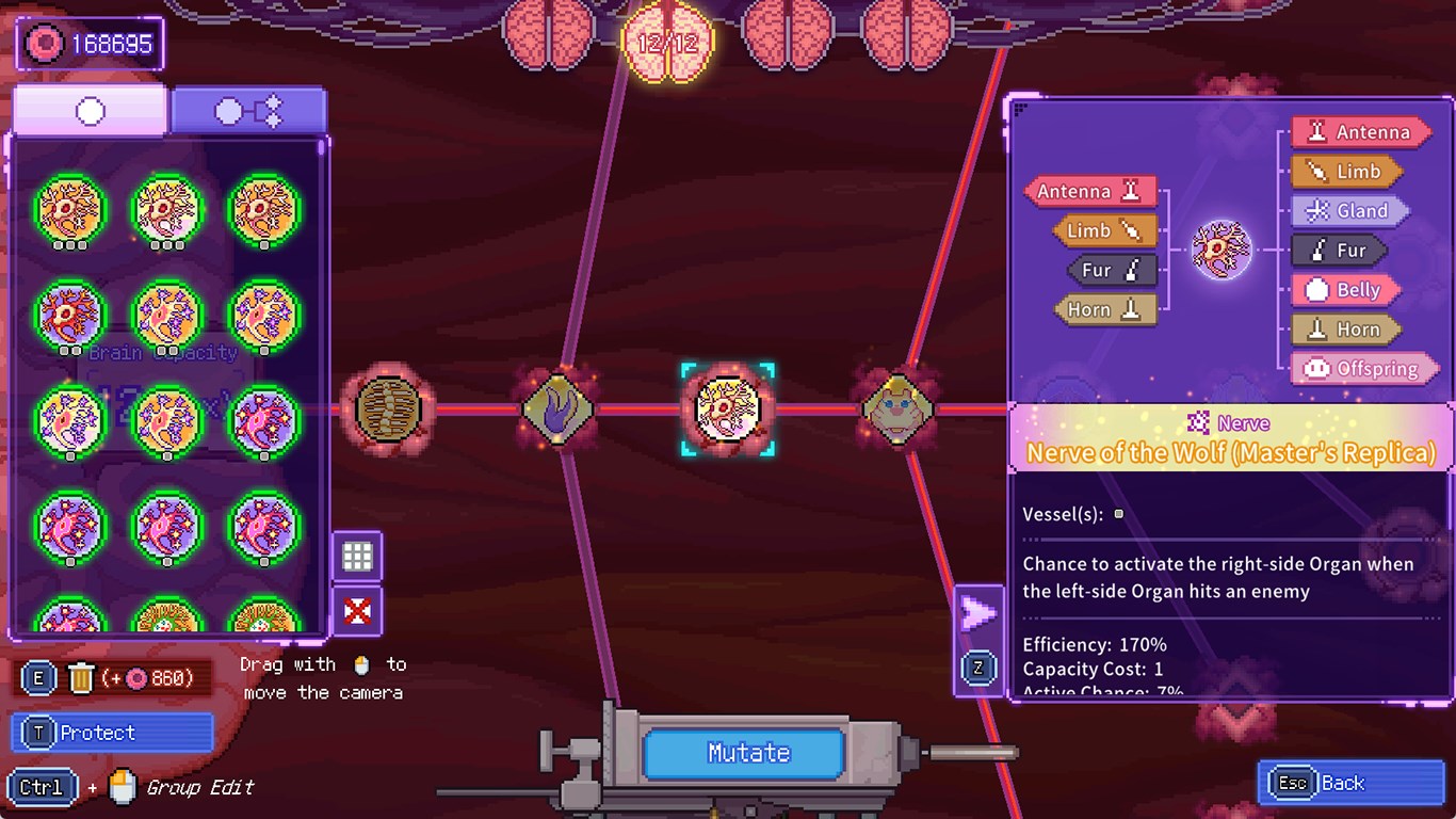 Das Spiel enthält Hunderte von Organen mit unterschiedlichen Funktionen. Jedes Organ kann auch mutiert werden, um zusätzliche Affixe zu erhalten, die weitere unvorhersehbare Veränderungen erzeugen können.