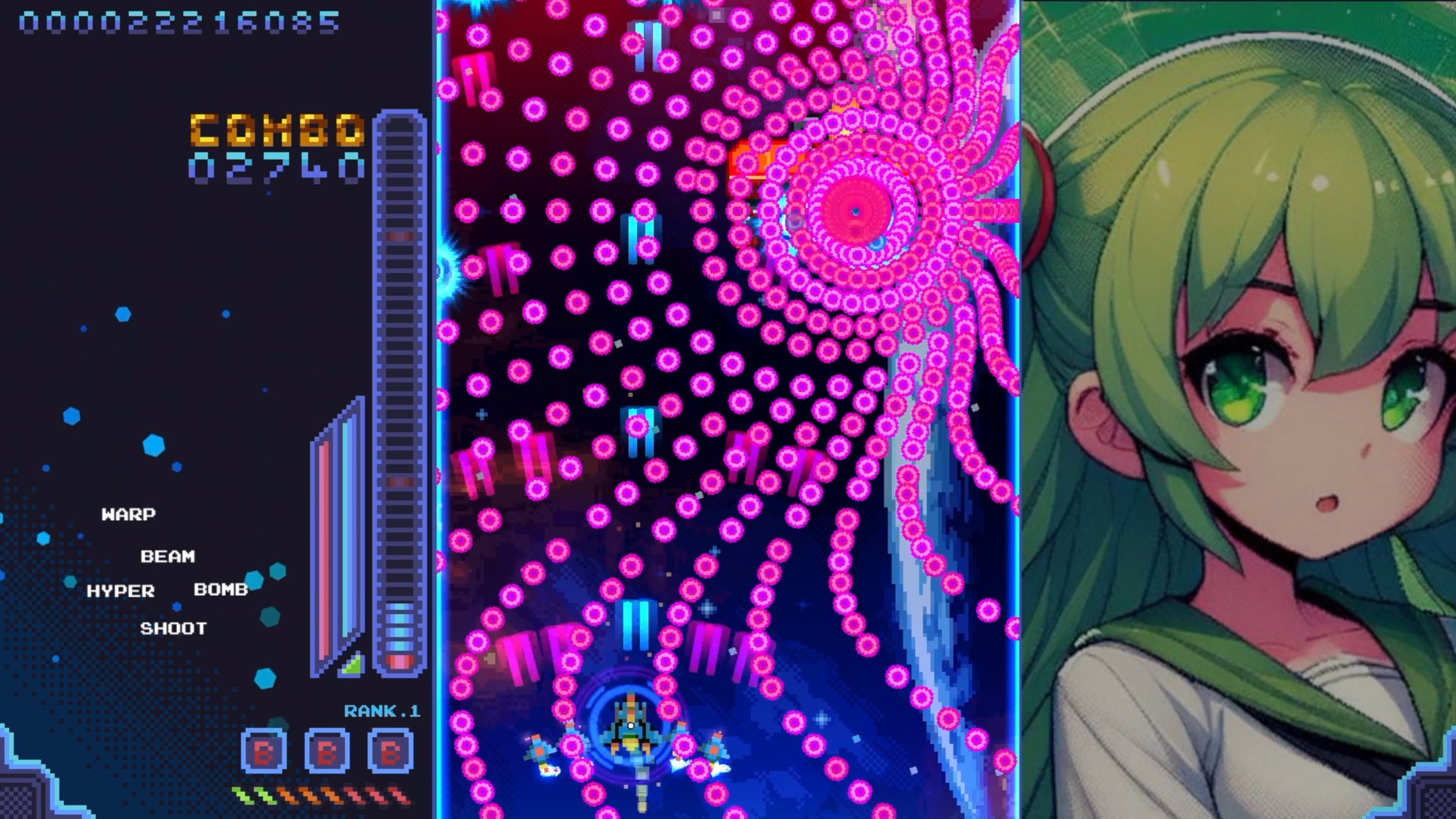 Sprenge ganze Schwärme von Feinden und lade deine Warp-Antriebe im Retro-Shoot-’em-up-Stil auf!