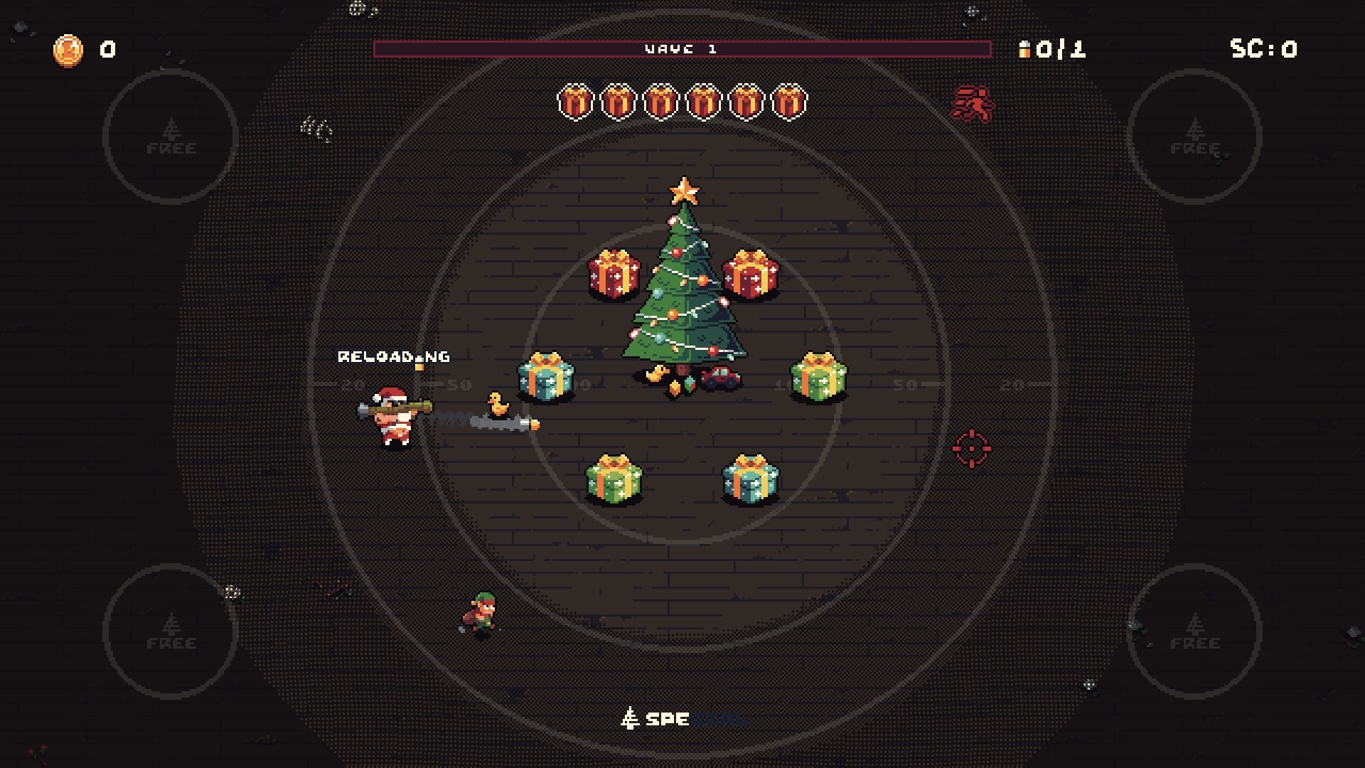 * Schalte neue Waffen und Spezialfähigkeiten im Laden des Weihnachtsmanns frei
