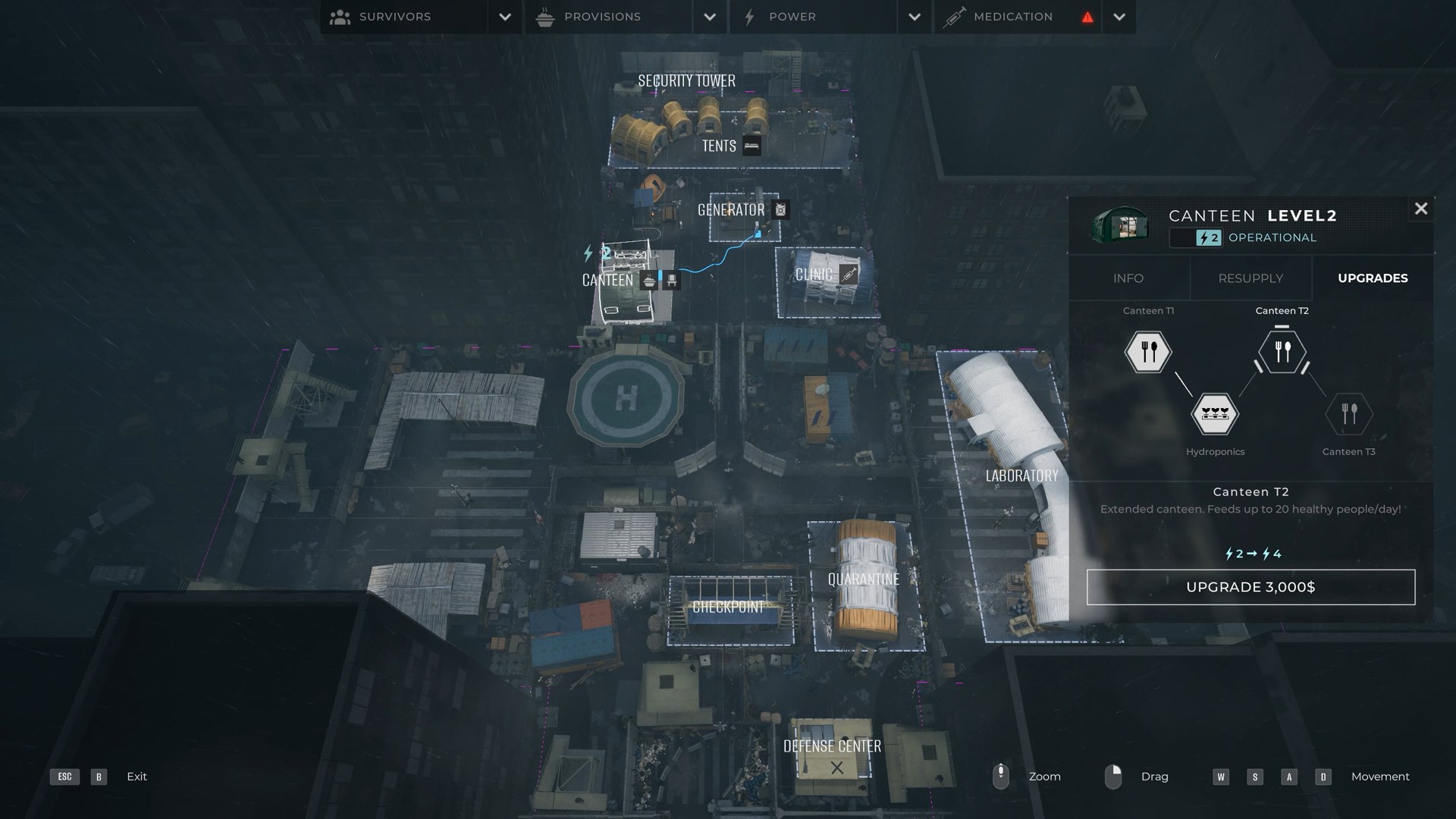 Angesichts der immer größer werdenden Anzahl Überlebender ist es an dir, ihnen eine Grundversorgung zur Verfügung zu stellen: Energie, Nahrung und Medikamente. Wenn der Alarm ertönt, steuerst du bewaffnete Drohnen, um zu verhindern, dass die Infizierten in den Komplex vordringen. Je besser du deine stetig wachsende Basis verwaltest, desto mehr Ressourcen, Hilfsmittel und Waffenverbesserungen schaltest du frei.