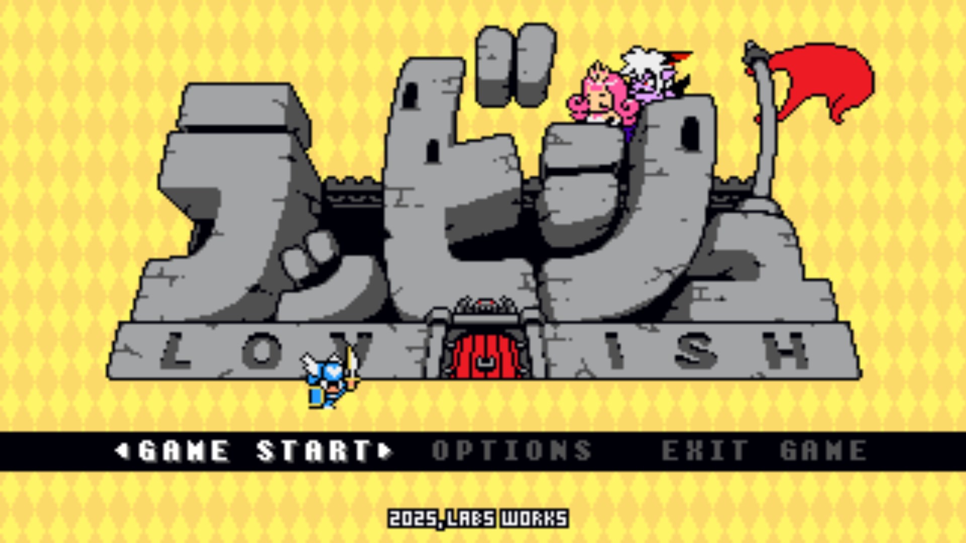 LABS und Matt Kap präsentieren Lovish, ein Action-Adventure im 8-Bit-Stil, das deine Erwartungen auf den Kopf stellen wird! Wage dich von Raum zu Raum, metzle Monster nieder, sammle Gegenstände ein und finde den Ausgang! Nach jedem Raum erwartet dich eine kurze Zwischensequenz, in der alles passieren kann! Wirst du eine Belohnung finden? In einen zufälligen RPG-Kampf verwickelt werden? Oder wird einfach die ganze Welt zerstört? Stürze dich ins Abenteuer und erobere nach und nach das gesamte Schloss des Teufelsfürsten!