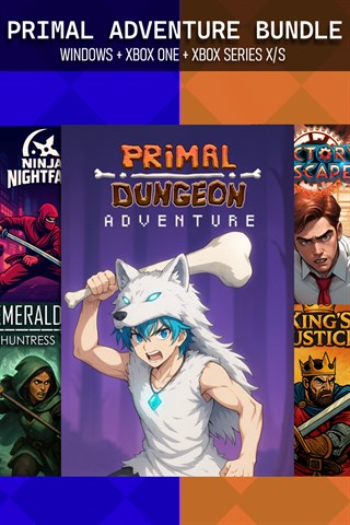 This bundle contains: Primal Dungeon - Play Anywhere, Ninja Nightfall - Play Anywhere, Emerald Huntress, Factory Escape and King's Justice for Xbox Series, Xbox One and (Windows) for the PC platform.