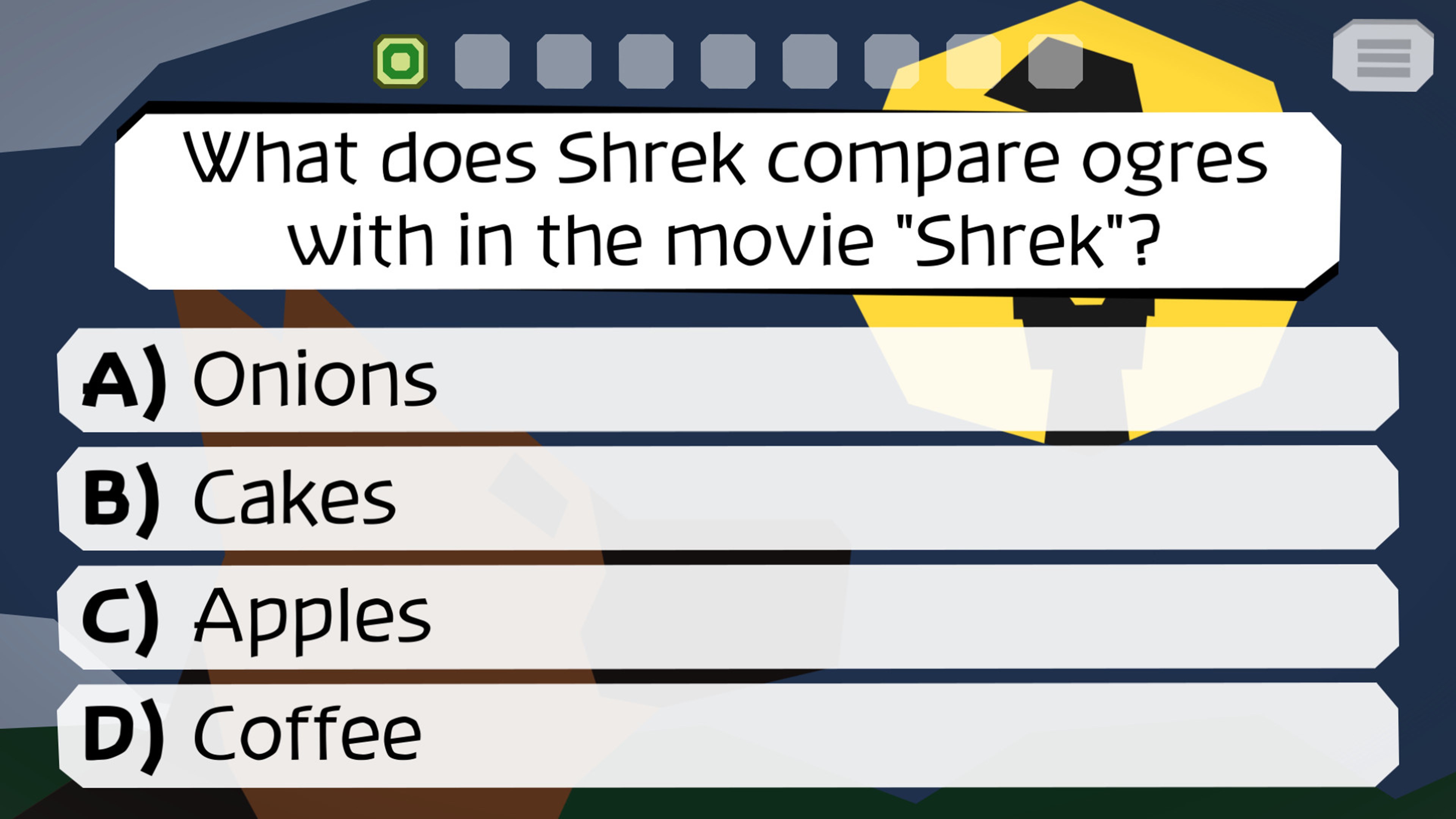 - 4 Kategorien (Videospiele, Film, Animation, Verschiedenes) mit einstellbarer Fragewahrscheinlichkeit