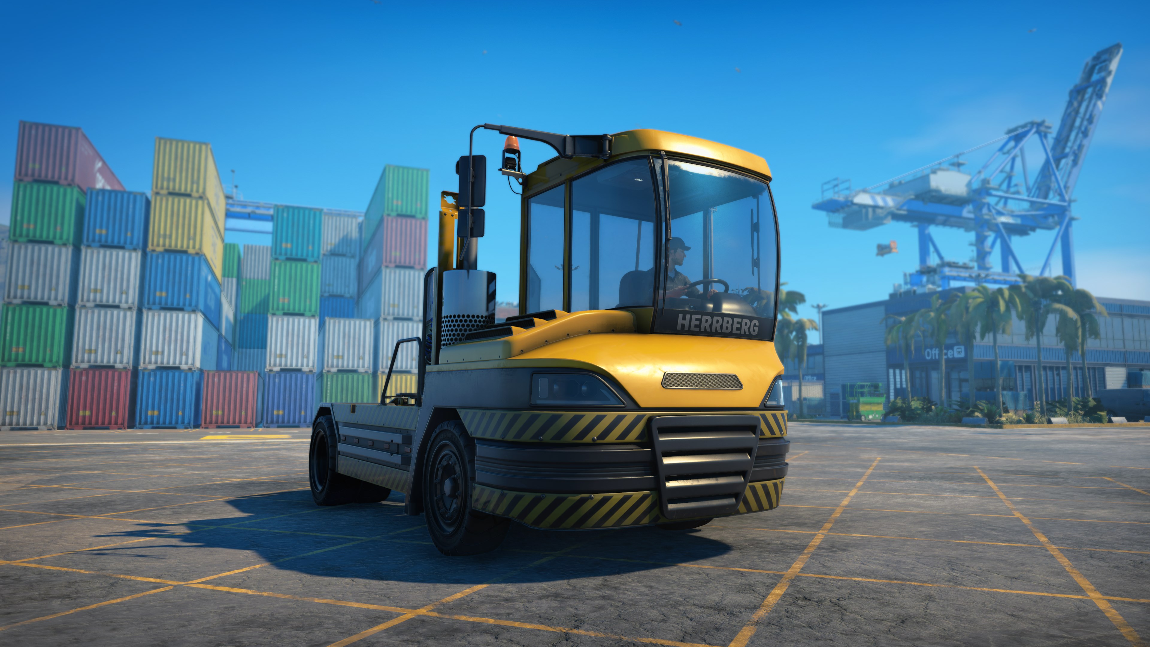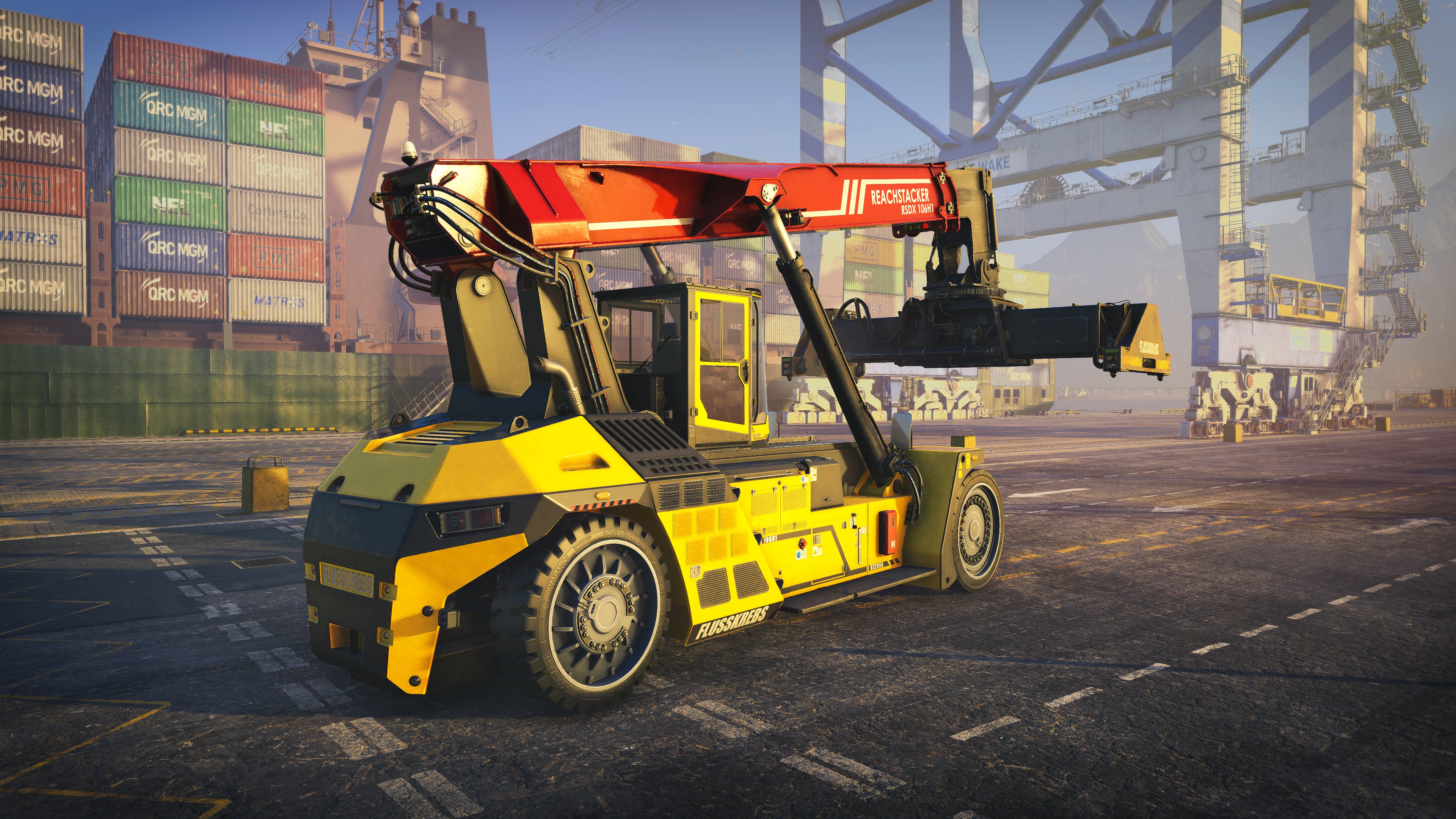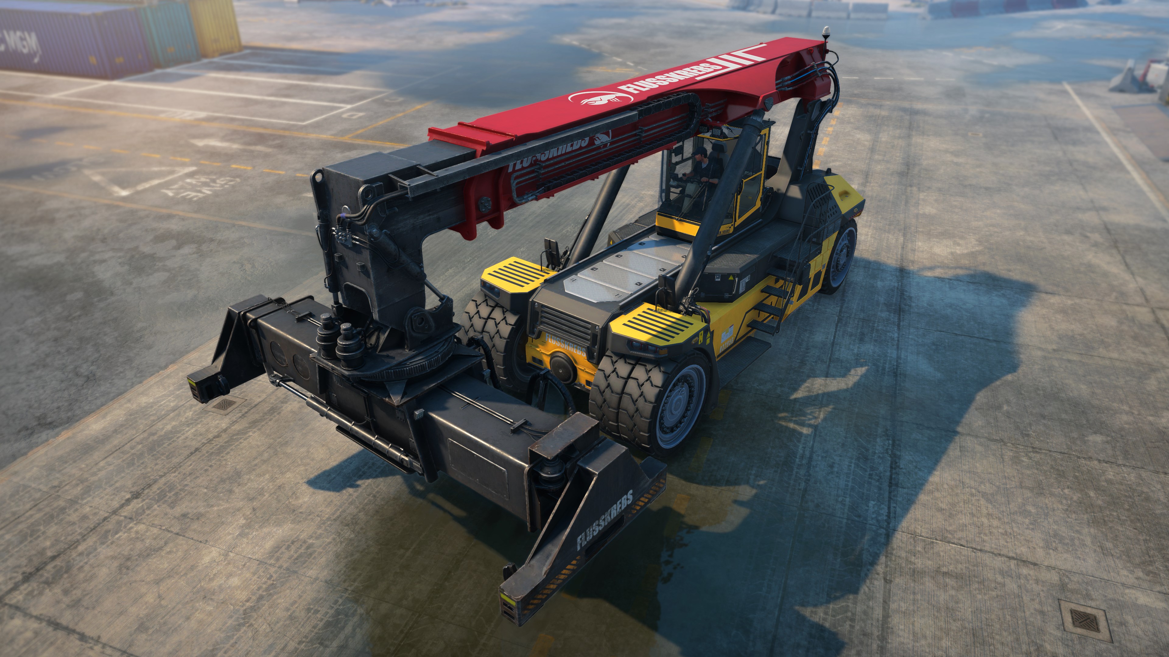 Bestelle die Docked Deluxe Edition vor, um das Premium-Reach-Stacker-Fahrzeug freizuschalten – ein elegantes, modernes Upgrade, zu dem du jederzeit wechseln kannst. Genieße ein markantes dreifarbiges Karosseriedesign, einen leistungsgesteigerten Motor, eine schnellere Beschleunigung und Bremsung sowie einen um 15 % schnelleren Ausleger.