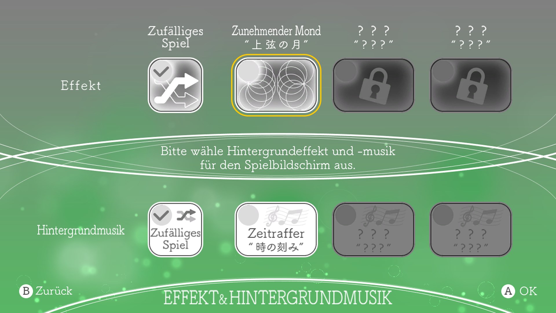 Es gibt 3 Hintergrundeffekte und 3 Hintergrundmusiken.