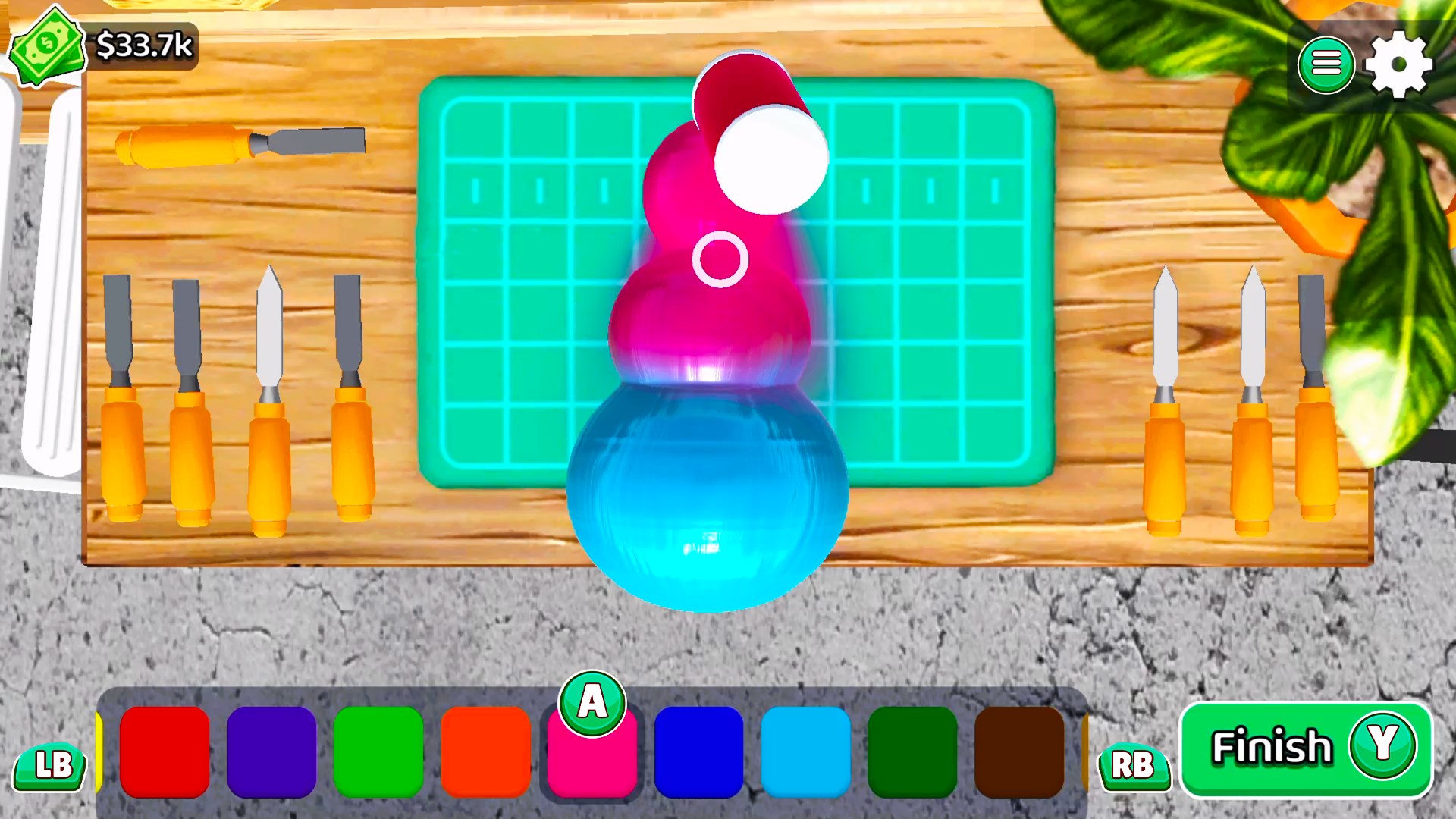 Greife zum Meißel, schnitze eine Form, färbe sie mit Sprays und verkaufe dein Meisterwerk an Kunden!