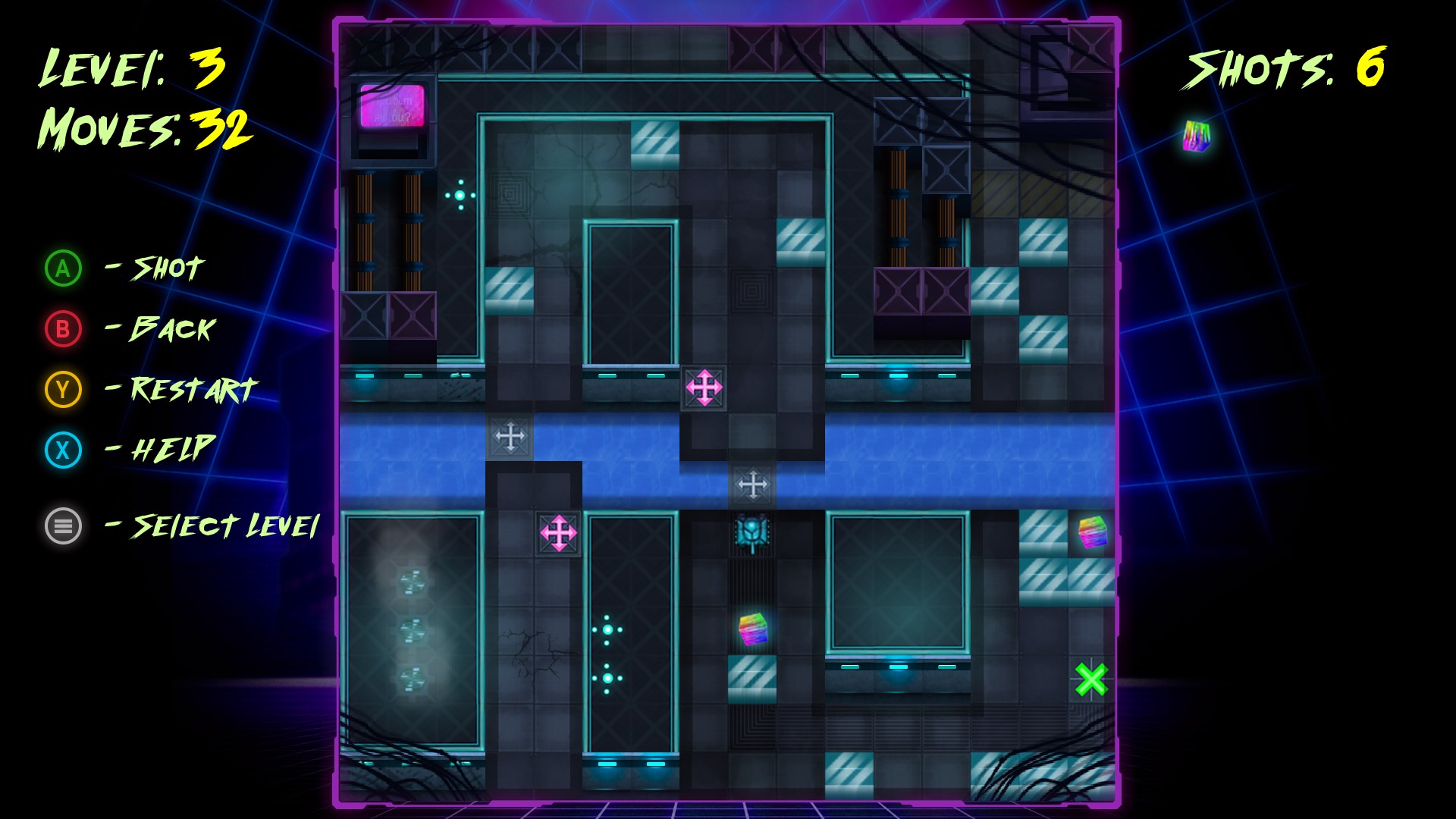 Sammle alle 108 holografischen Würfel in 36 atemberaubenden Levels und erreiche den Ausgang!