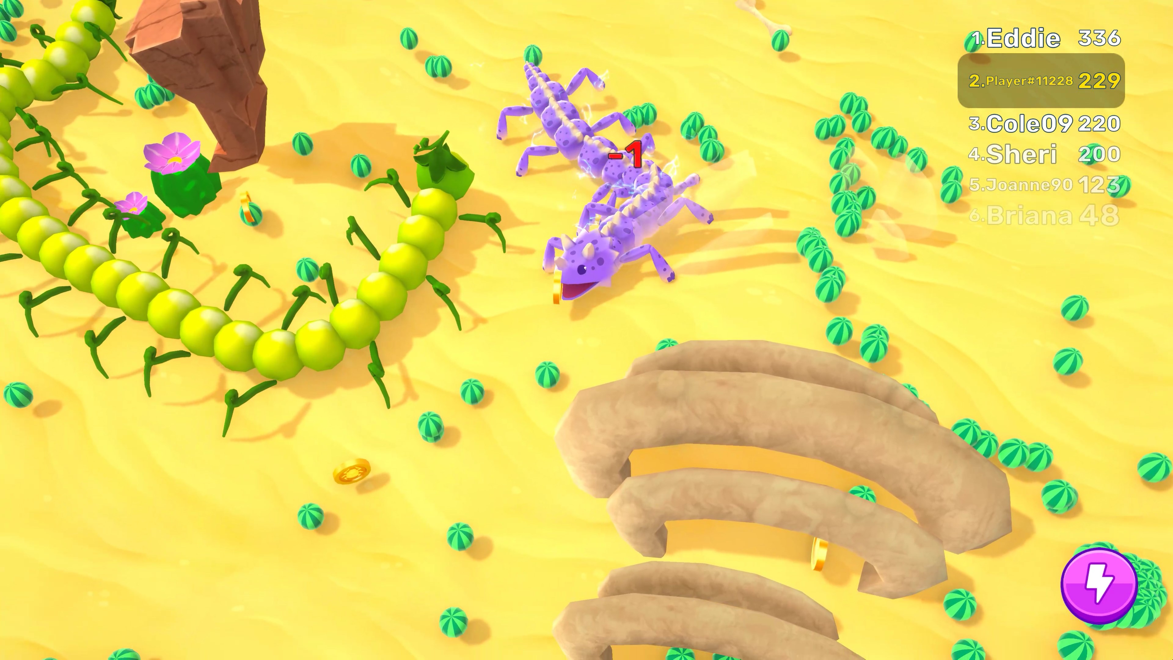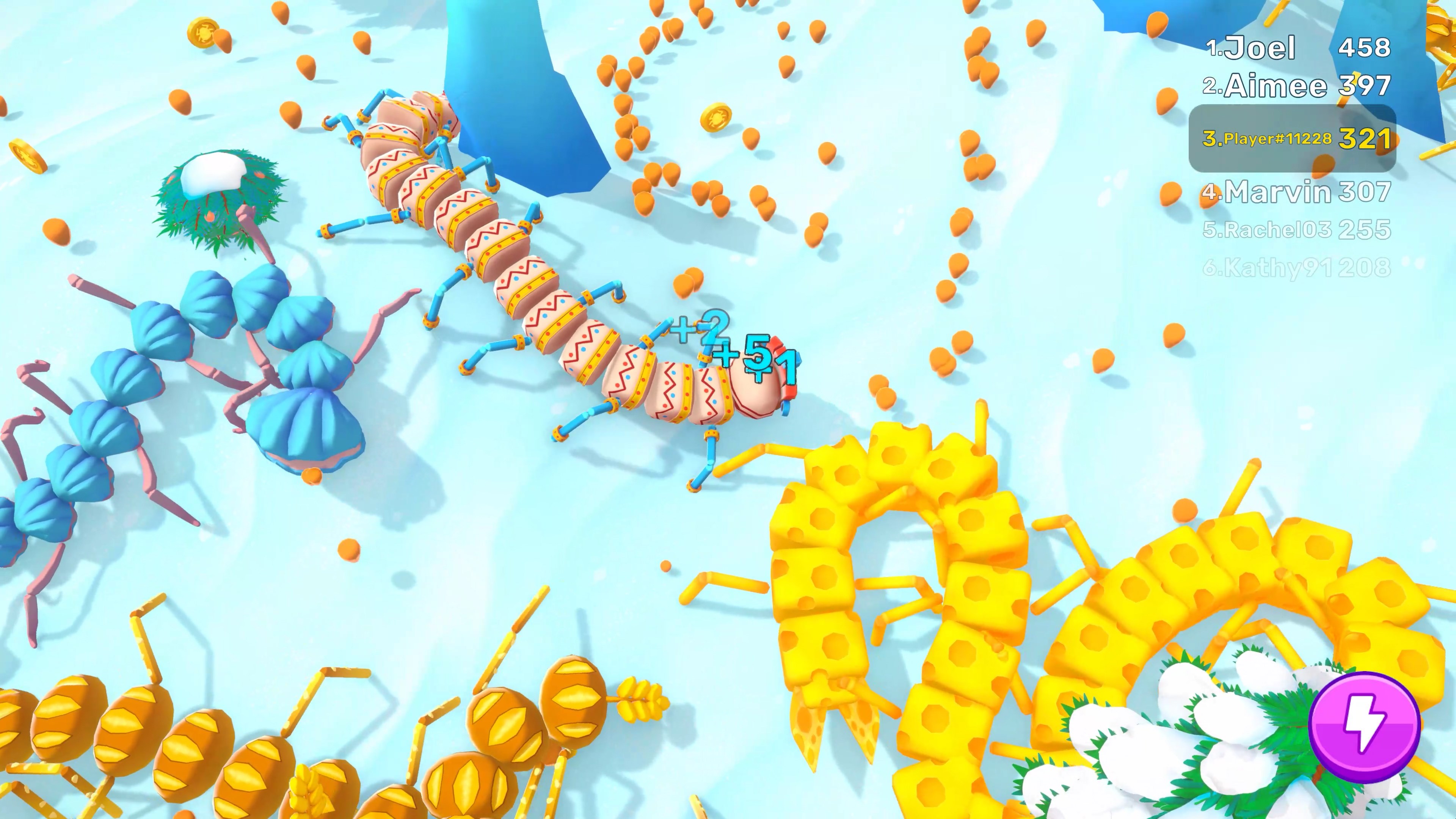 Mach dich bereit für ein spannendes Abenteuer in der Arena, wo riesige Tausendfüßler in aufregenden Kämpfen gegeneinander antreten. Du kannst deinen Tausendfüßler stärker und schneller machen, um deine Gegner zu überlisten und zu besiegen. Kämpfe gegen große und kleine Feinde. Lass deinen Tausendfüßler wachsen, wähle verschiedene Felle und dominiere die Arenen.