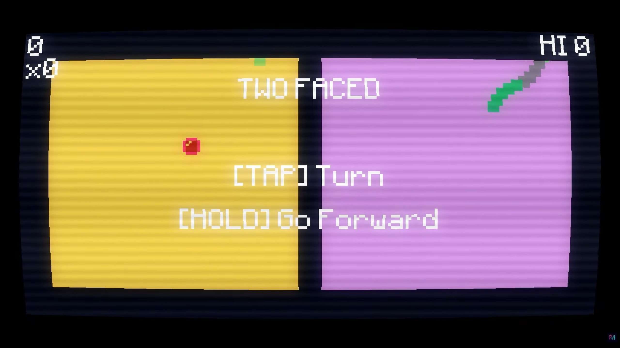 TWO FACED ist ein rasantes Ein-Knopf-Spiel.
