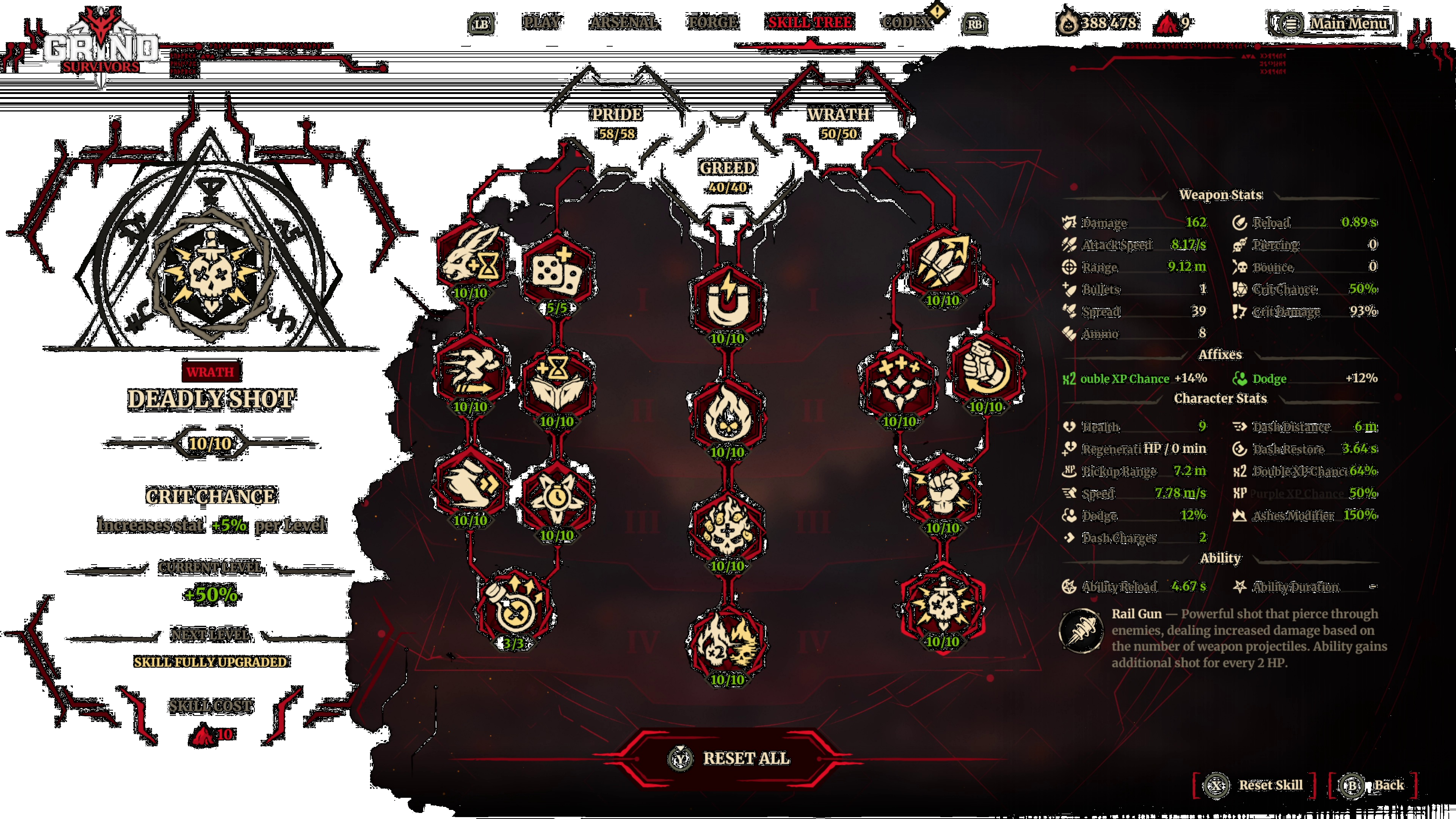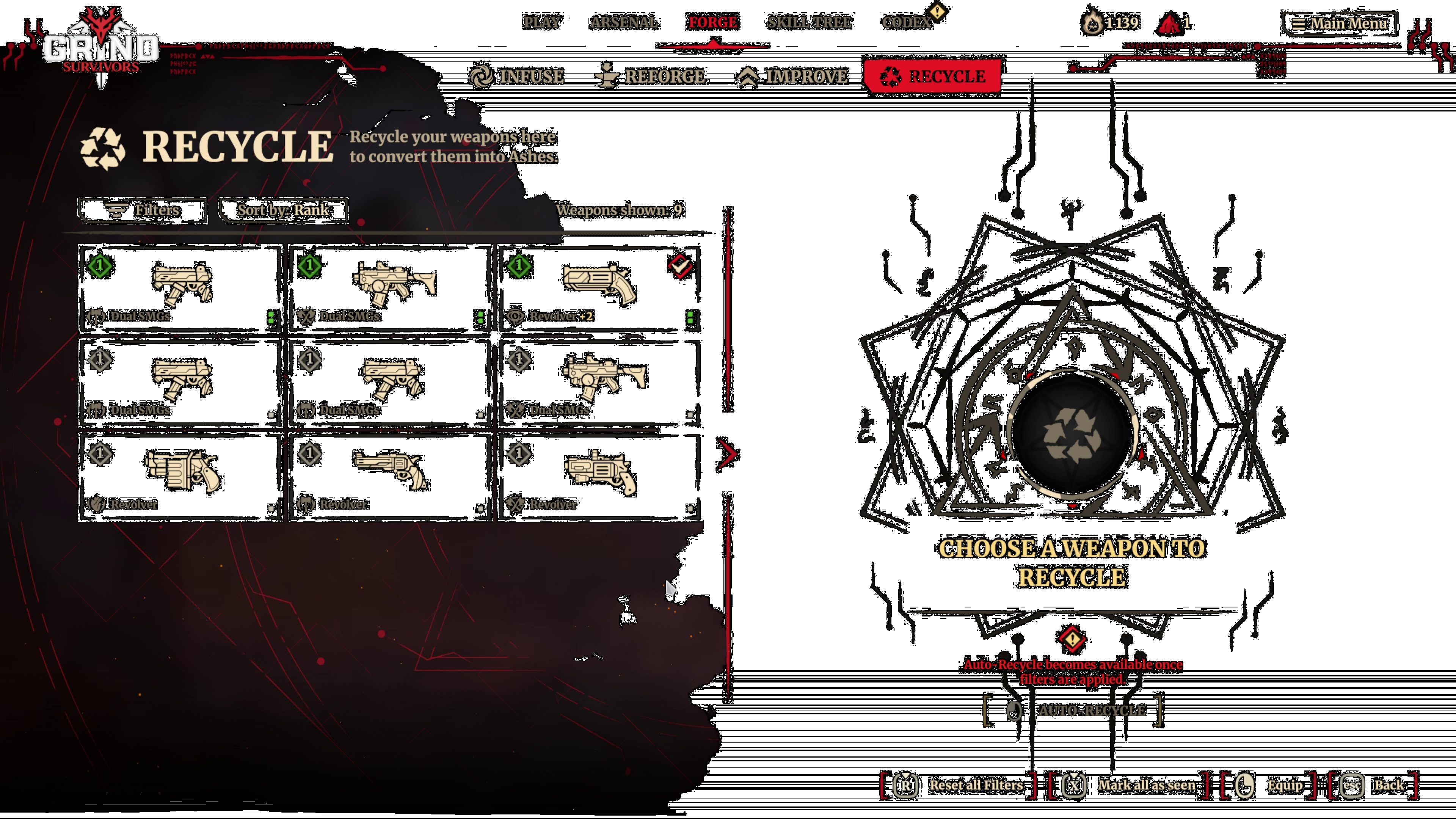 In der Schmiede kannst du Waffen zu einem individuellen Powerhouse verschmelzen, deine Lieblingsboni miteinander kombinieren oder mit riskanten Upgrades dein Glück herausfordern. Mutig genug? Würfle die Werte komplett neu aus und sieh, was passiert. In Grind Survivors besitzt jede Waffe die Fähigkeit, das Spiel auf die ein oder andere Weise zu brechen ... oftmals auch zu deinen Gunsten.