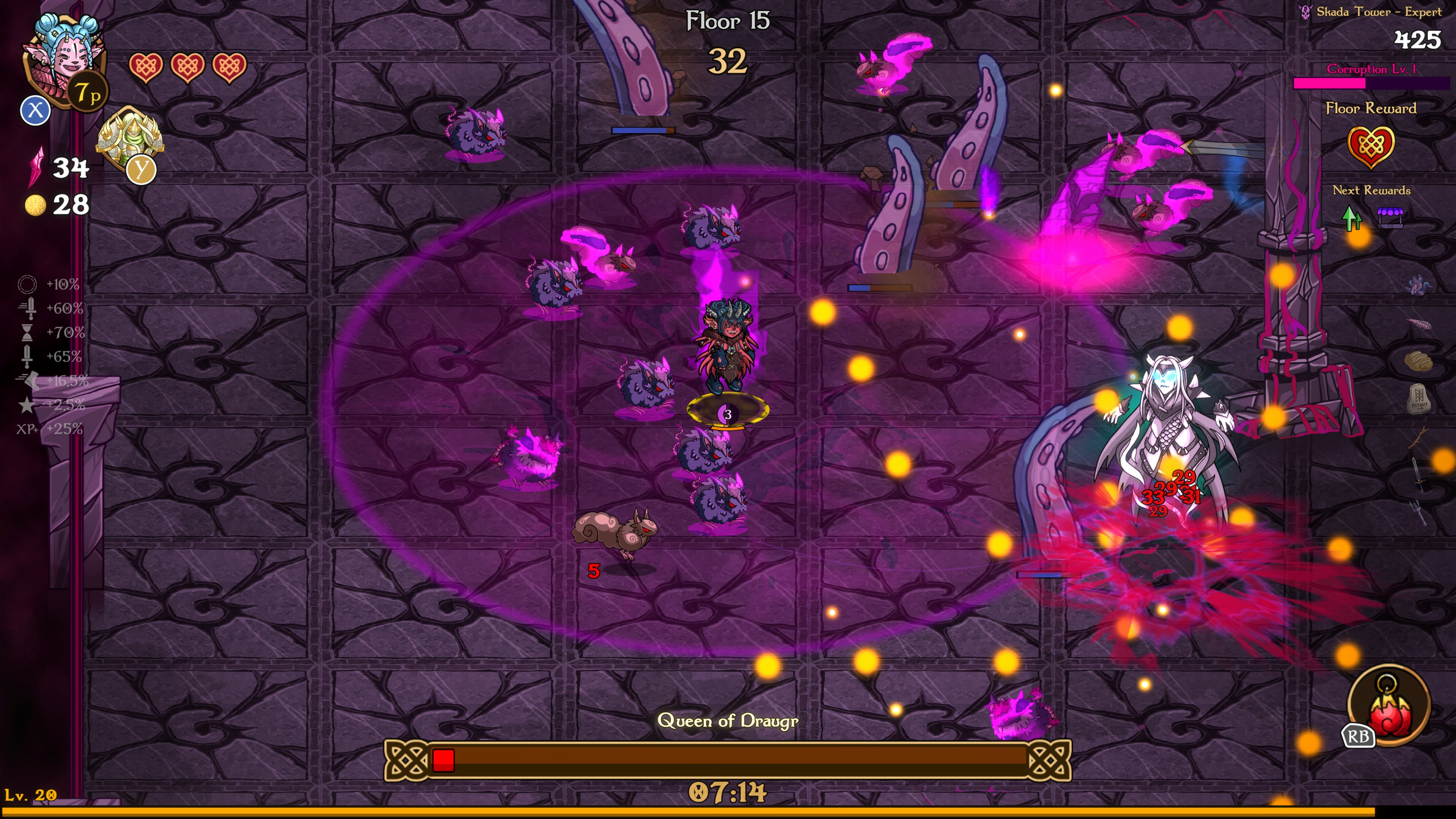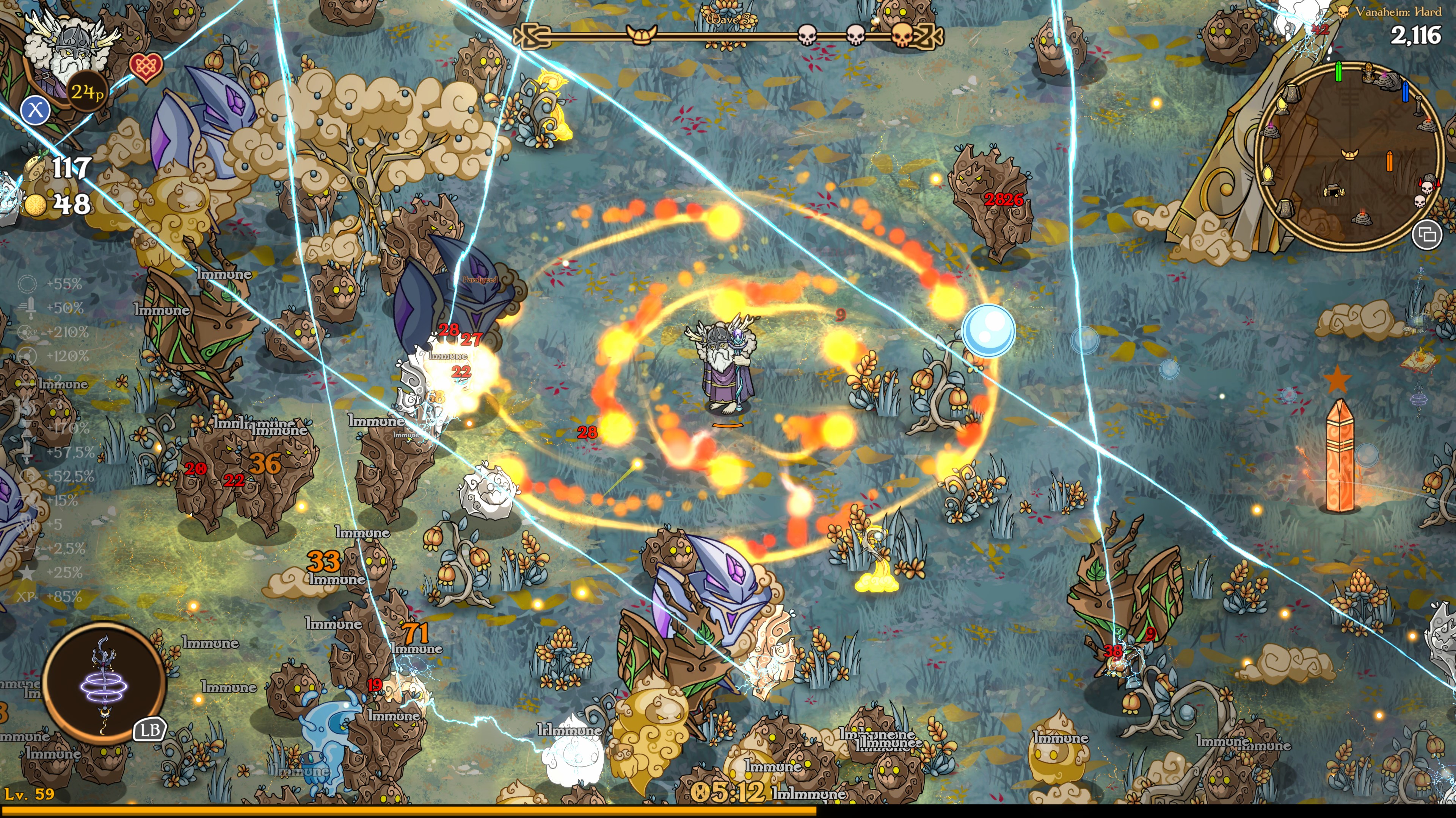 Schalte im Laufe des Kampfes neue Waffen und Fähigkeiten frei. Optimieren Sie die Fähigkeiten Ihrer Charaktere mit den Konstellations-Fähigkeitsbäumen, rüsten Sie sich mit mächtigen Relikten aus und töten Sie Ihre Feinde, bevor sie Sie umzingeln, oder es könnte zu spät sein...