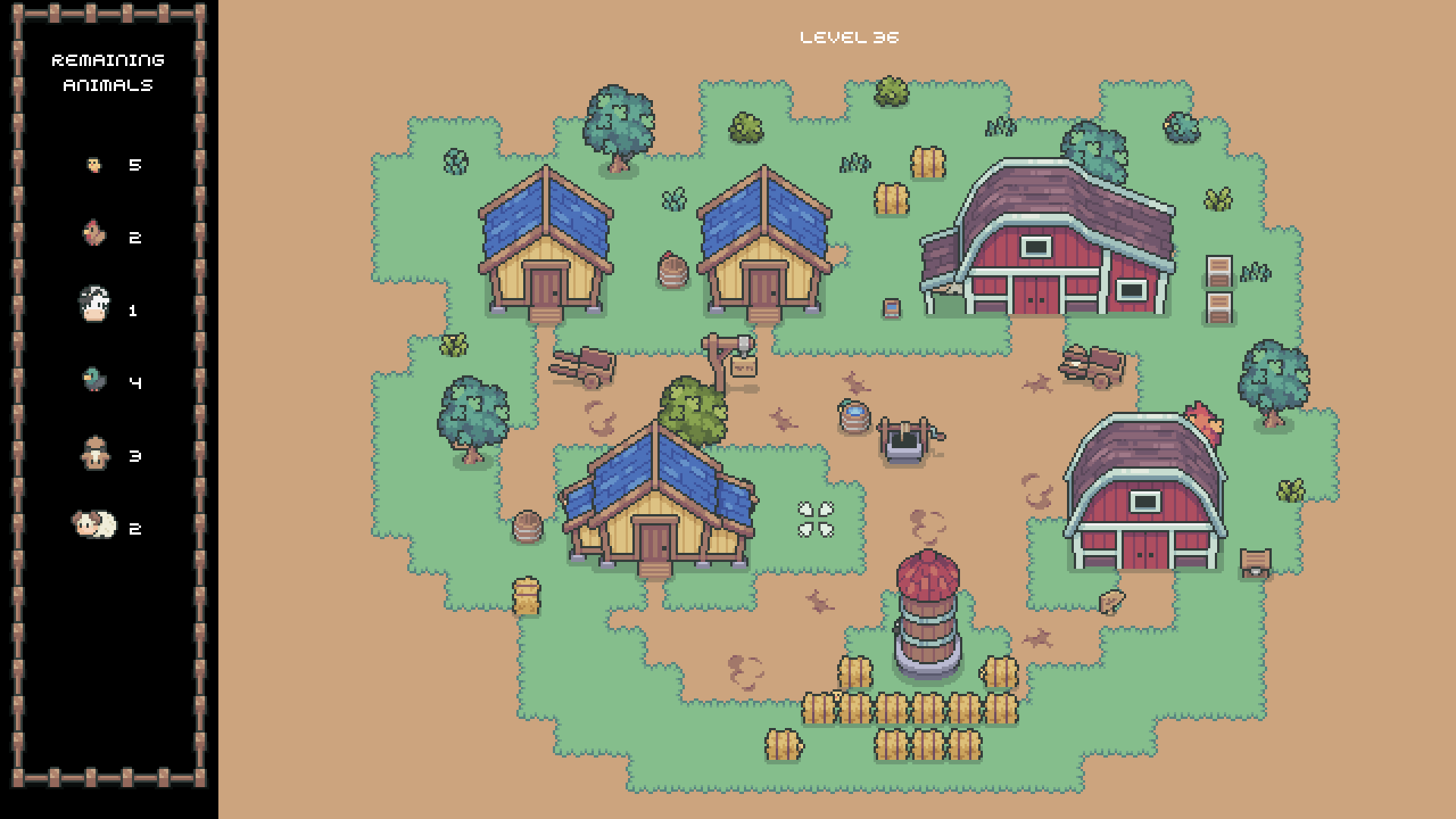 Jedes Level spielt sich auf einem einzigen Bildschirm ab, voller Scheunen, Bäume, Zäune und weiterer Bauernhofkulissen. In jeder Szene sind Bauernhoftiere sorgfältig versteckt. Dein Ziel ist es, die Umgebung genau zu beobachten, jede Ecke abzusuchen und alle Tiere zu finden.