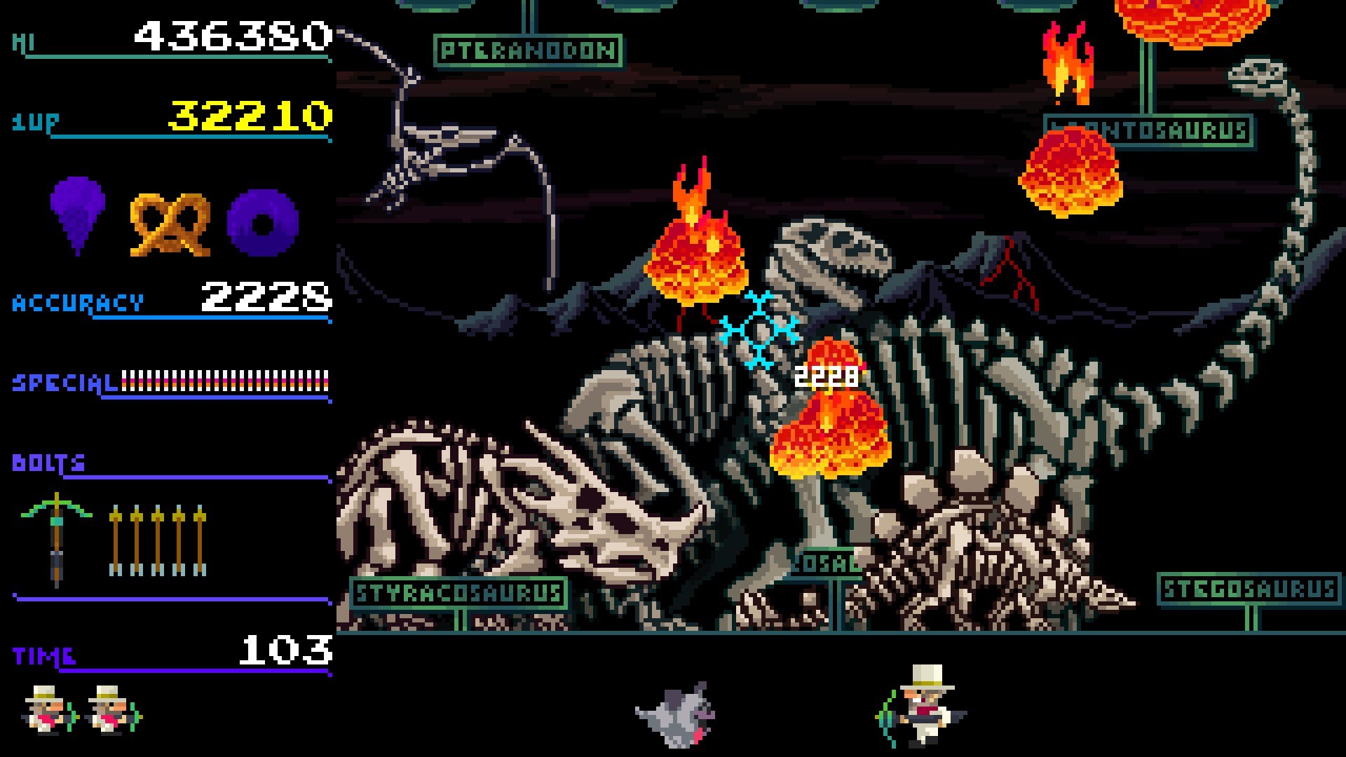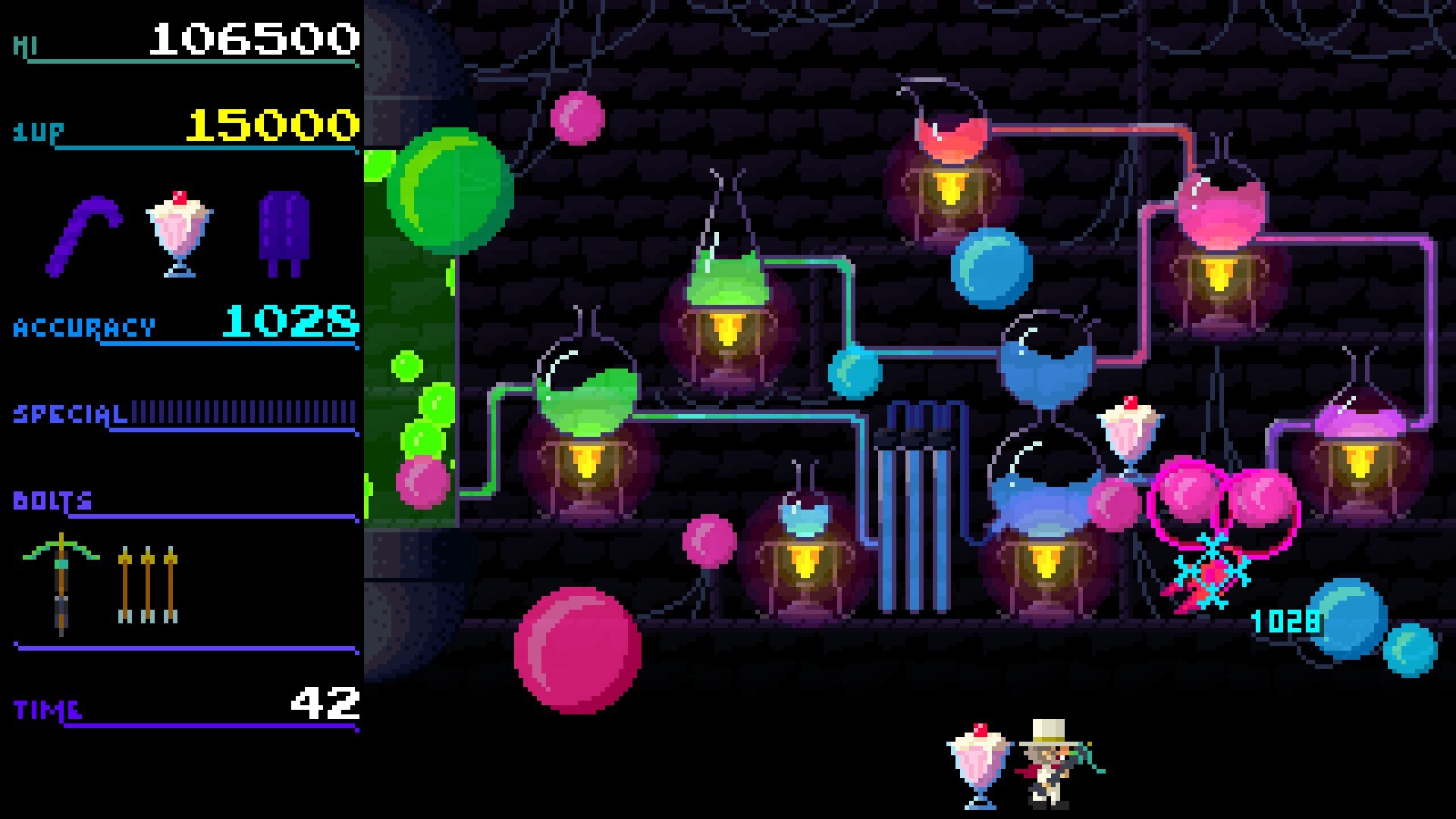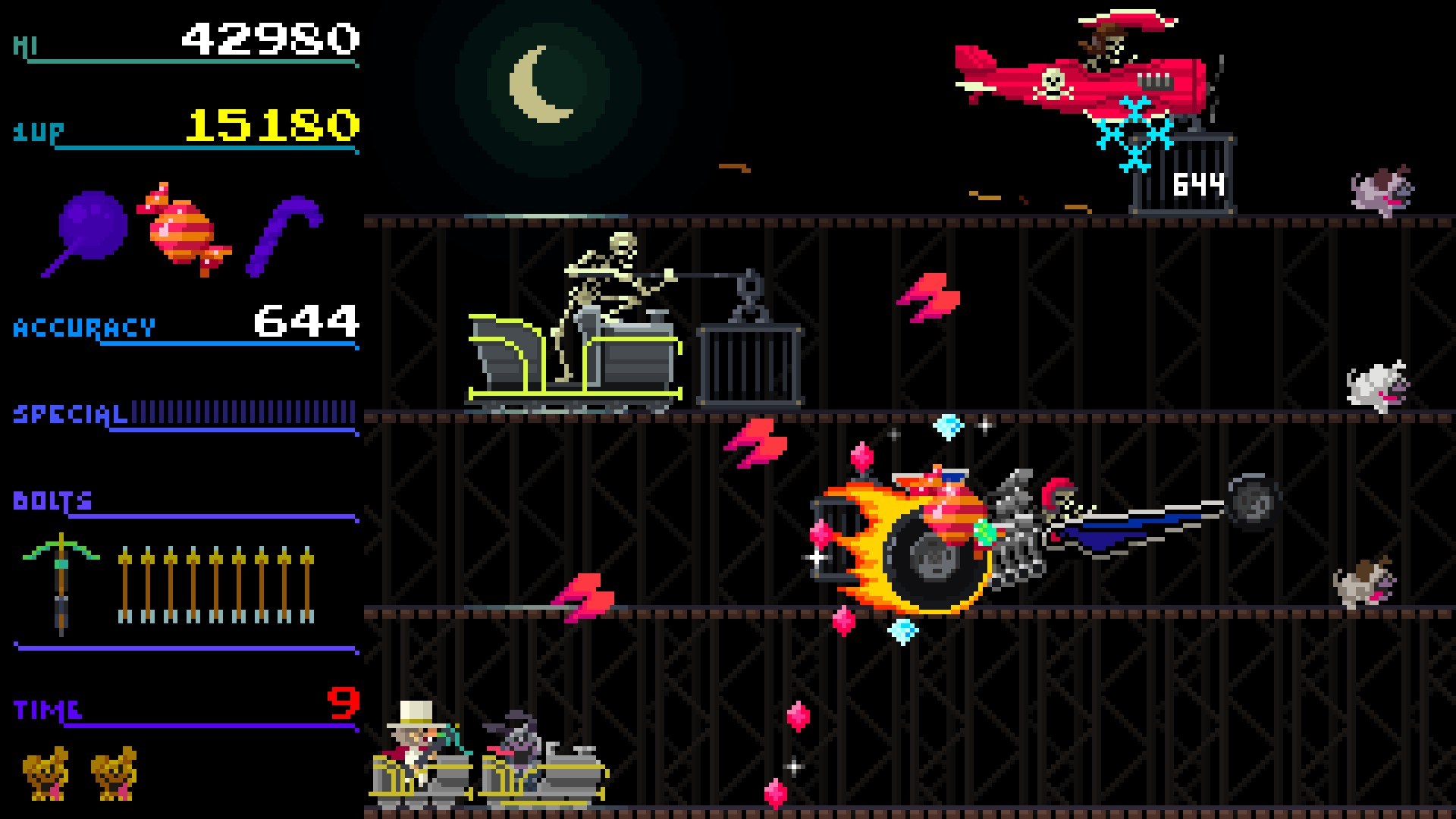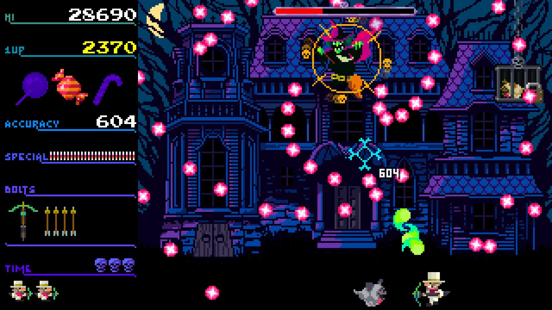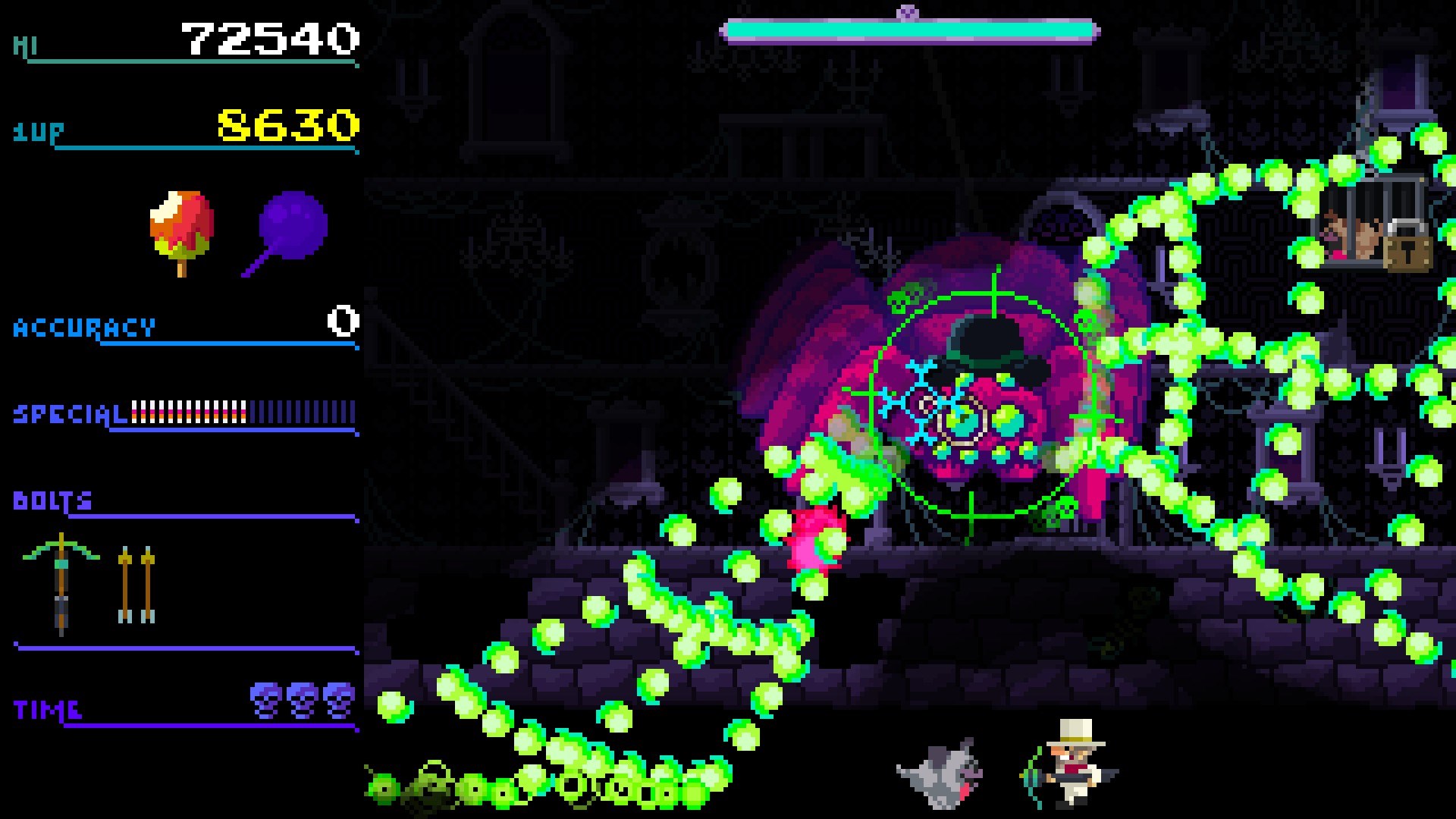 Klassischer Retro-Charme: Mit ausdrucksstarker Pixelgrafik, anpassbaren Retro-Bildschirmfiltern und coolen Synth-Pop-Beats des legendären YM2612-Chips sieht Silver Bullet aus und klingt wie ein verschollener 16-Bit-Klassiker.