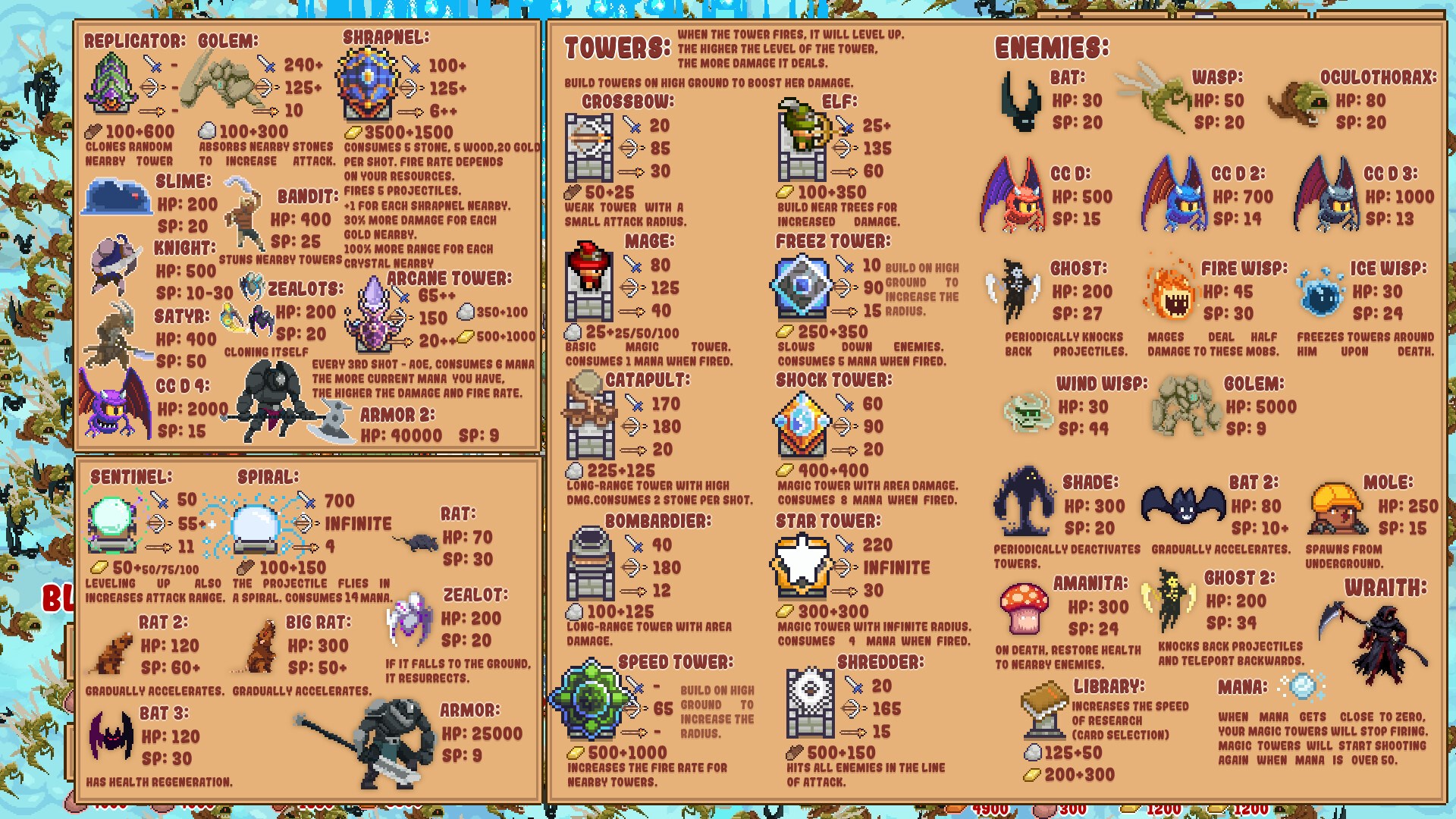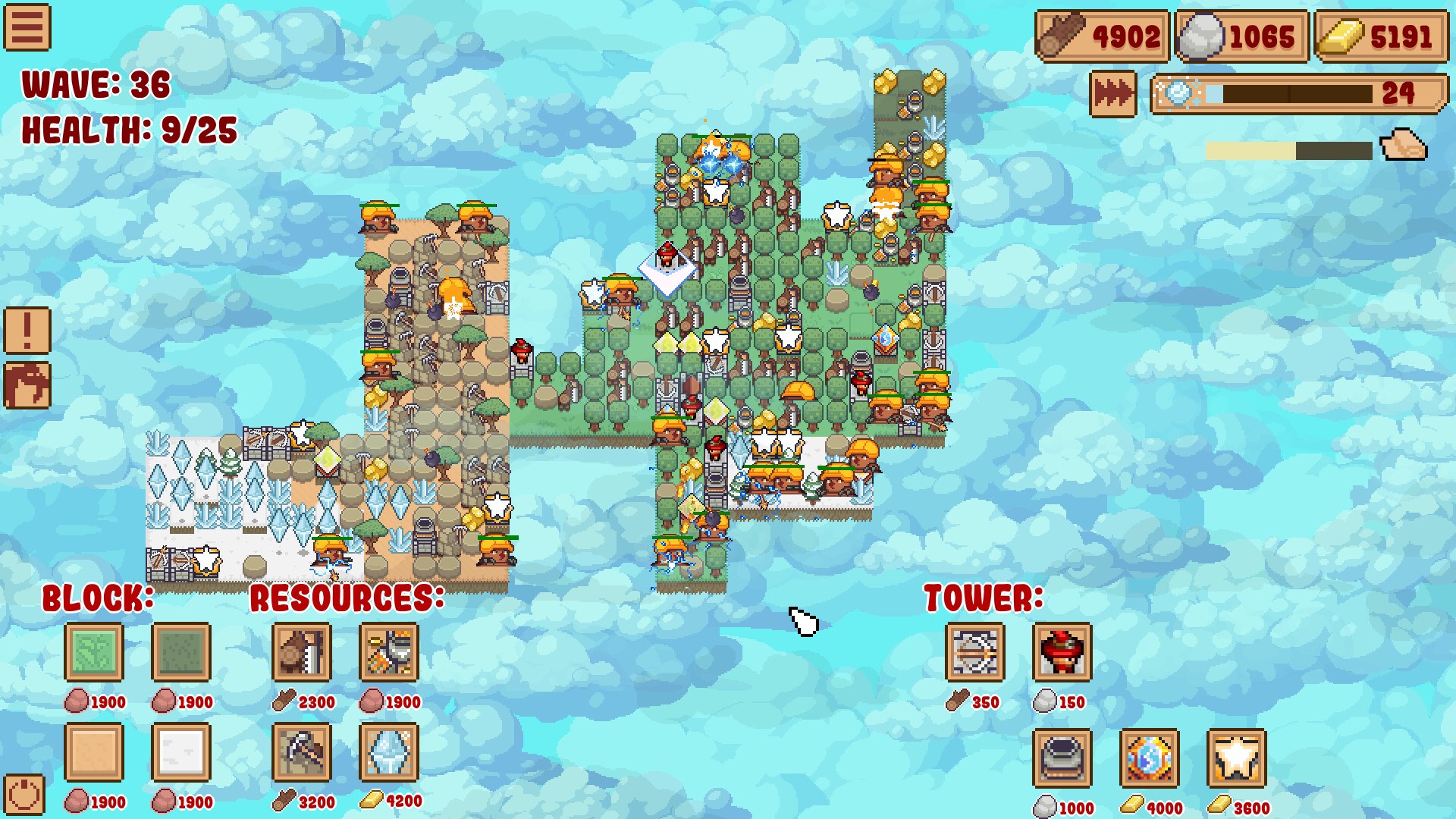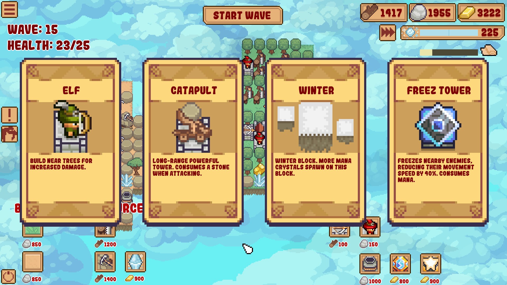 Die Reihenfolge, in der Upgrades in jedem Spiel ausgewählt werden, ist sehr wichtig. Sie können zwischen ressourcenbasierten Upgrades, Upgrades für magische Türme oder Upgrades für eine starke frühe Verteidigung wählen, die Ihnen einen sicheren Einstieg in das späte Spiel ermöglichen. In Kombination mit zufällig generierten Blöcken ergibt dies einen unendlichen Wiederspielwert.