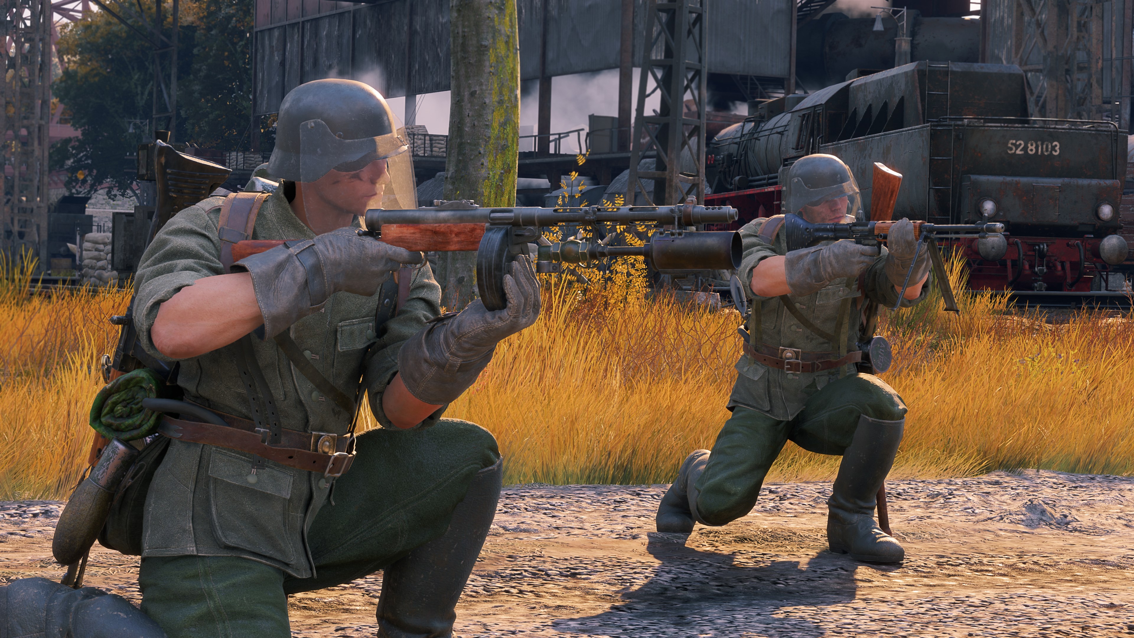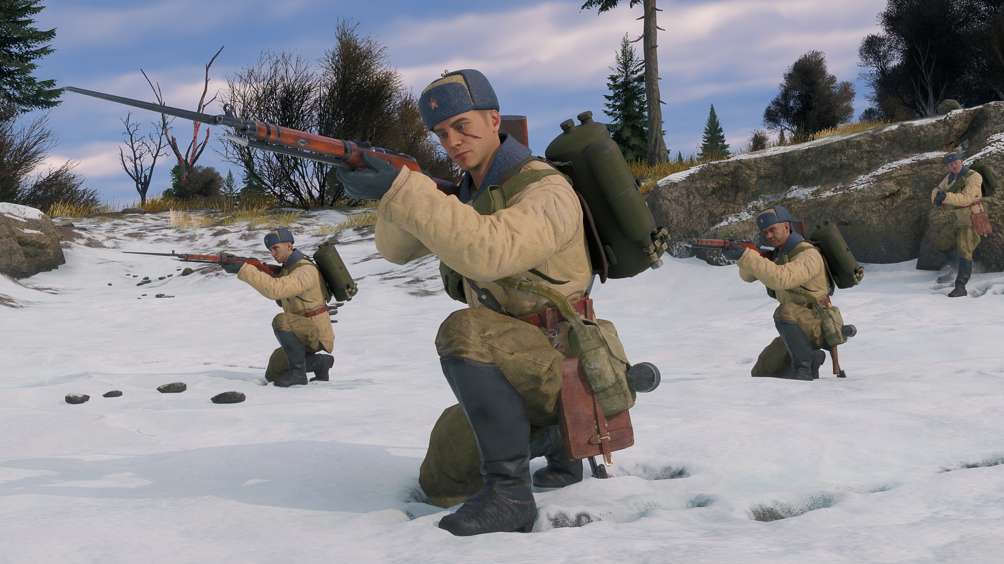 - Eine Premium-Einheit bestehend aus vier Flammenwerfer-Soldaten und einem Pionier der Stufe IV. Alle Soldaten sind mit Mosin M91-Gewehren ausgerüstet, die mit einem Flammenwerfer ausgestattet sind. Die Flammenwerfer-Soldaten sind zusätzlich mit AVT-40-Gewehren mit erweiterten Magazinen für 20 Schuss ausgerüstet. Ein zusätzlicher Slot ist ebenfalls für einen Panzerknacker-Soldaten oder einen Pionier mit einer Waffe aus dem Forschungsbaum verfügbar.