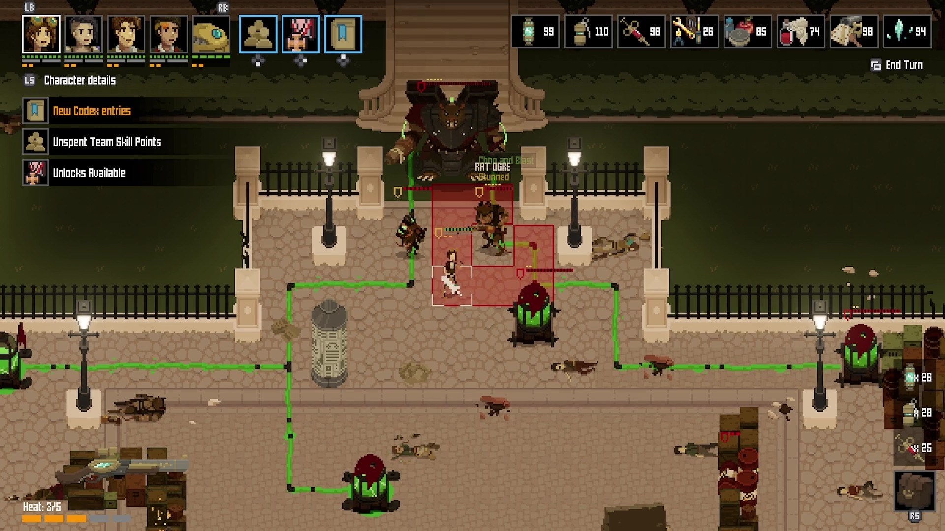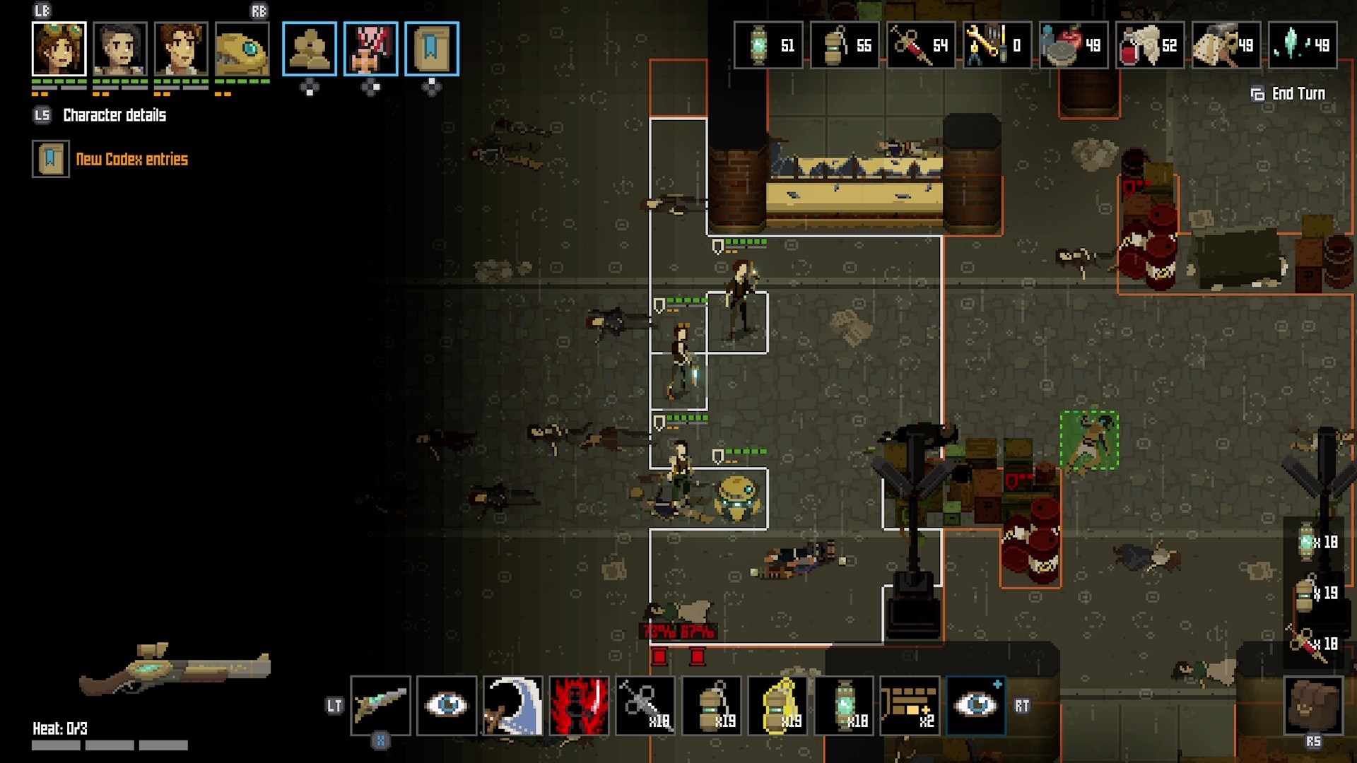 - Eine bunt zusammengewürfelte Truppe von Charakteren für dein Team, jeder mit einzigartigen Fähigkeiten, Ausrüstung, Stärken und Schwächen, die das ganze Team beeinflussen