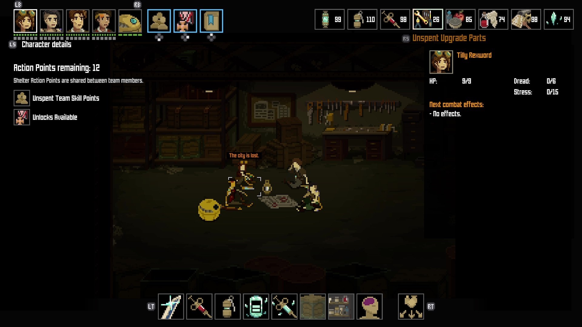 Stell dein Team zusammen, durchsuche die Umgebung nach Ressourcen, bekämpfe feindliche Horden und suche Schutz, um einen weiteren Tag zu überleben. Dich erwartet ein Mix aus rundenbasierter Strategie mit RPG-, Survival- und Ressourcenmanagement-Elementen.