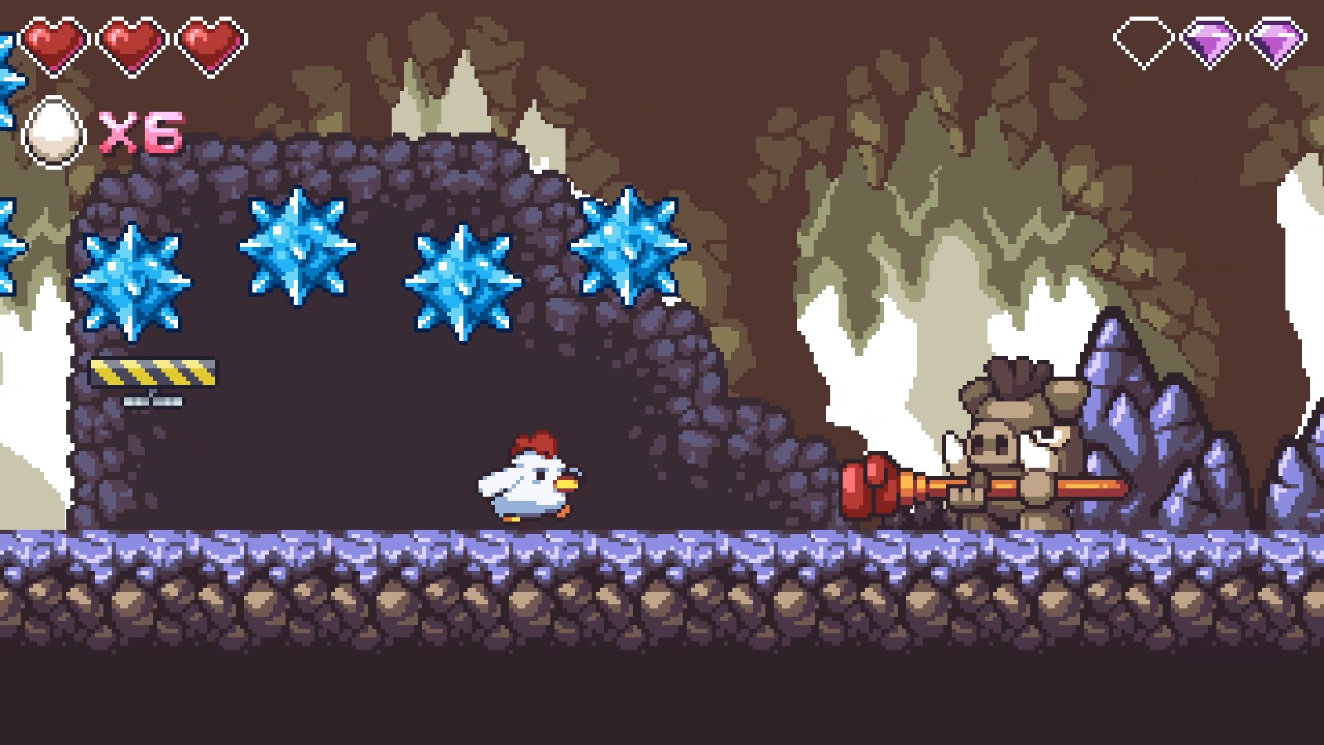 Sammle unterwegs verstreute Diamanten und nutze Eier als Fernangriffe gegen deine Gegner. Besiege Feinde, indem du auf sie springst oder sie aus der Distanz angreifst, während du die reaktionsschnelle Steuerung und die flüssigen Bewegungen perfektionierst. Halte die Sprungtaste gedrückt, um durch die Luft zu gleiten, Gefahren auszuweichen, versteckte Wege zu erreichen und neue Bereiche zu entdecken.