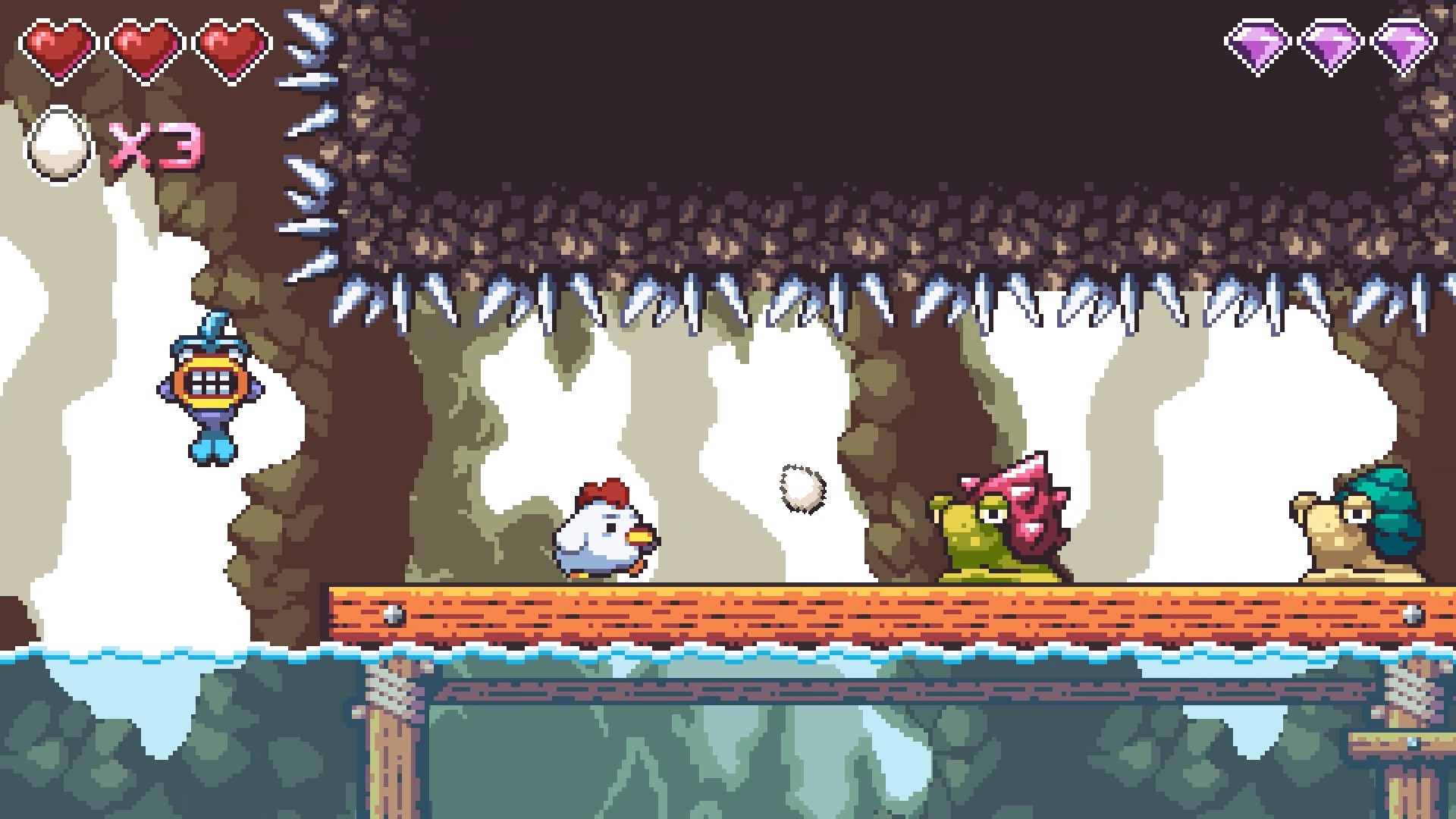 Chicken Rescue ist ein retro-inspiriertes 2D-Pixelart-Plattformspiel, in dem sich ein mutiges Huhn auf ein Abenteuer begibt, um verlorene Küken zu retten und wertvolle Diamanten in herausfordernden Levels zu sammeln.