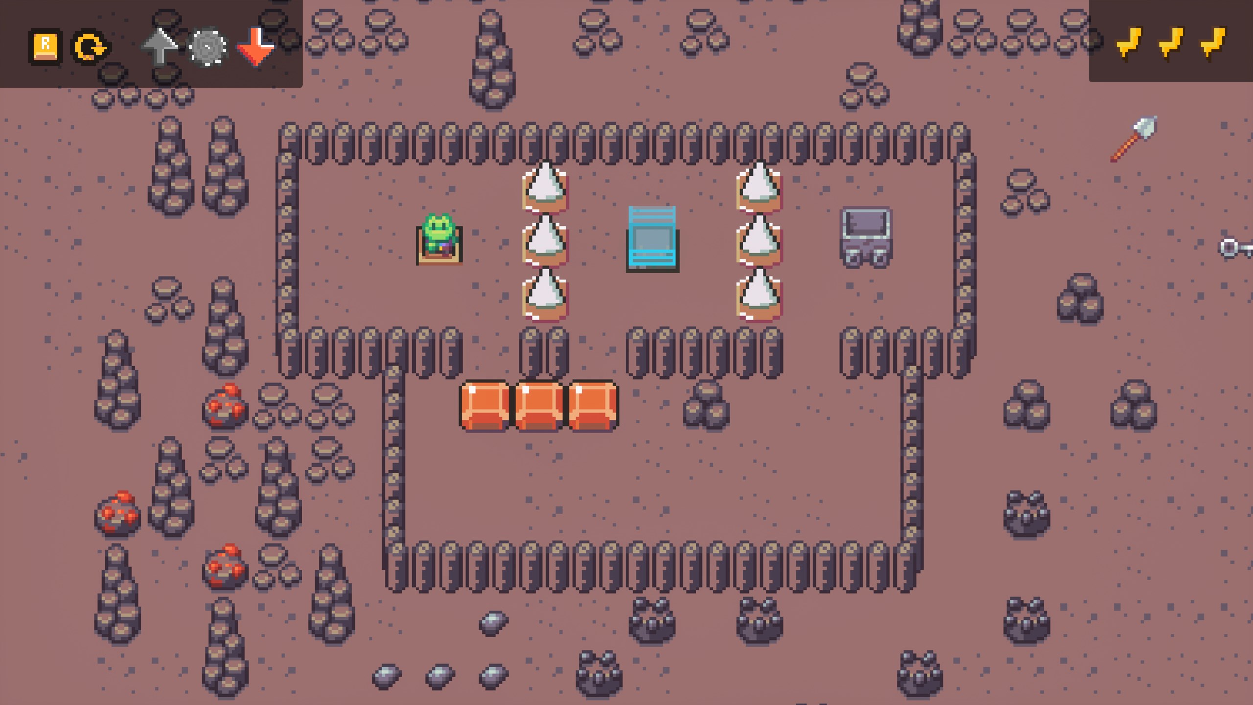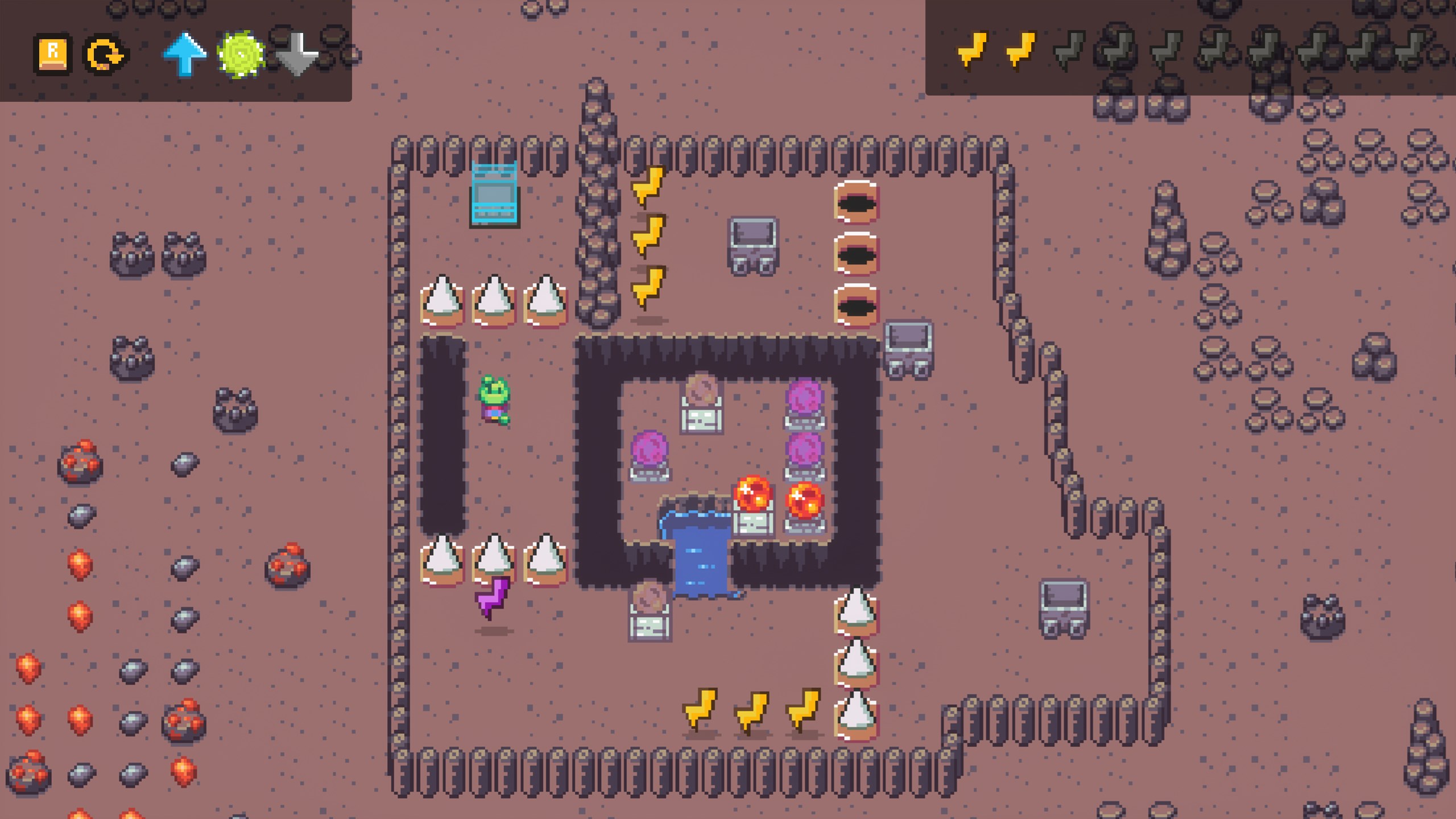 Tiny Mage in Puzzle Land ist ein 2D-Pixel-Art-Puzzlespiel, inspiriert von Sokoban, aber mit einzigartigen Kniffen! Hilf dem Froschmagier, 40 knifflige Rätselräume zu lösen. Nutze seine drei magischen Fähigkeiten, um Abgründe zu überwinden, Brücken über Seen zu bauen und Objekte von einem Punkt zum anderen zu bewegen!