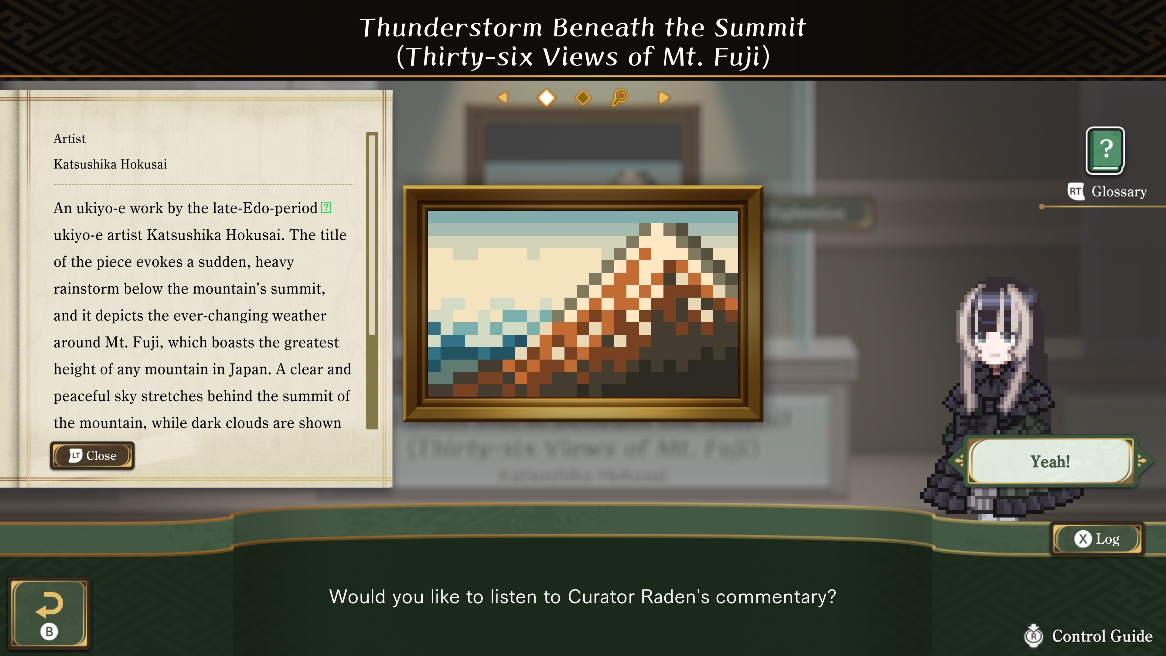 Die gesamte Spielwelt, vom Museum bis zu Kuratorin Raden selbst, ist im Pixelstil gestaltet.