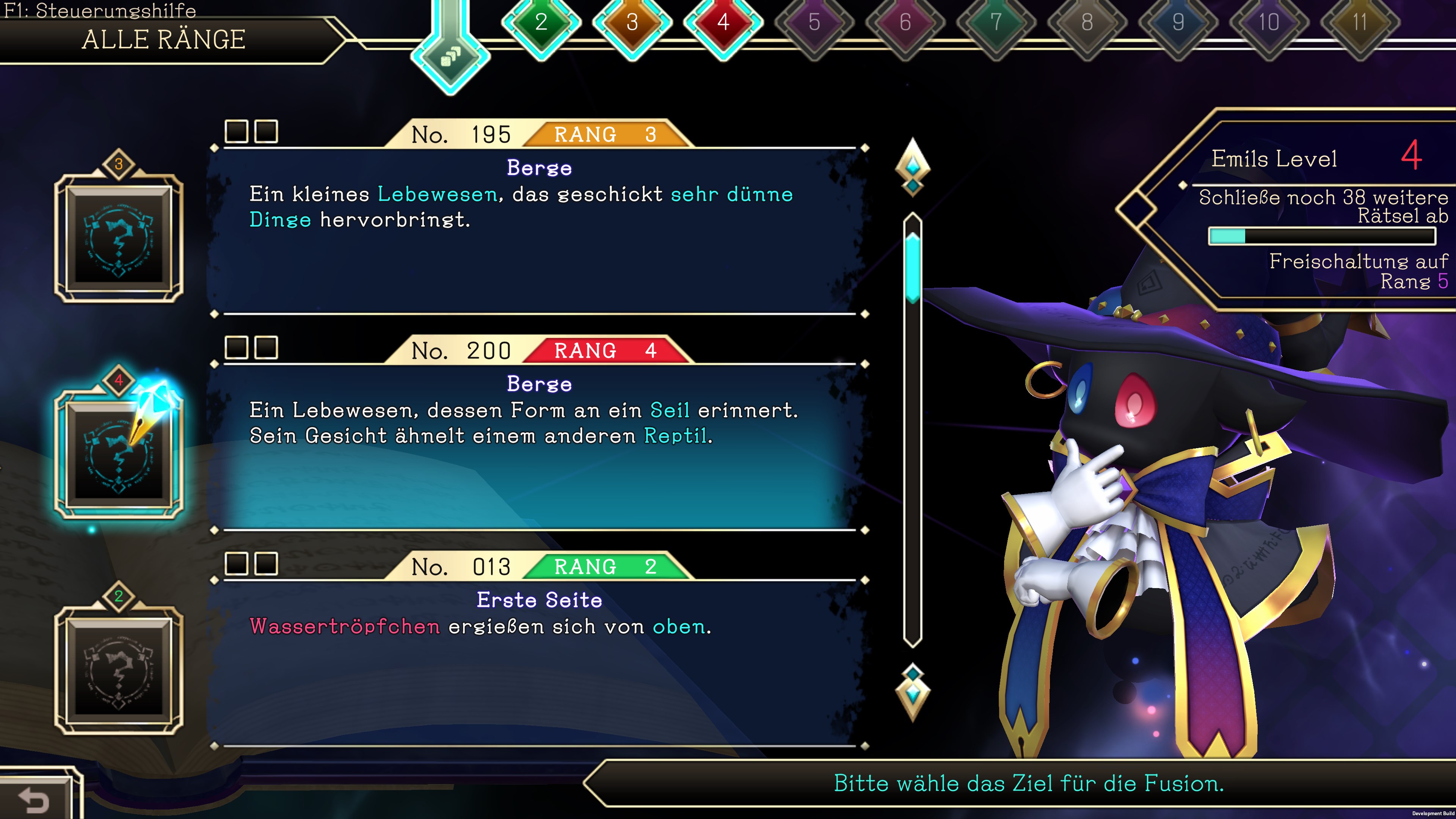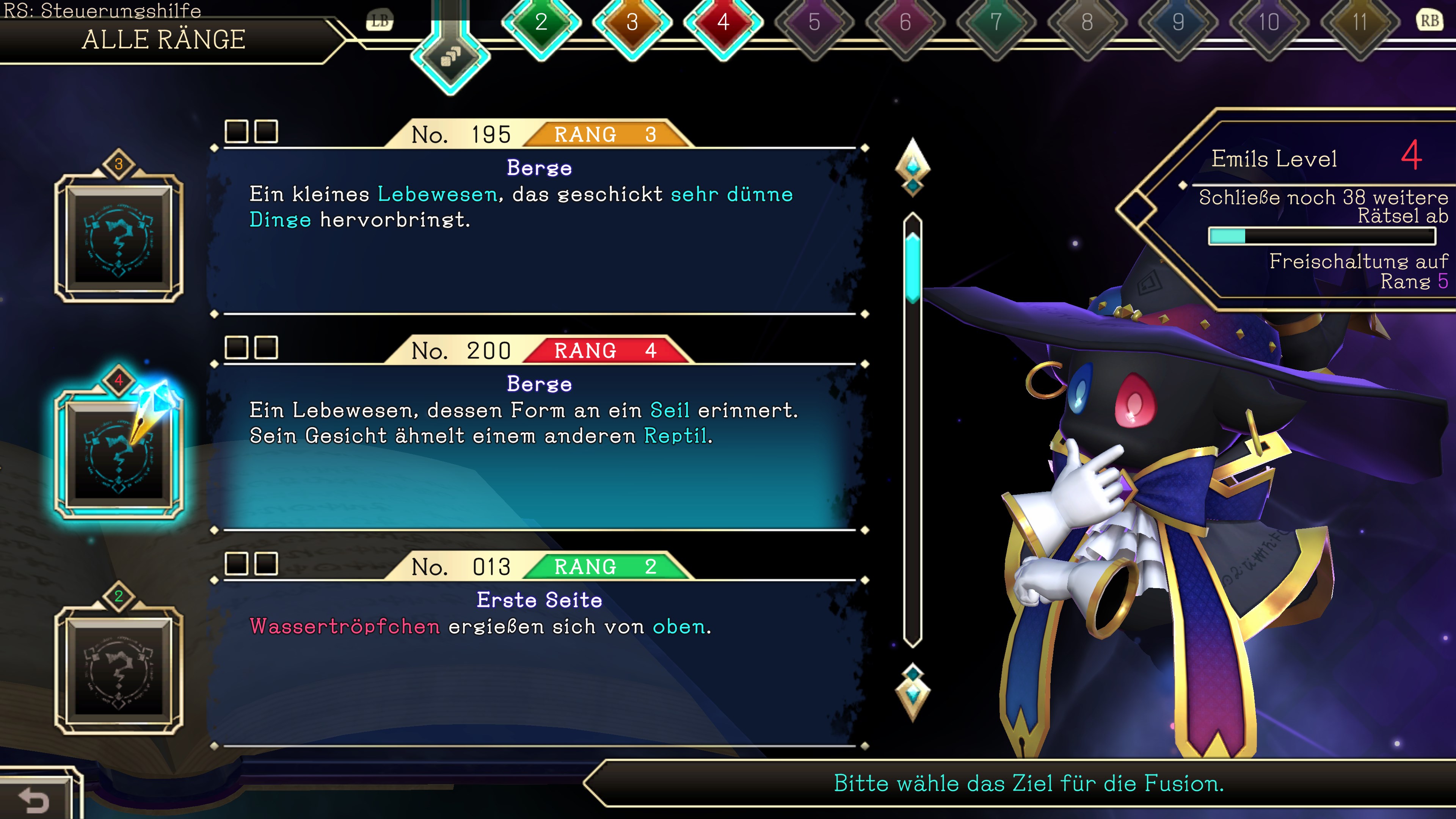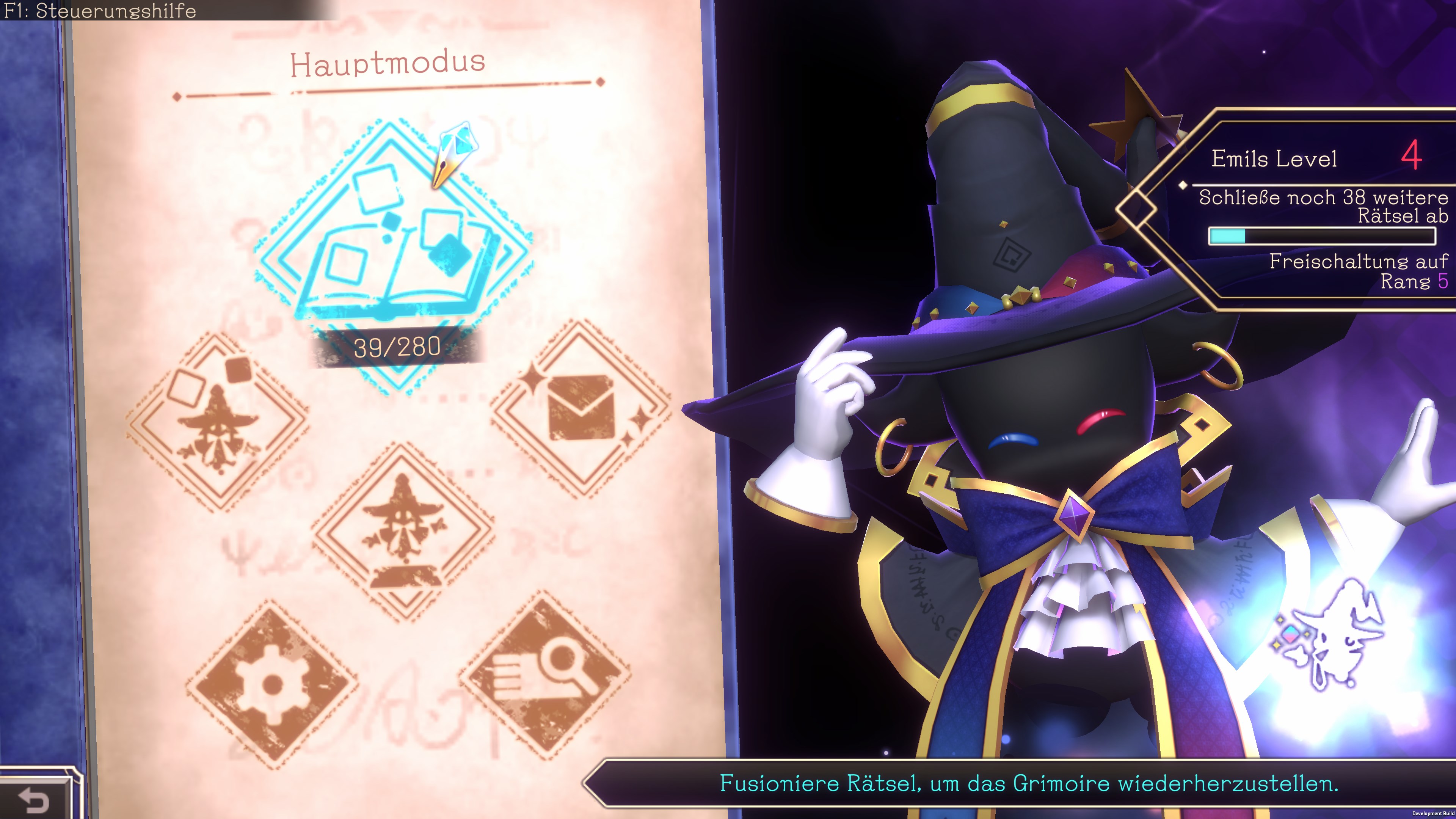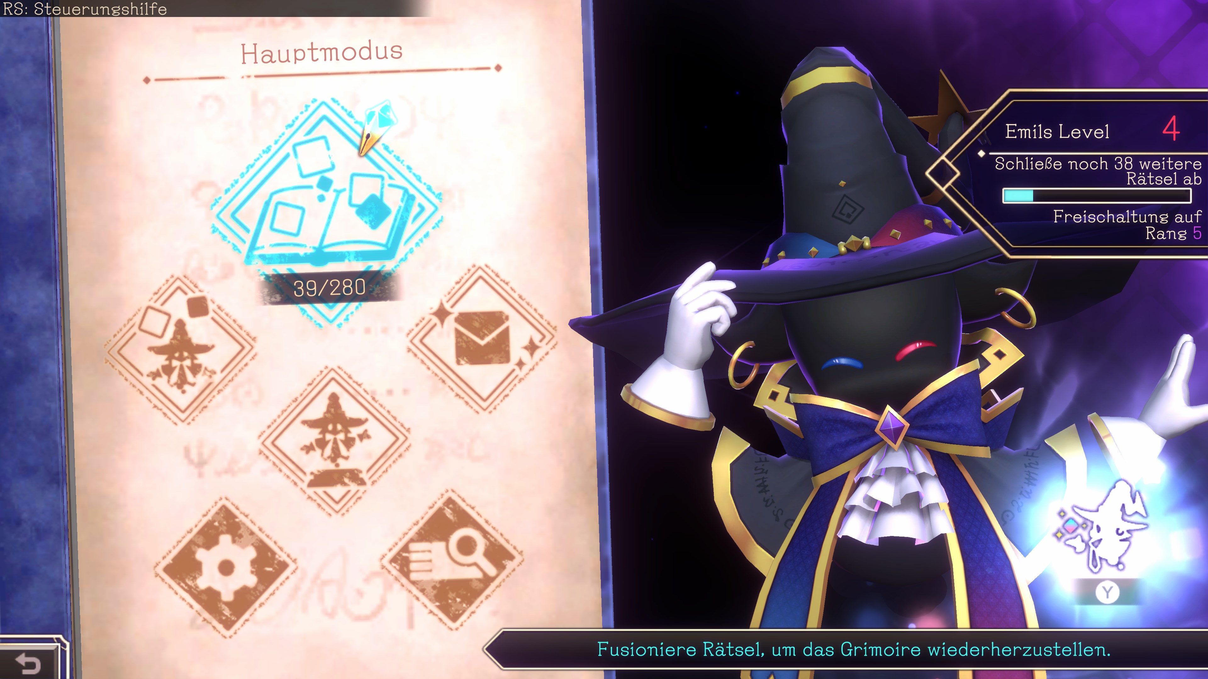 Emil, dein Begleiter bei der Enthüllung der Geheimnisse des Grimoires, gewinnt jedes Mal wenn du ein Logiart-Rätsel löst, an magischer Kraft.