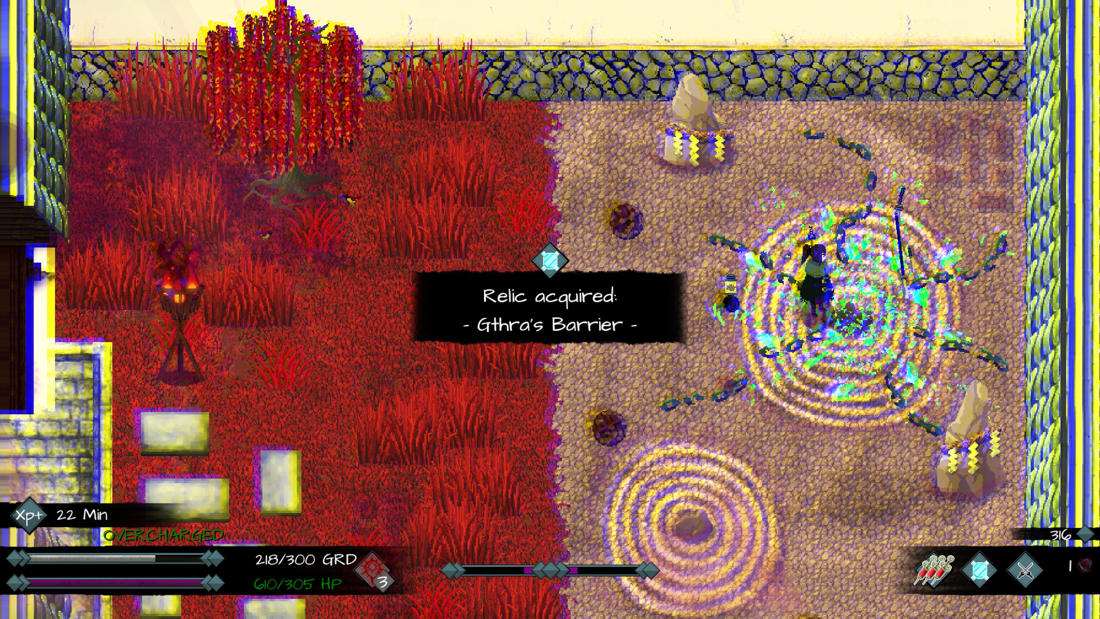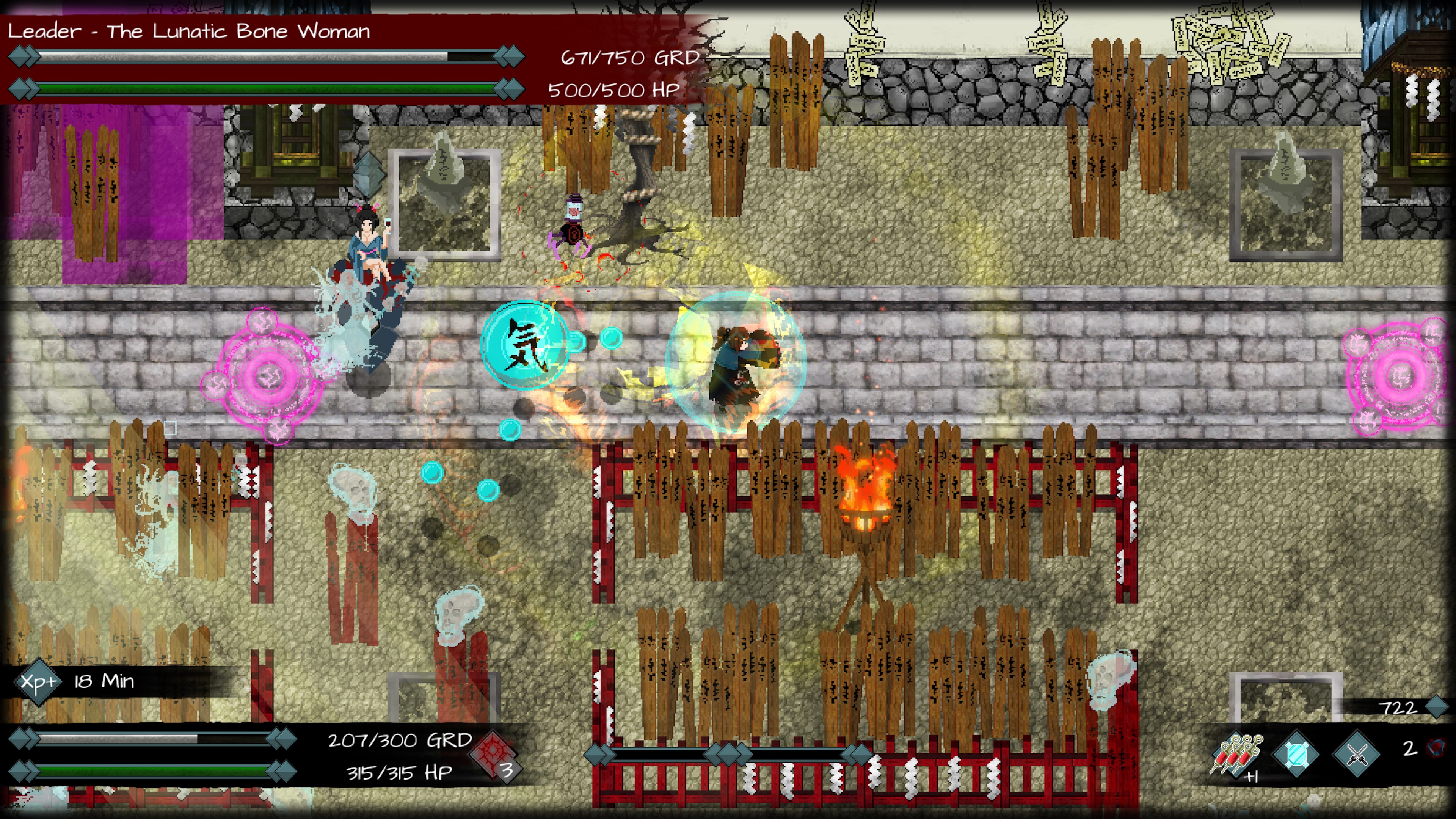 Bekämpfe Gegner in beliebiger Reihenfolge. Zufluchtsorte, übernatürliche Wesen und magische Gegenstände ermöglichen es dir, Kraft zu tanken und zu früheren Gebieten zurückzukehren. Unterwegs kümmerst du dich um verwundete Soldaten, sammelst Yth-Steine, entdeckst ninja-ähnliche Möpse mit der Fähigkeit, sich unsichtbar machen zu können, und weichst surrealen Schreckenswesen aus, die sich als harmlose Dinge tarnen!