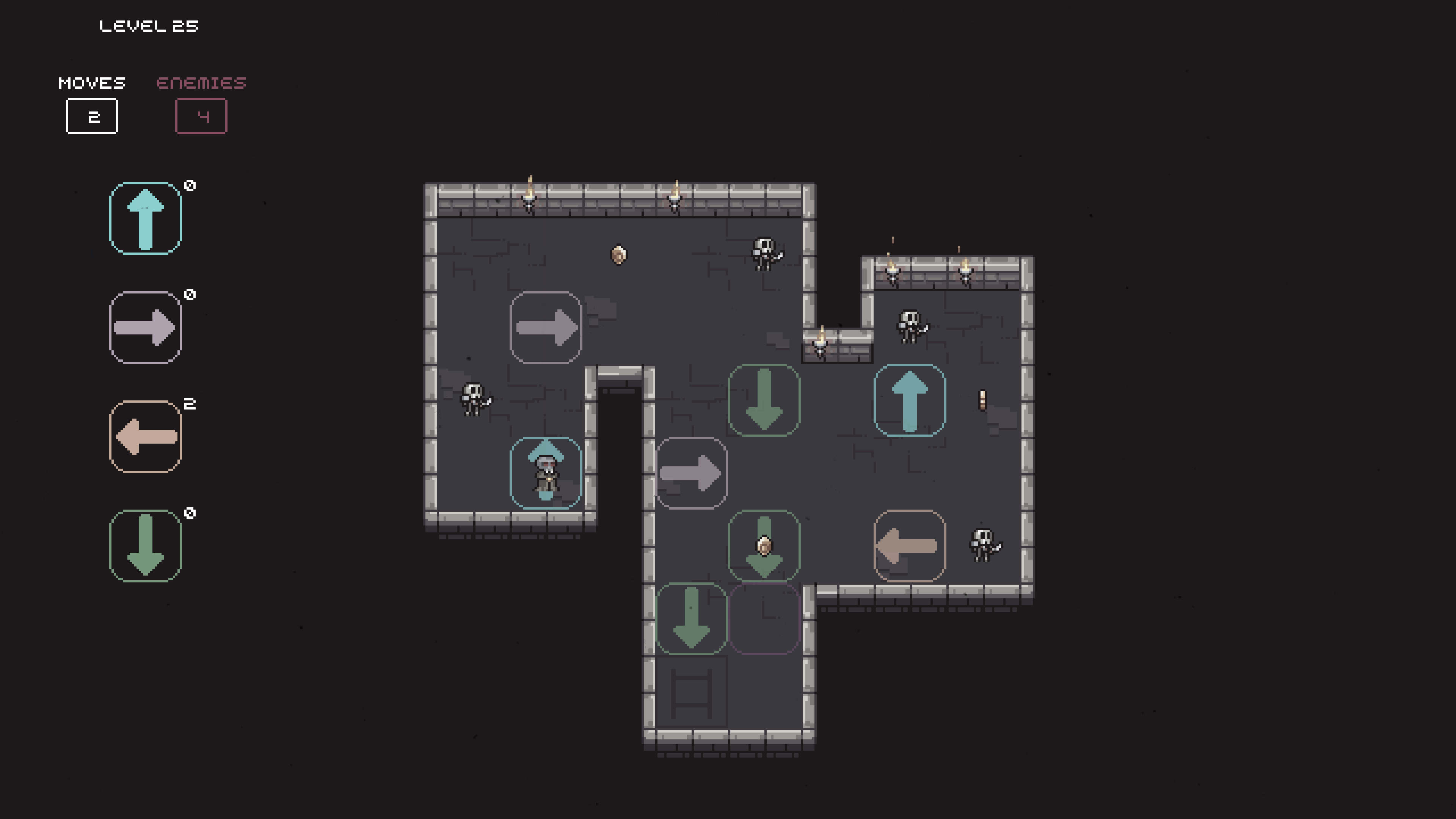 Feinden wird nicht ausgewichen, sie werden ausgespielt. Skelette versperren deinen Weg und zwingen dich, Bewegungsreihenfolge, Positionierung und Strategie sorgfältig zu bedenken. Eine einzige falsche Entscheidung kann dich in der Dunkelheit gefangen halten.