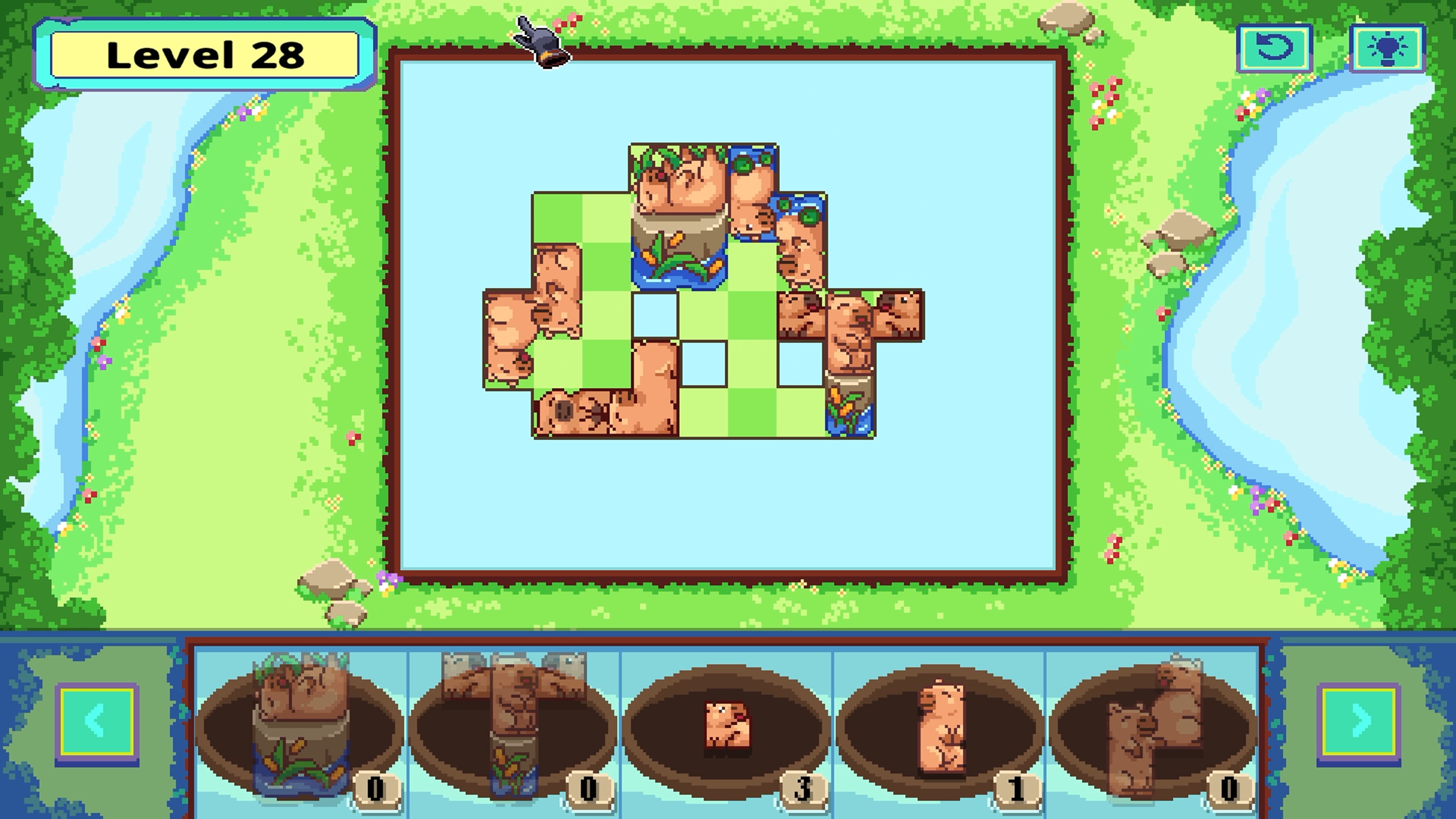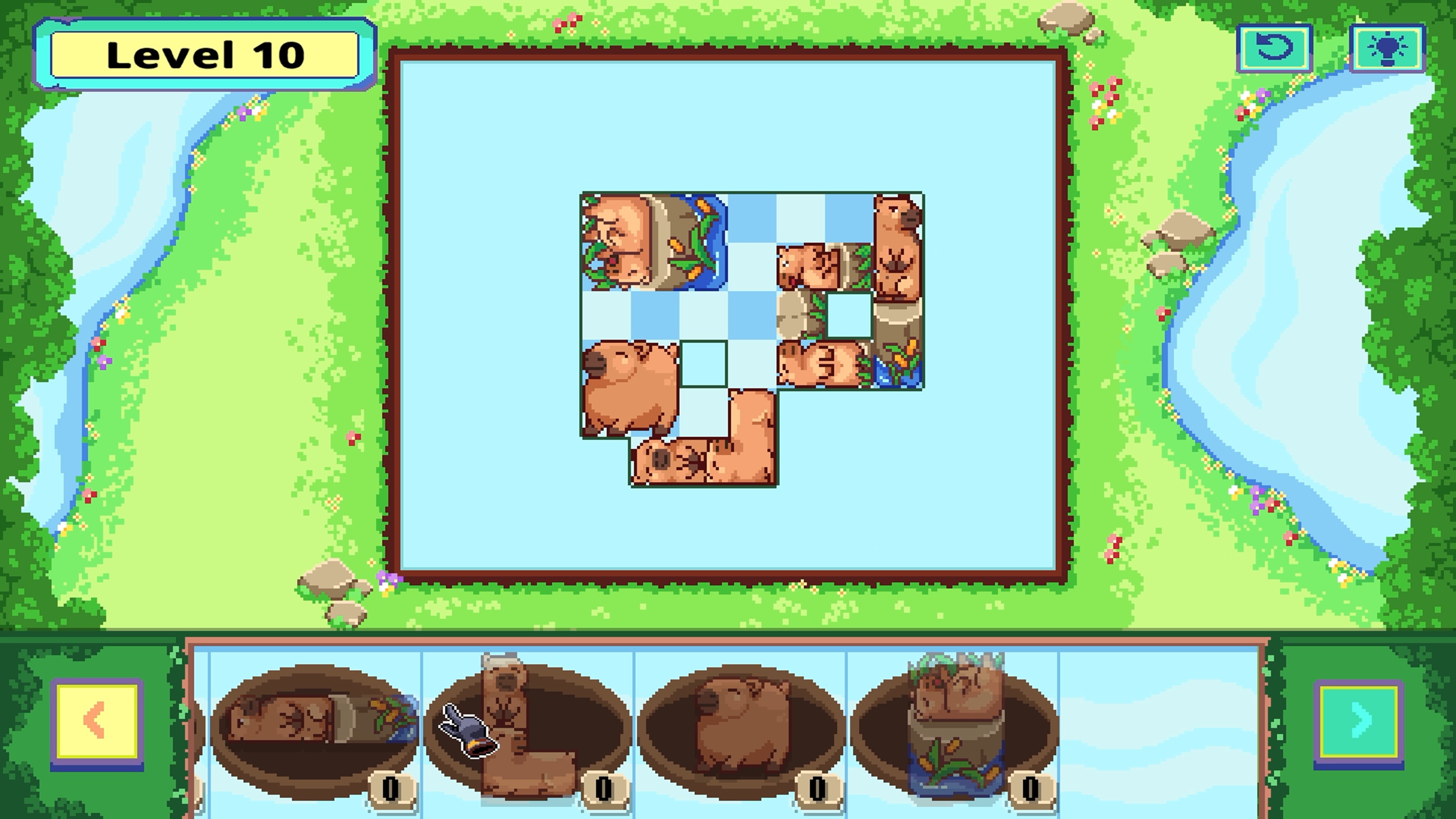 Mach dich bereit, in Claim the Forest: Settling Peace zu entspannen, einem gemütlichen Puzzlespiel, bei dem deine Aufgabe darin besteht, jedes Spielfeld mit niedlichen Capybara-förmigen Teilen zu füllen. Sie kommen friedlich in kleinen Booten den Fluss entlang, und es liegt an dir, sie aufzunehmen, zu drehen und perfekt zu platzieren.