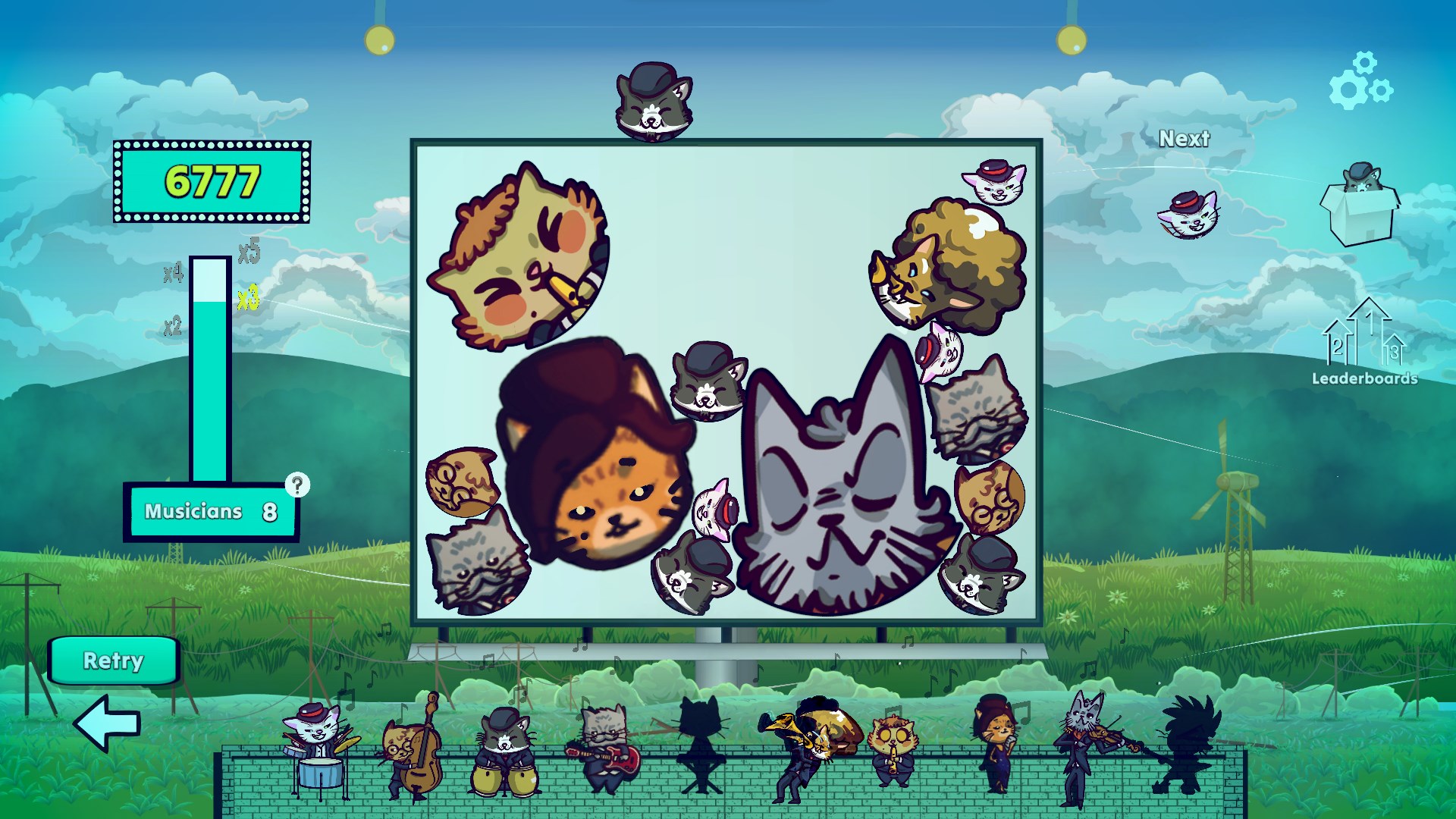 Stelle in Musical Memory: Cats Matching Band eine Bühne voller musizierender Katzen zusammen, bei der jede erfolgreiche Kombination neue Künstler und neue Klangschichten zum Soundtrack hinzufügt. In Carnival Survivors The Parade steuerst du einen musikkraftbetriebenen Paradewagen, rekrutierst Musiker mit einzigartigen Fähigkeiten, überlebst Gegnerwellen und erschaffst starke Builds durch Upgrades. In Roofcats Band - Suika Style kombinierst du Katzenmusiker in einer verspielten Rooftop-Jam-Session mit dynamischer Musik, mehreren Modi, handgezeichneter Grafik und einem frechen Hund, der für Chaos sorgt.