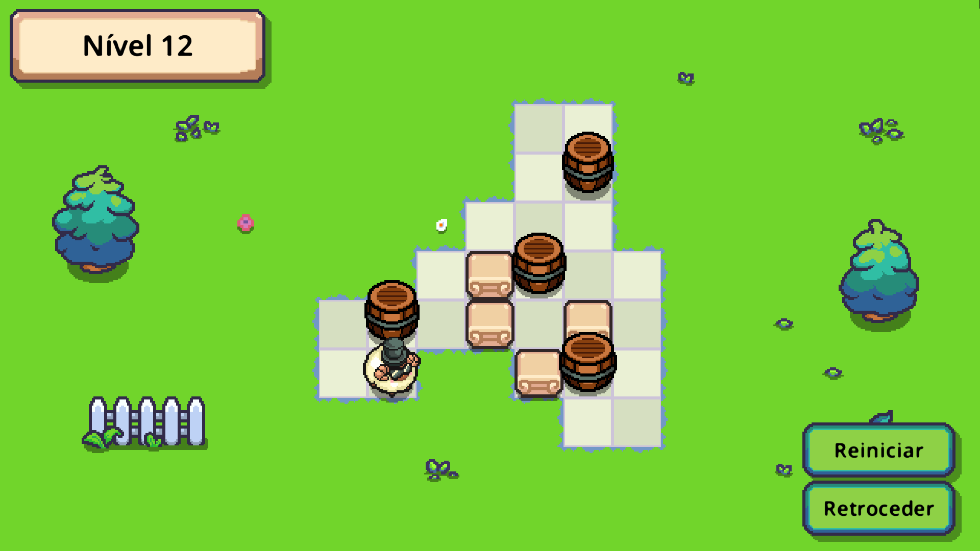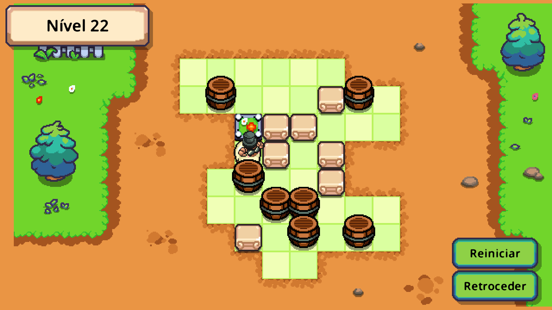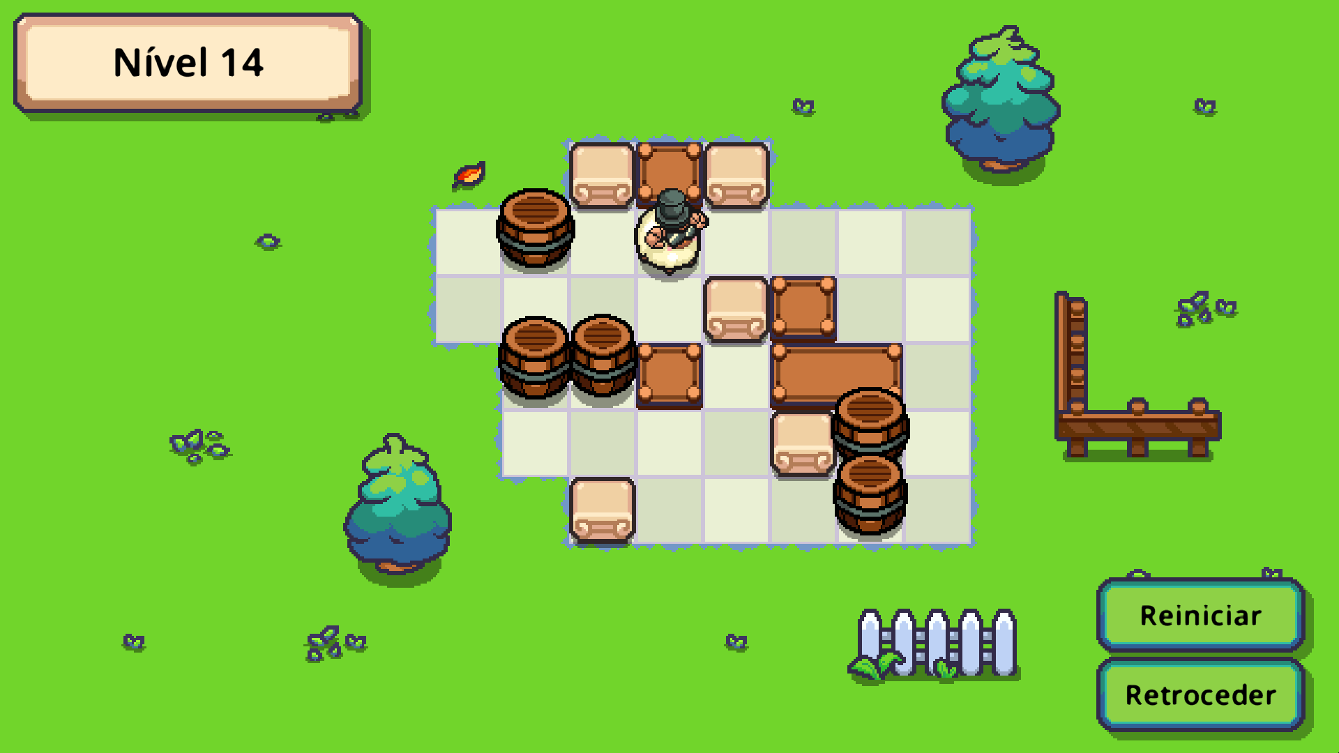 Das Spiel bietet 30 Level, verteilt auf die hellen Sommerlandschaften und die warmen Herbstgebiete. Jedes Rätselbrett enthält Blöcke, Fässer und Sockel, die auf ihre ideale Anordnung warten. Wenn alle Fässer richtig platziert sind, ertönt ein fröhlicher Klang und das Level ist geschafft.