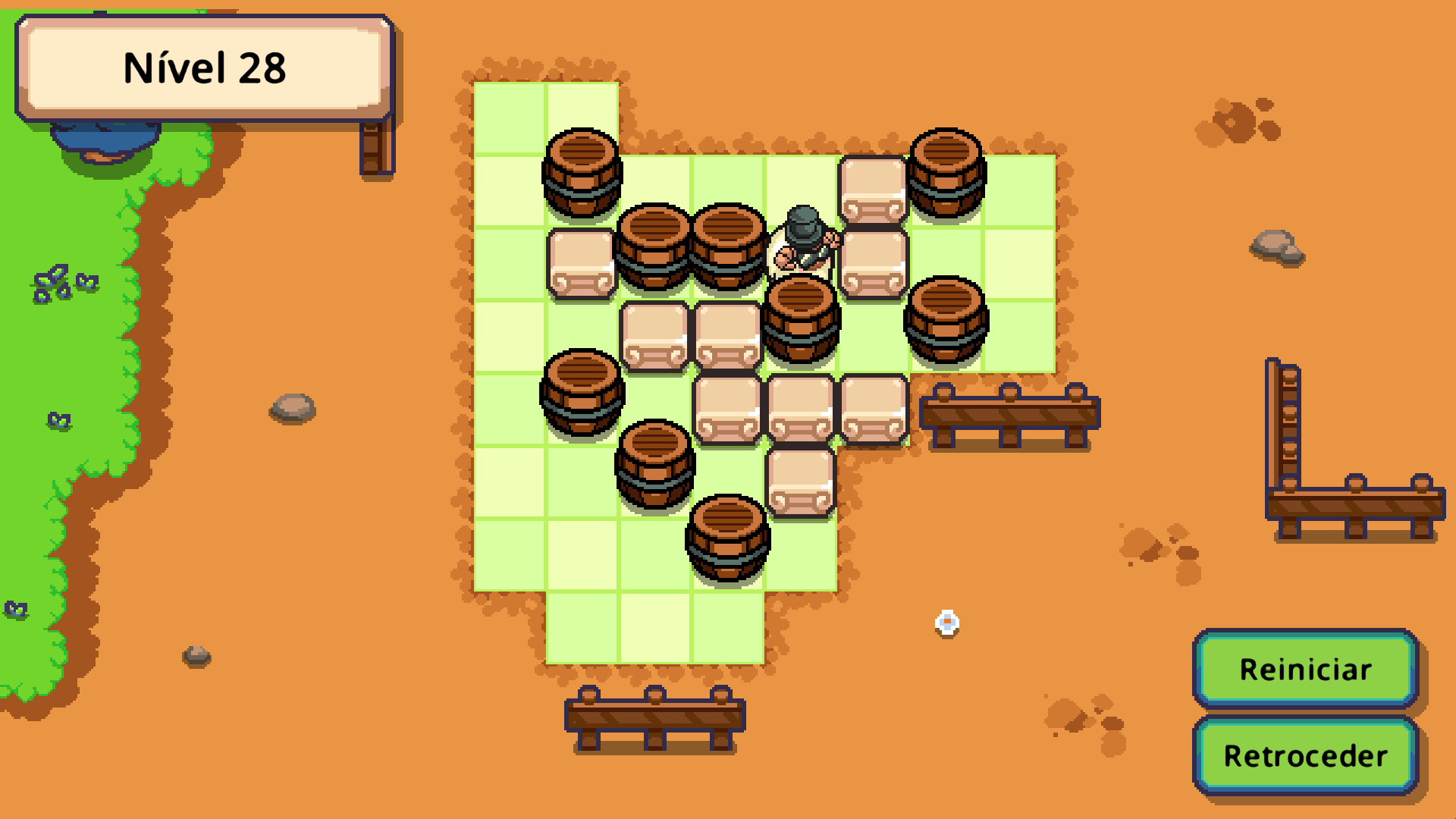 Magic Sheep entführt dich in eine charmante kleine Welt, in der ein Schaf mit Zylinder ganz gemütlich seine Rätsel löst. Schiebe Fässer auf ihre Marmorsockel, finde den perfekten Weg und genieße ein Erlebnis voller Ruhe, Strategie und Wohlgefühl.