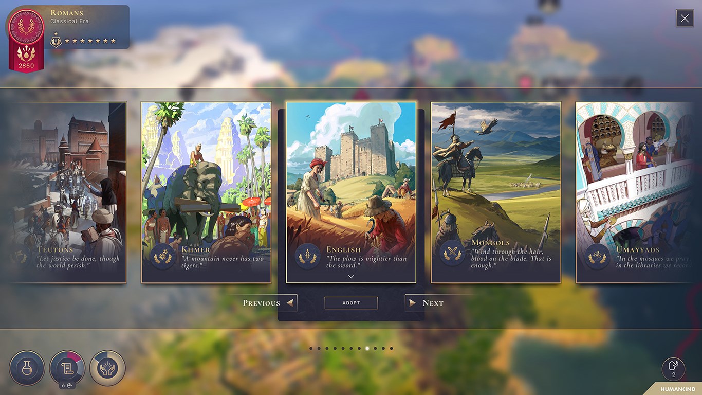 HUMANKIND™ ist ein historisches Strategiespiel, in dem du die Geschichte der Menschheit neu schreibst. Kombiniere Kulturen und erschaffe eine Zivilisation, die so einzigartig ist wie du.