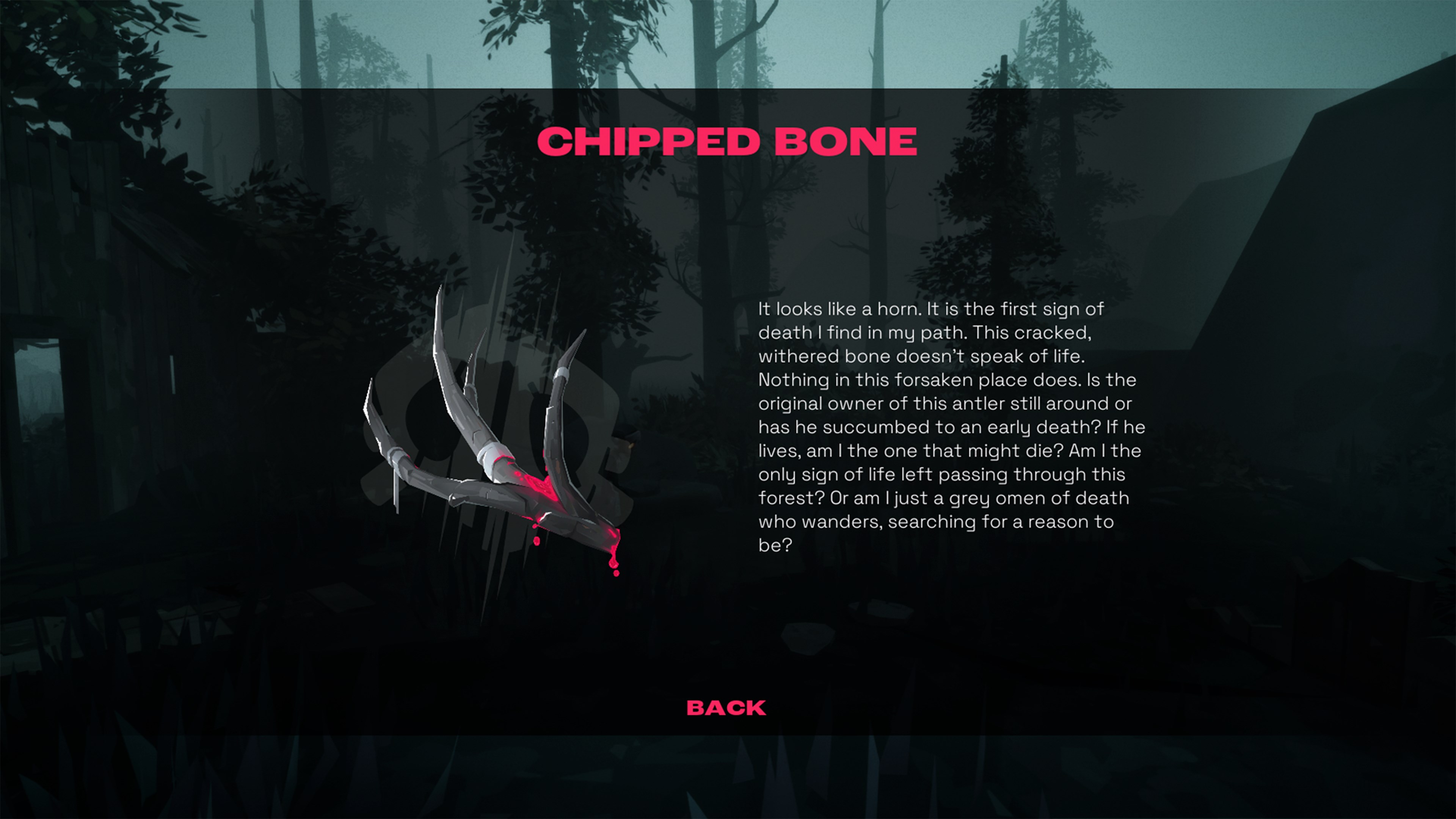 Du wachst in einem dunklen, geheimnisvollen Wald auf, ohne Erinnerung daran, wer du bist oder warum du dort bist. Bewege dich durch eine Welt voller verlassener Strukturen und Rätsel, vielleicht von anderen zurückgelassen. Überlebende? Entdecker? Entdecke seltsame magentafarbene Flüssigkeiten, die Geheimnisse der Vergangenheit enthüllen… und vielleicht auch von dir selbst. Aber sei vorsichtig: Möglicherweise bist du nicht allein an diesem trostlosen Ort.