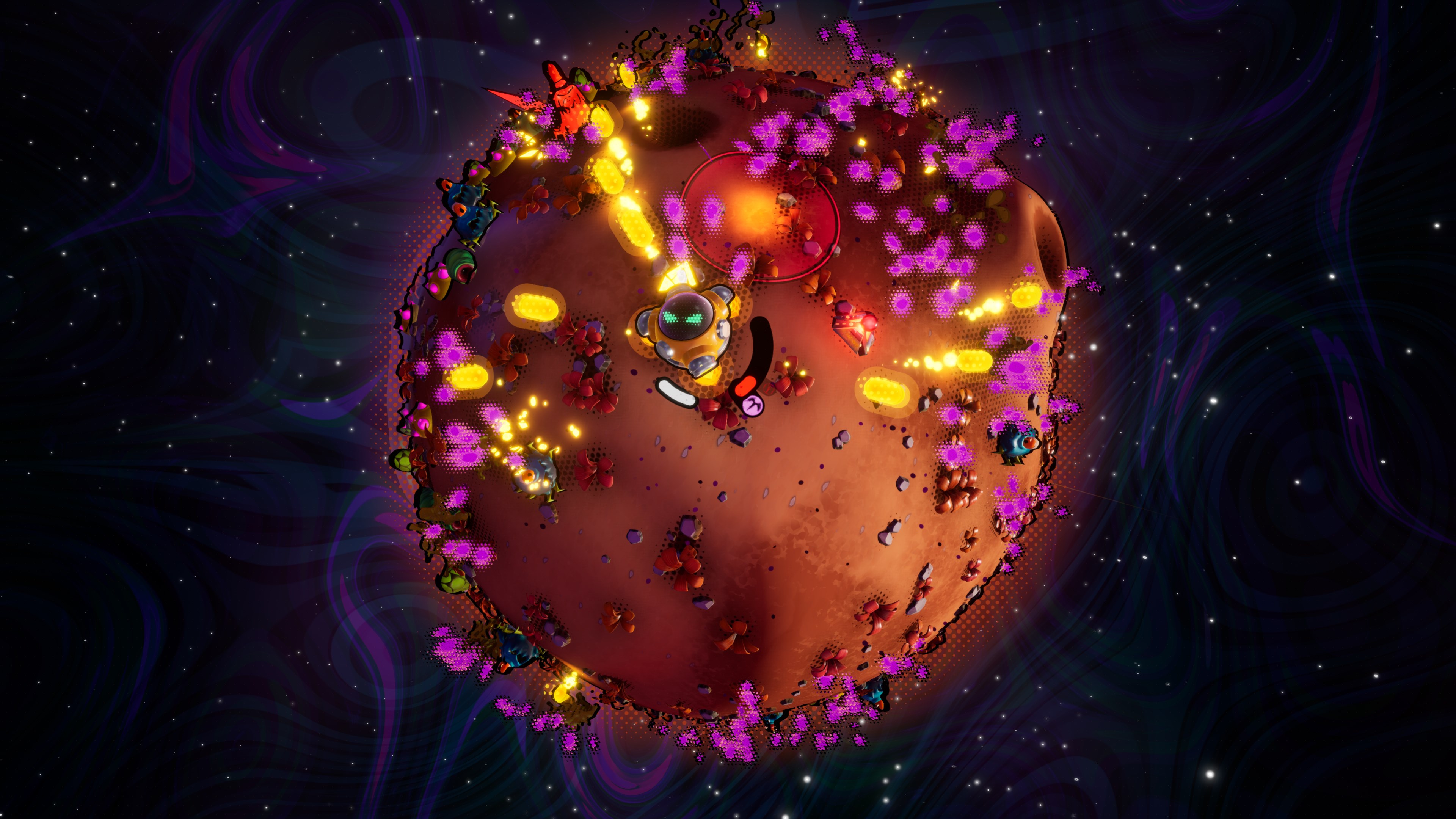 Während du auf der Planetenoberfläche überlebst, hast du die Möglichkeit, Upgrades für dein Schiff freizuschalten. Diese reichen von Statusverbesserungen wie erhöhter Bewegungsgeschwindigkeit bis hin zu sekundären Feuermodi wie Raketenwerfern, Minen oder Laserstößen. Du kannst auch zufällige Upgrades freischalten, aber Vorsicht: Nicht alle Upgrades sind von Vorteil.