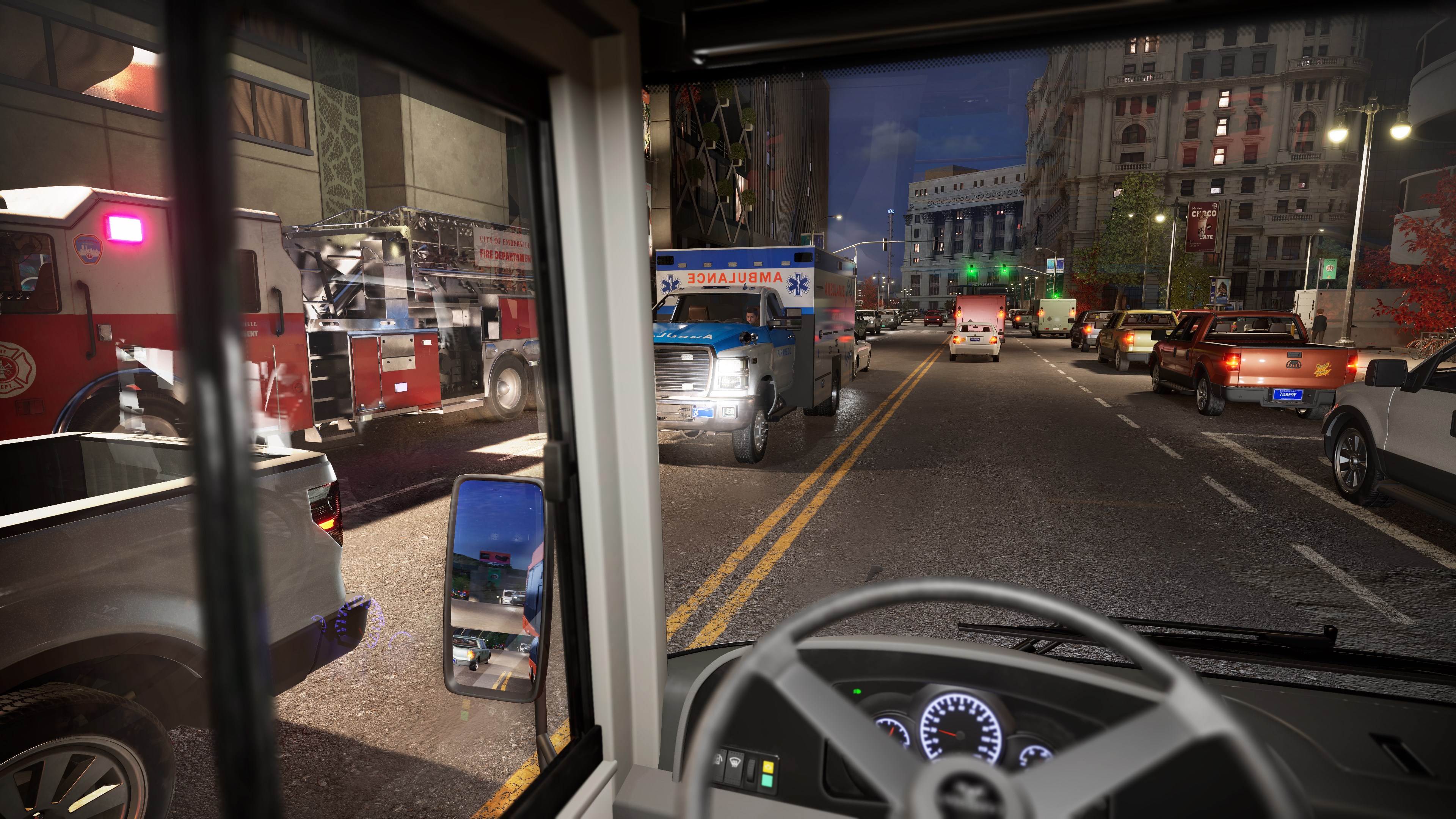Erkunde eine vollständig simulierte und dicht besiedelte fiktive Stadt mit Verkehrssystemen, einem dynamischen Tag-und-Nacht-Zyklus und verschiedenen Wetterlagen. Von geschäftigen Kreuzungen bis hin zu ruhigen Nachbarschaften – alle Gebiete haben ihren eigenen Rhythmus und deine Route hilft bei der Gestaltung ihrer Zukunft.
