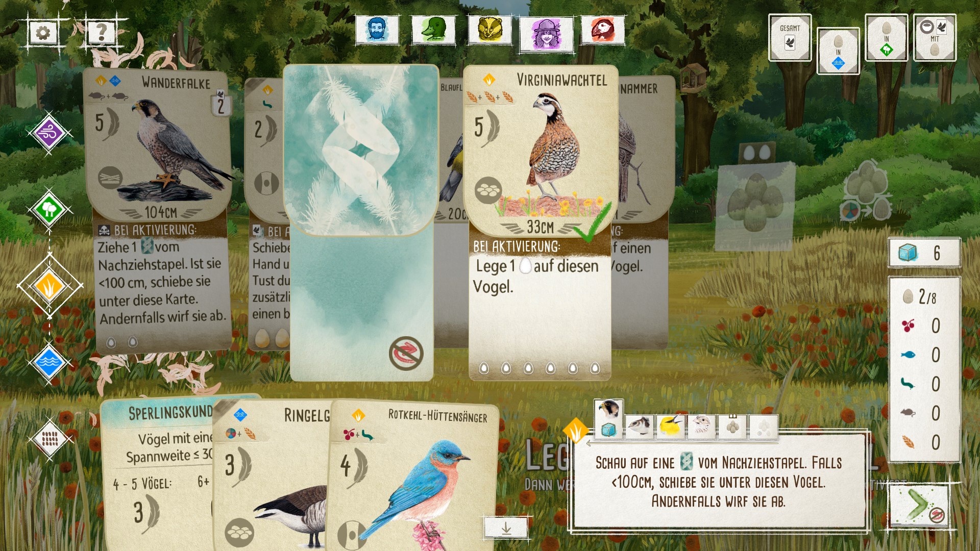 Ihr seid Vogelliebhaber – Forscher, Vogelbeobachter, Ornithologen und Sammler – und versucht, eine Vielzahl an unterschiedlichen Arten in eure Naturschutzgebiete zu locken. Jede Vogelart bildet starke Kombinationsketten in einem der Lebensräume. Jeder der drei Lebensräume steht für einen wesentlichen Aspekt des Wachstums eurer Gebiete.