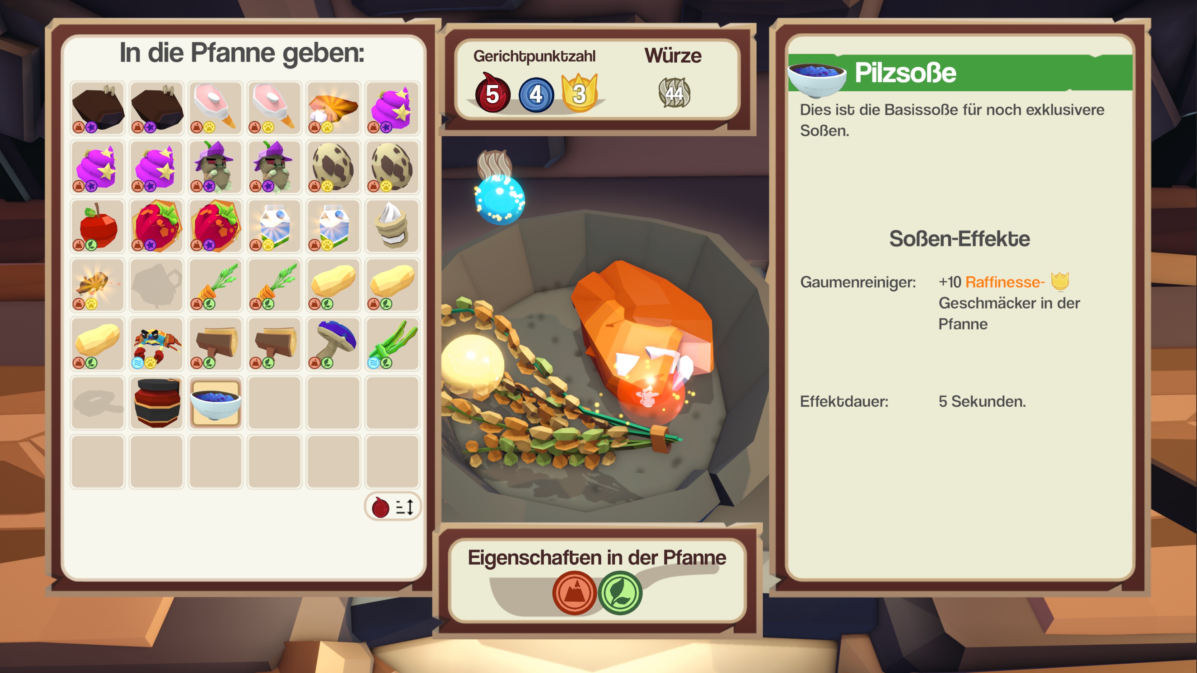Nimm es in hitzigen kulinarischen Kämpfen mit Kochrivalen auf und werde zum Kochkönig von Ambrosia! Die Gerichte werden basierend auf verschiedenen Kriterien bewertet und die Jurymitglieder haben nie den gleichen Geschmack. Wachse als Koch über dich hinaus, indem du Soßen verwendest, um deinen Gerichten das gewisse Etwas zu verleihen und die Jury für dich zu gewinnen.
