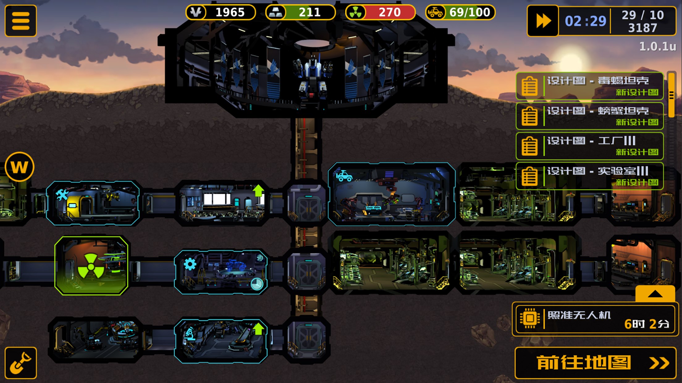Sammeln Sie Baupläne, bauen Sie Fabriken, Forschungszentren, Werkstätten, Labore und andere Einrichtungen, um sich auf die bevorstehenden Schlachten vorzubereiten. Stellen Sie Ihre Armee zusammen, rüsten Sie sie auf und passen Sie sie an, um dann auf dem Schlachtfeld gegen den unerbittlichen Feind anzutreten.
