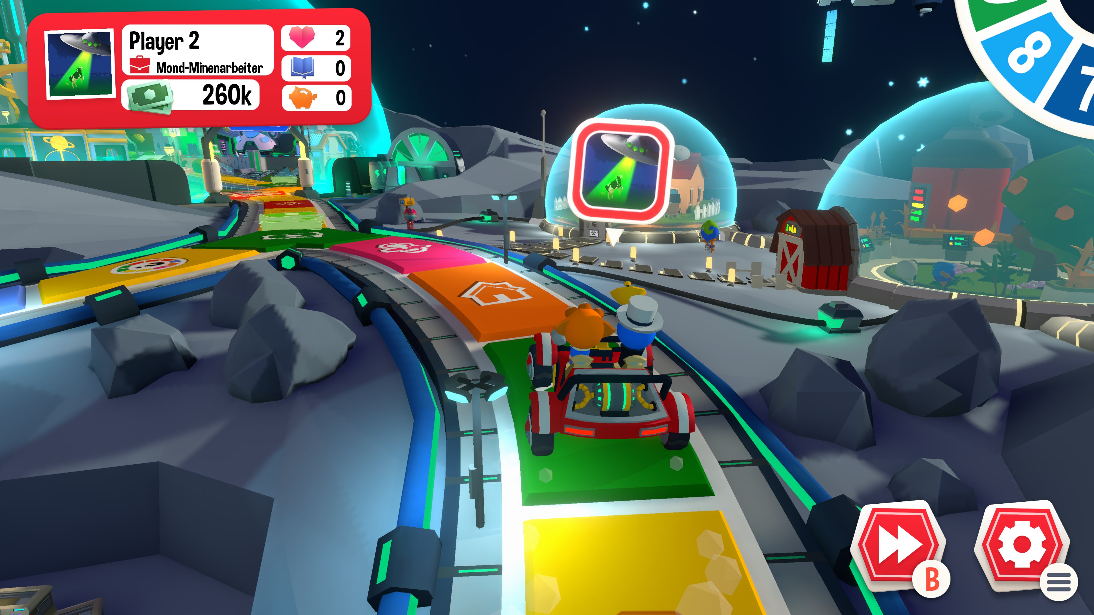 MONDZEITALTER – Starte in die Umlaufbahn und baue ein neues Leben an der entferntesten Grenze auf! Enthält das Mondzeitalter-Brett, drei freigeschaltete Outfits, drei freigeschaltete Avatare, zwei freigeschaltete Fahrzeuge und acht zusätzliche Freischaltungen (drei weitere Outfits, drei weitere Avatare und zwei weitere Fahrzeuge).
