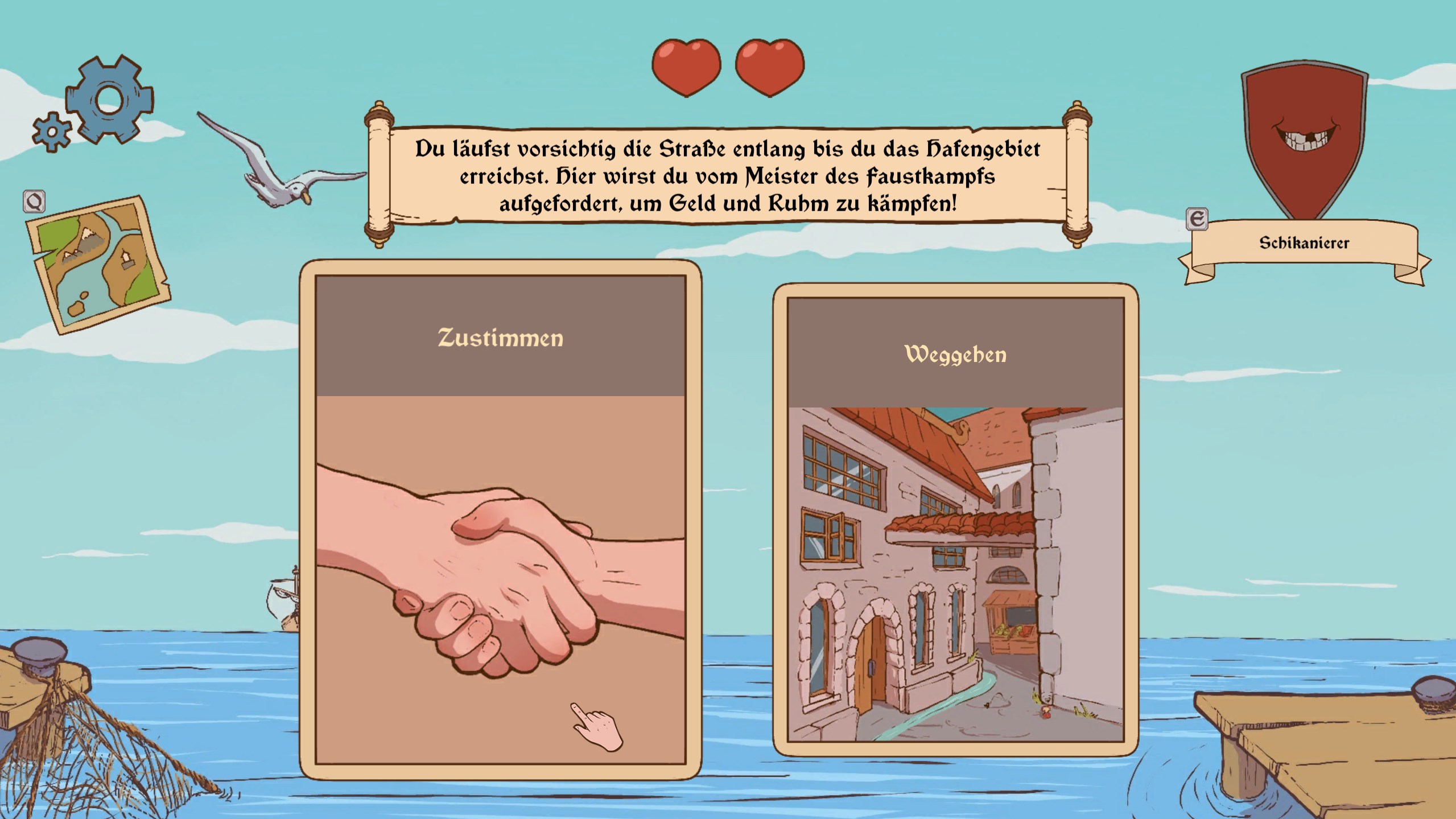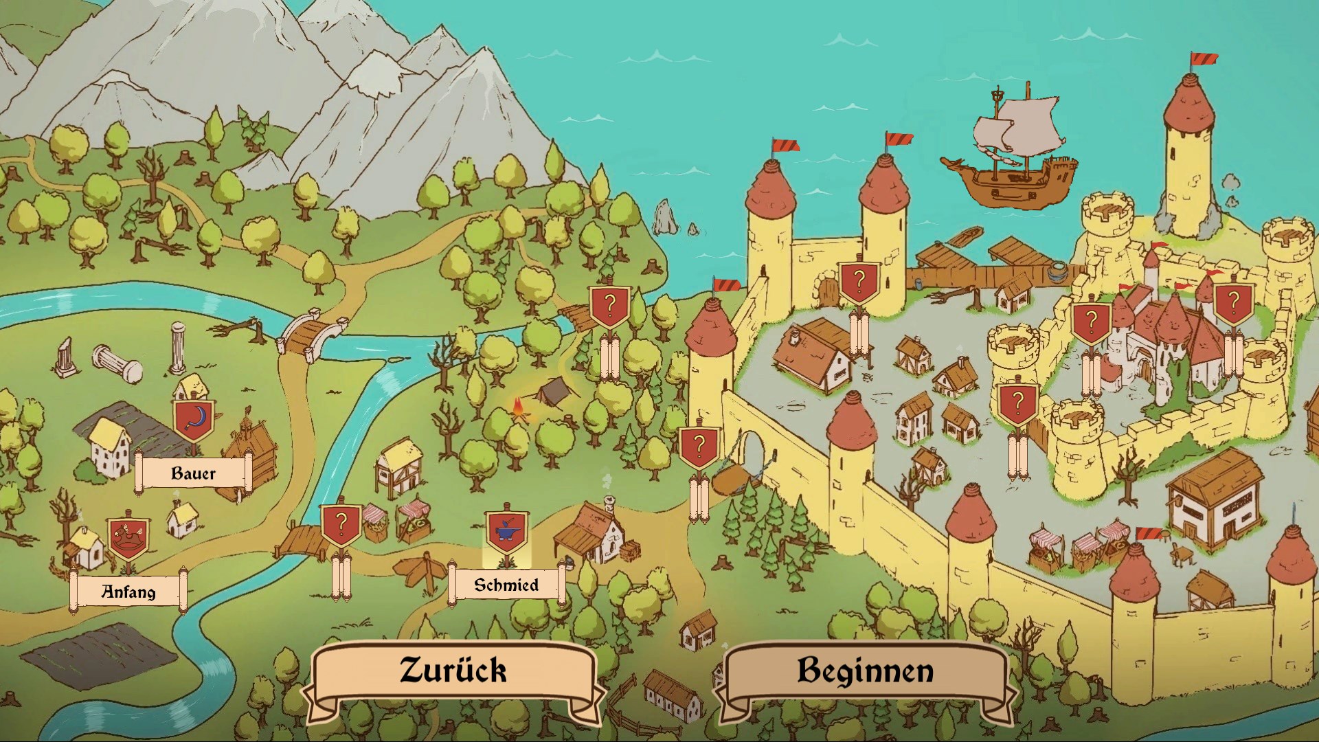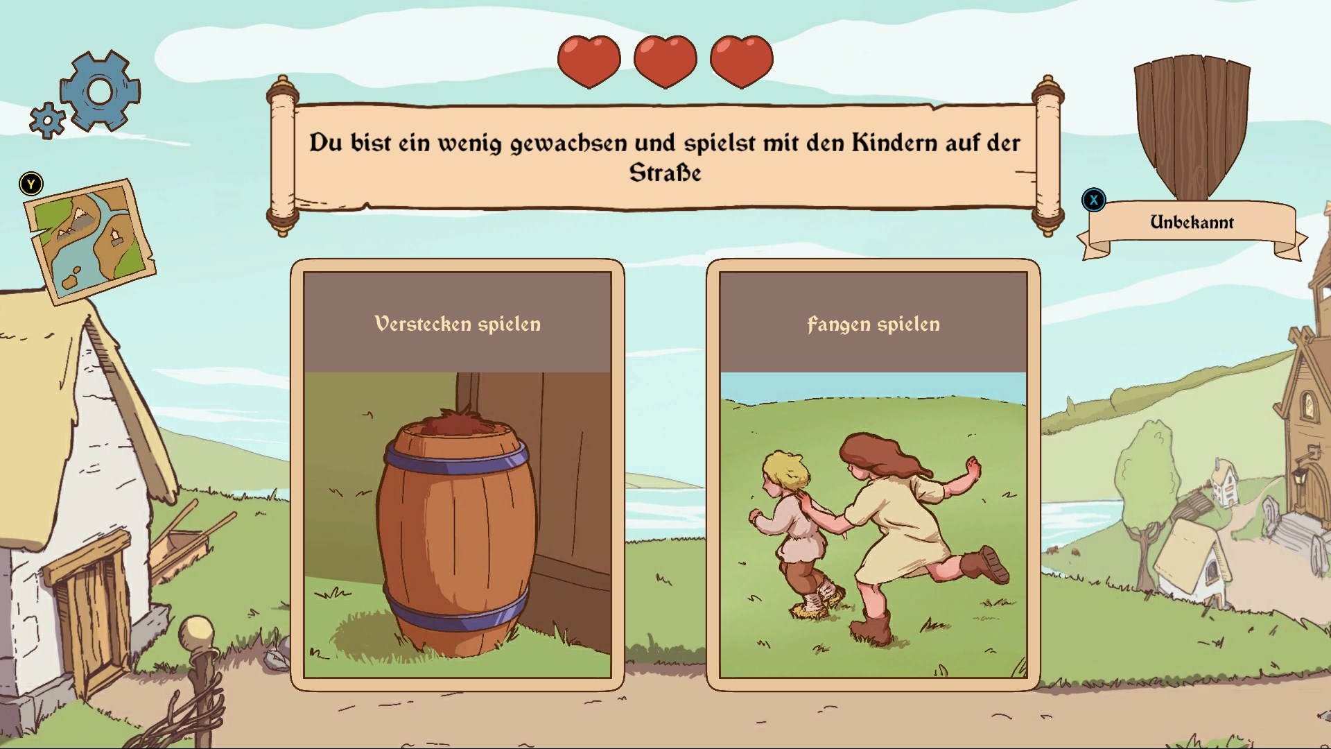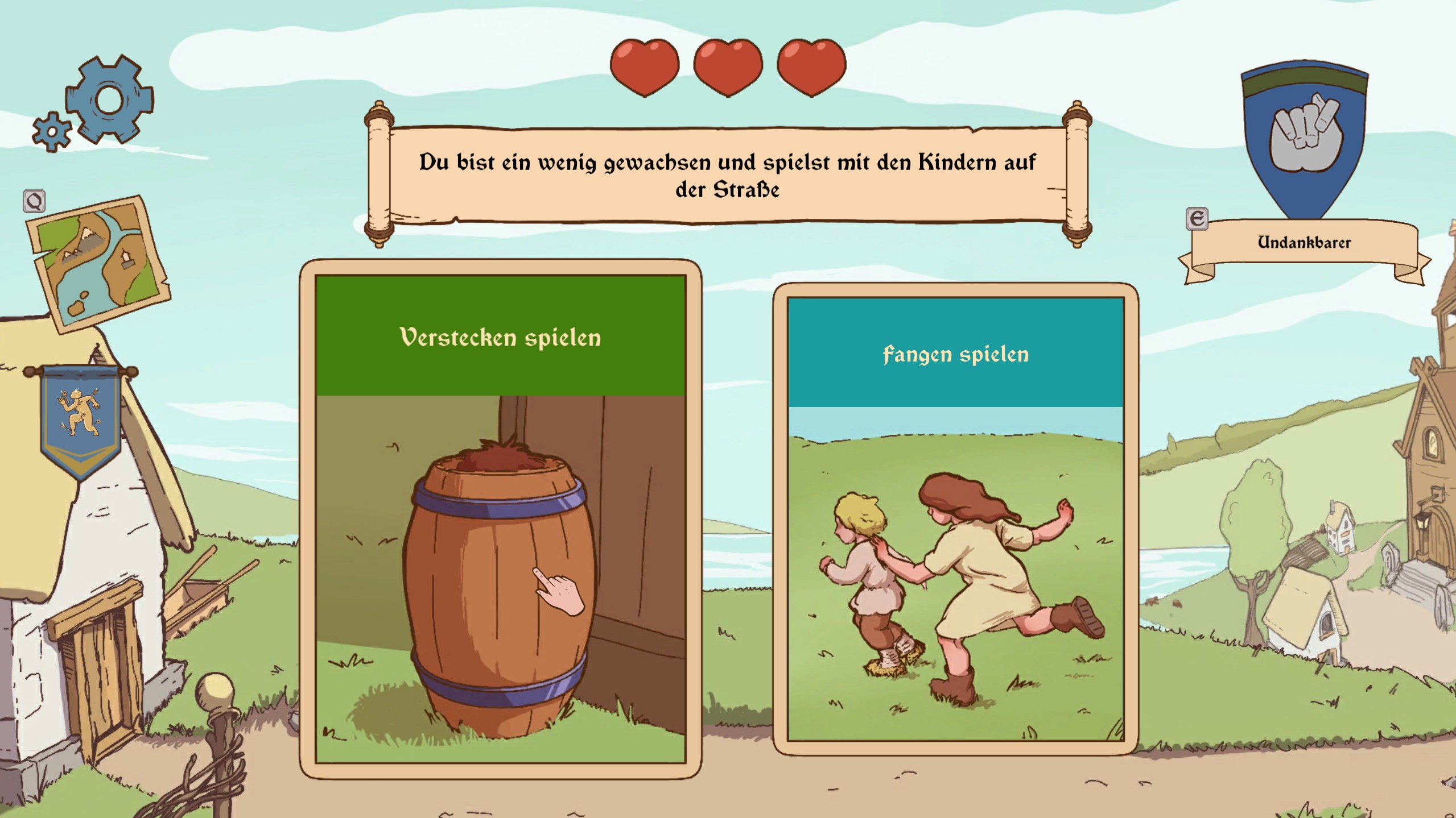 Du befindest dich in einem fantastischen, mittelalterlichen Königreich. Und wie du weißt, war das Überleben im Mittalter kein Kinderspiel. Deshalb musst du kluge (manchmal auch eher weniger kluge) Entscheidungen treffen, die dein Schicksal bestimmen!