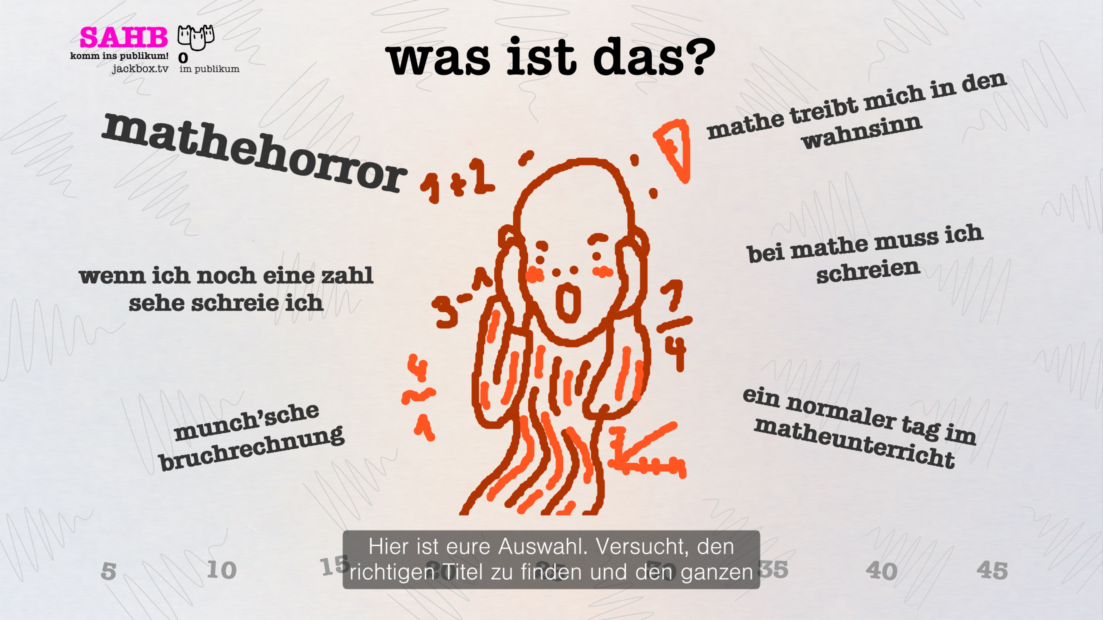 Hinweis: Dieses Spiel ist für mehrere Spieler in einem Raum gedacht, kann aber auch über Streaming mit Online-Spielern gespielt werden.