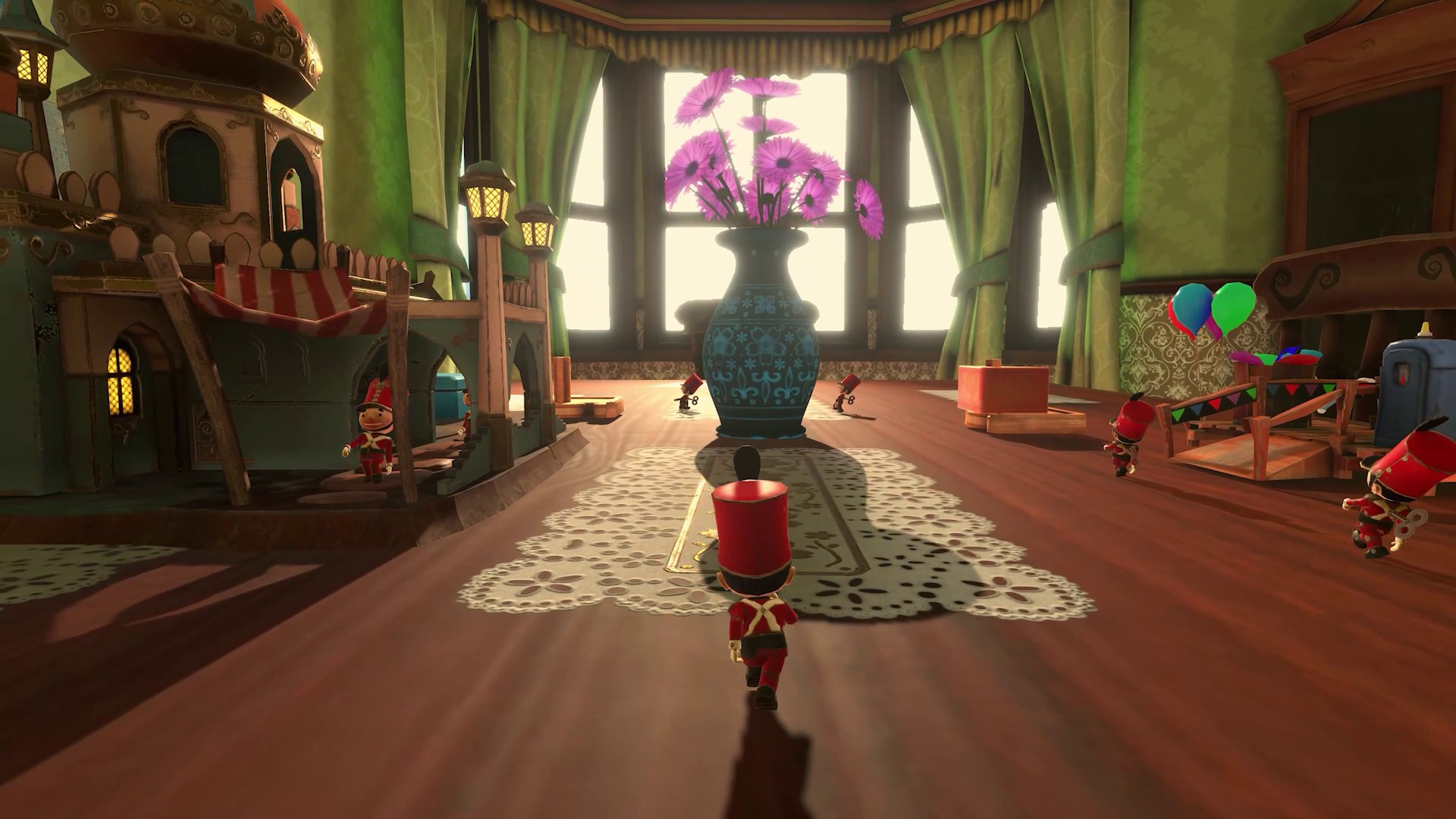 NUTZE DEINE FANTASIE: Schalte Kräfte frei, um Objekte in der Welt zu kontrollieren; von Holzklötzen über Trommeln bis hin zu Spielzeugeisenbahnen. Verbinde auf interessante Weise Objekte, während du für deine furchtlosen Zinnsoldaten Wege zum Ausgang baust und langsam die Geheimnisse ihrer Vergangenheit aufdeckst.